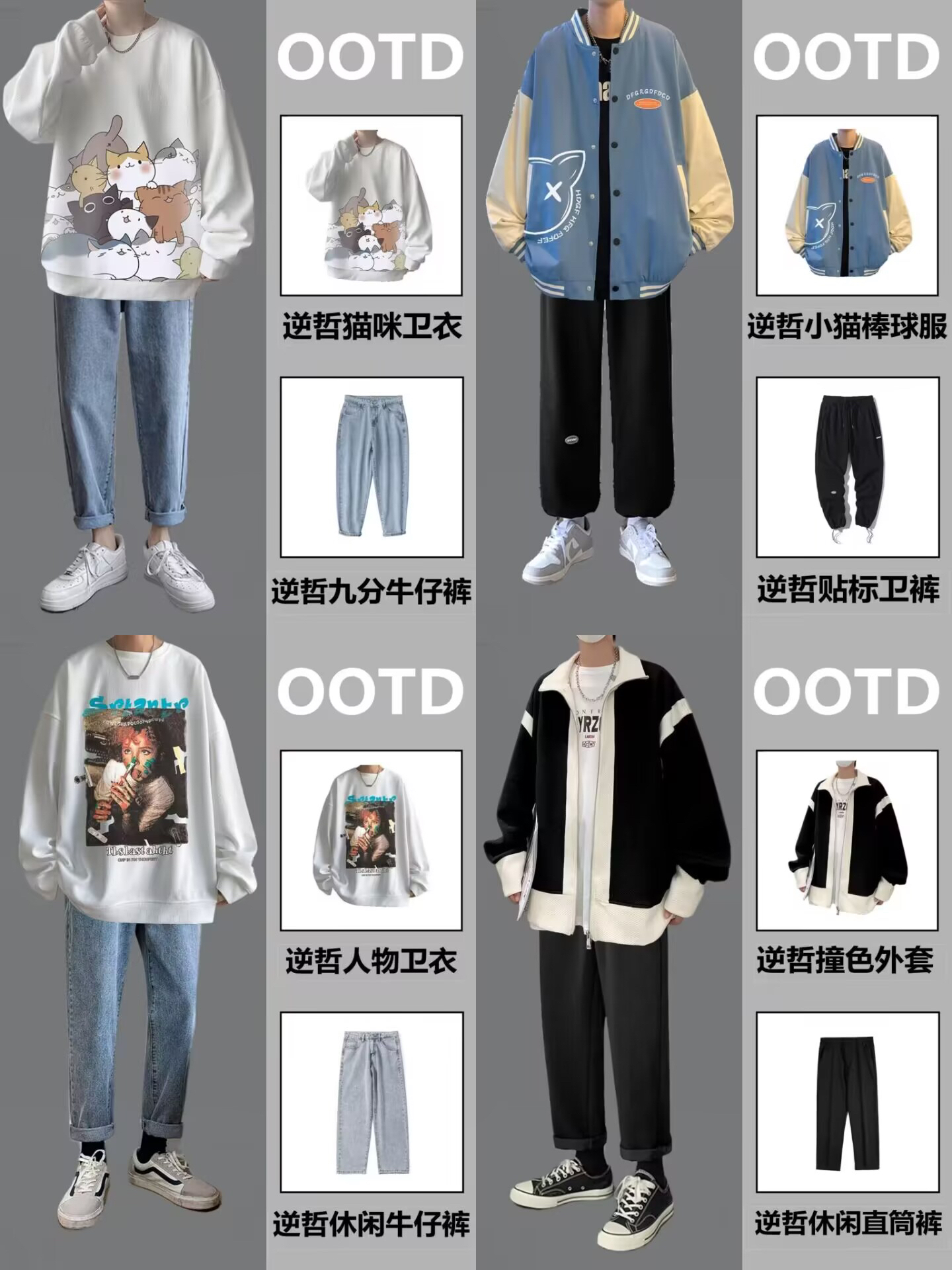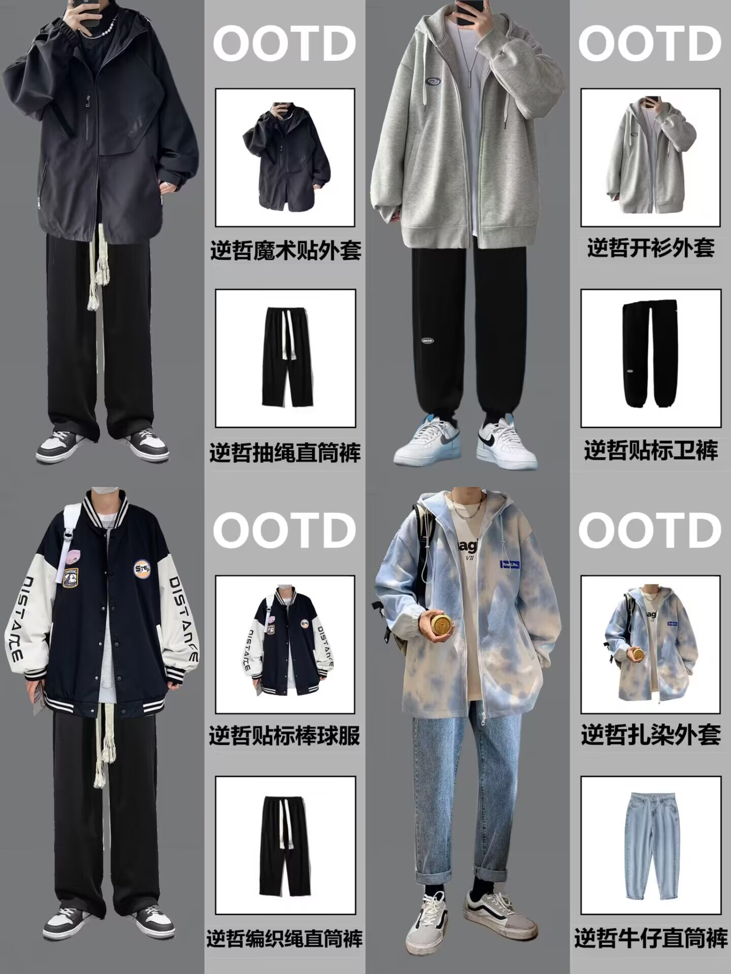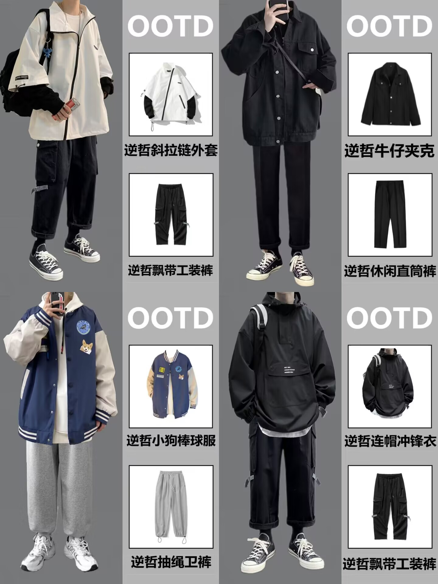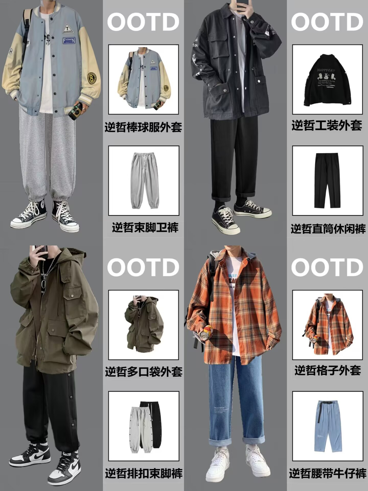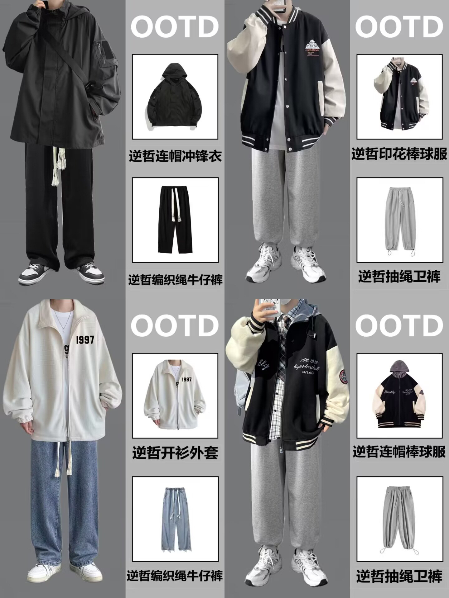 hello 不知不觉就开始🎉人秋了 是时候安排一套帅气的穿搭 卫衣外套✨已经开始陆陆续续上新 怎么搭配才好看呢 想要穿的保暖又不显得臃肿 这期给大家整理了3️⃣2️⃣套秋季平价穿搭 对于偏胖男生也非常的友好 显瘦又效果~ 赶紧安排起来吧 👔👖:逆哲studios