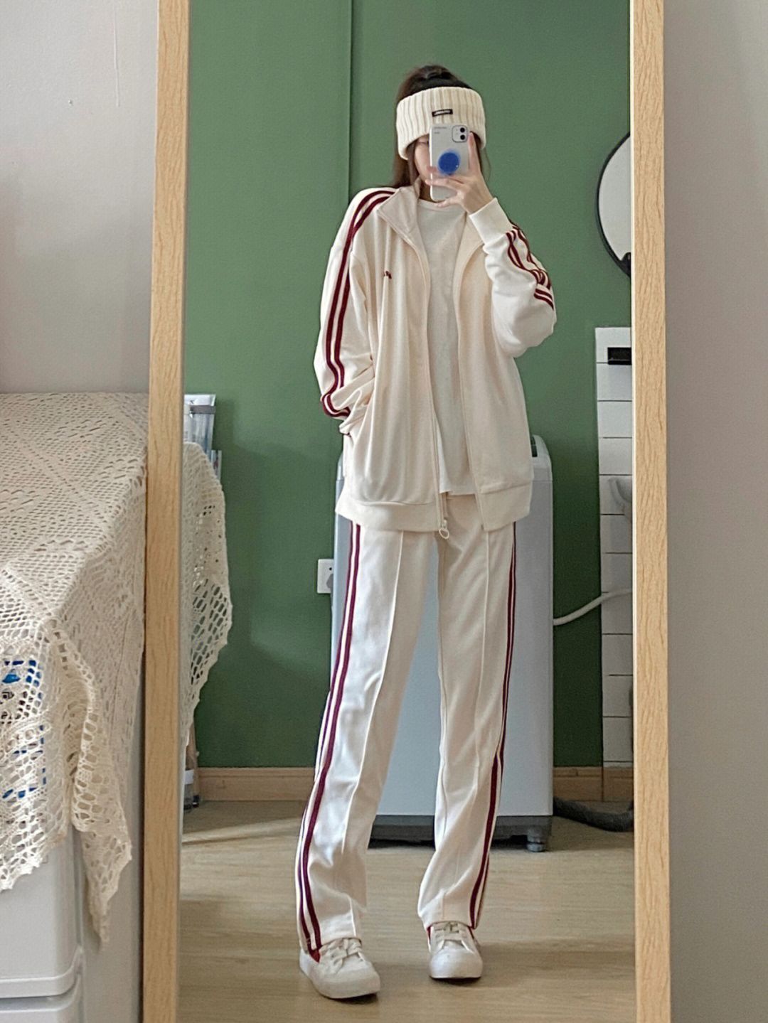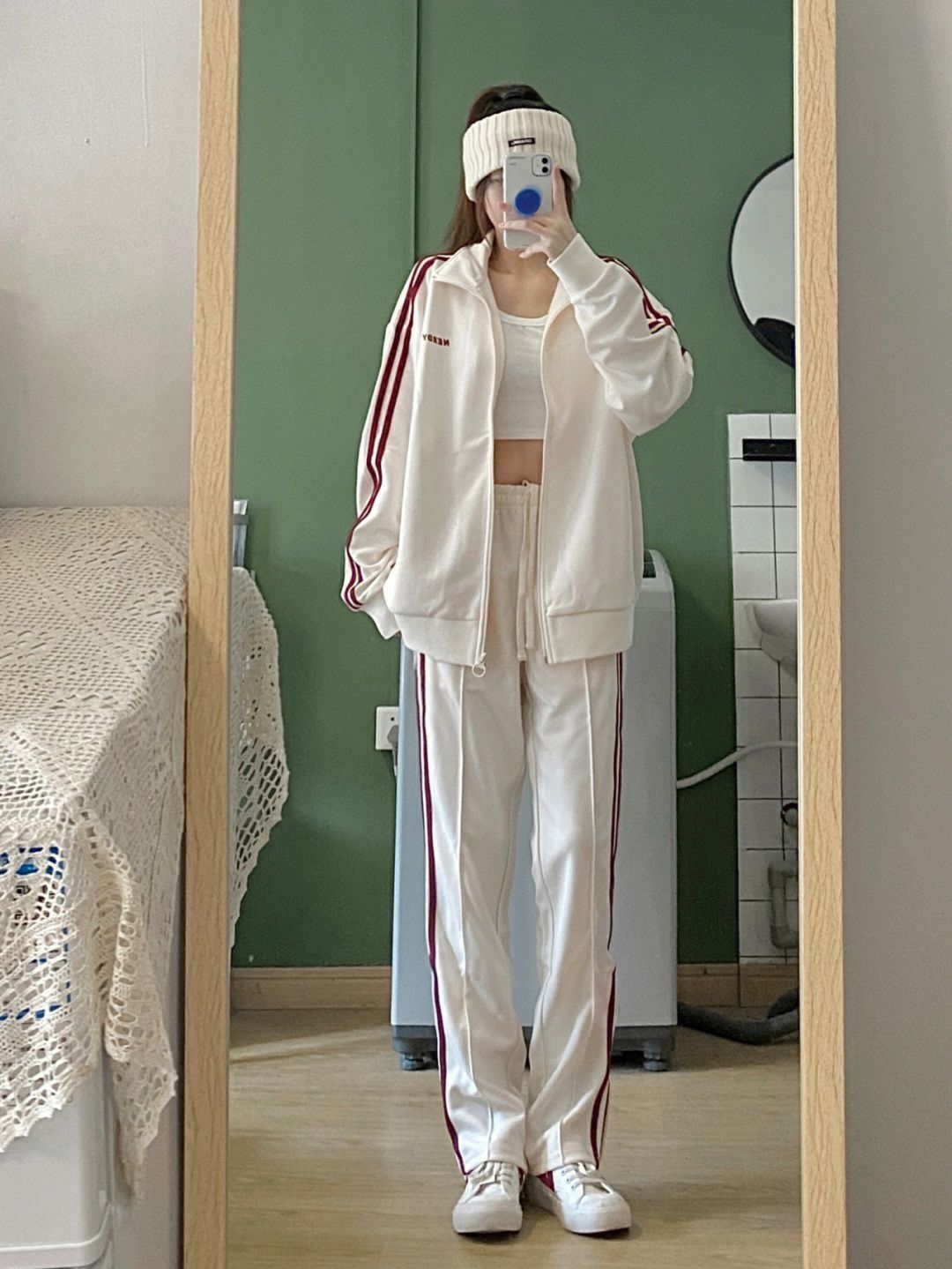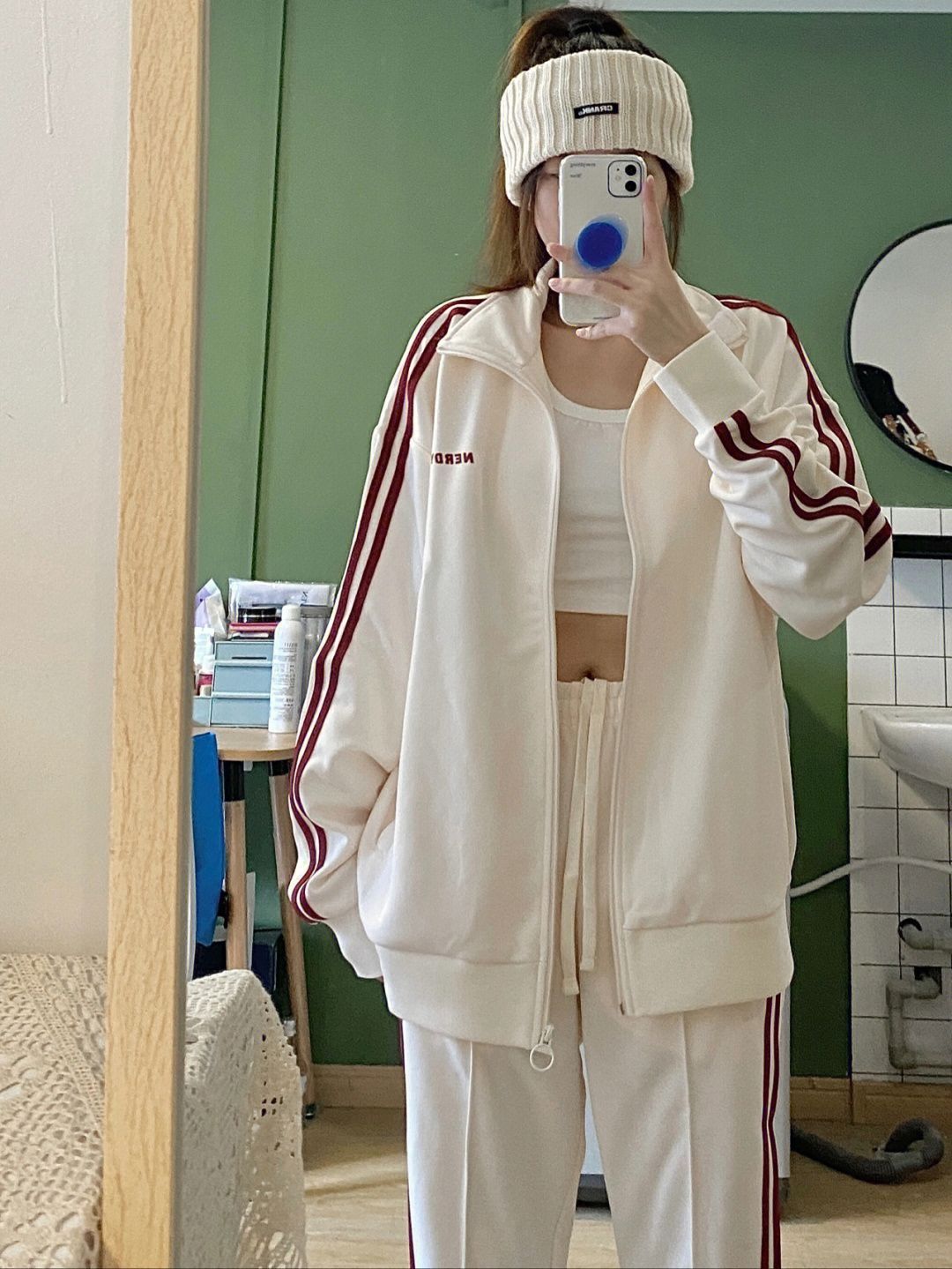 🍀今天就是一个追星女分享🥺,看太多爱豆穿过nerdy这个运动服了,我终于也拥有啦!穿上真的超级韩! 🍀我本来就很i韩国潮牌,nerdy也经常关注 ,之前看🇰🇷韩国爱豆偶运会全部是nerdy,很多爱豆私下练习或者私服也会穿 🍀很喜欢这个米白和复古红的配色,很有感觉很复古,又好看又方便舒服,还有分量感 🍀平时当居家服穿也ok,这两天一直在穿,怪不得都爱它!🥰