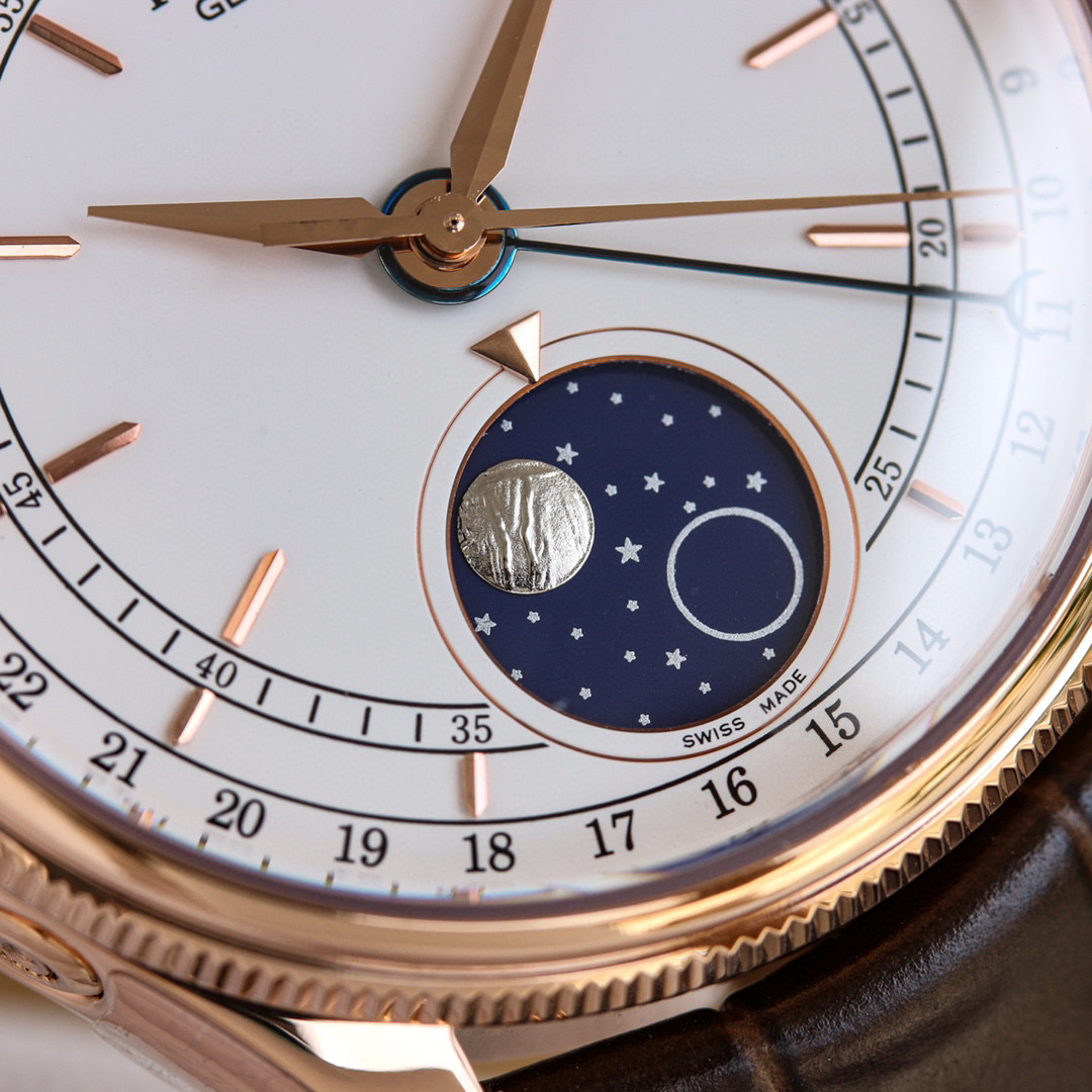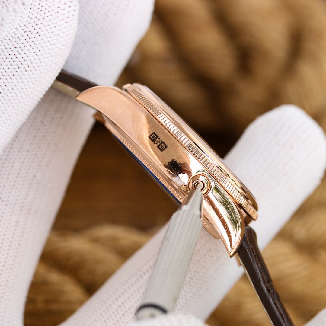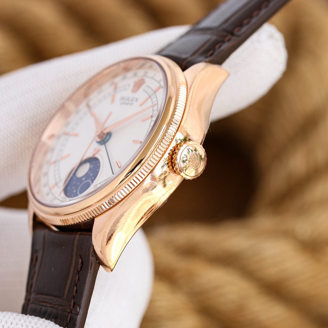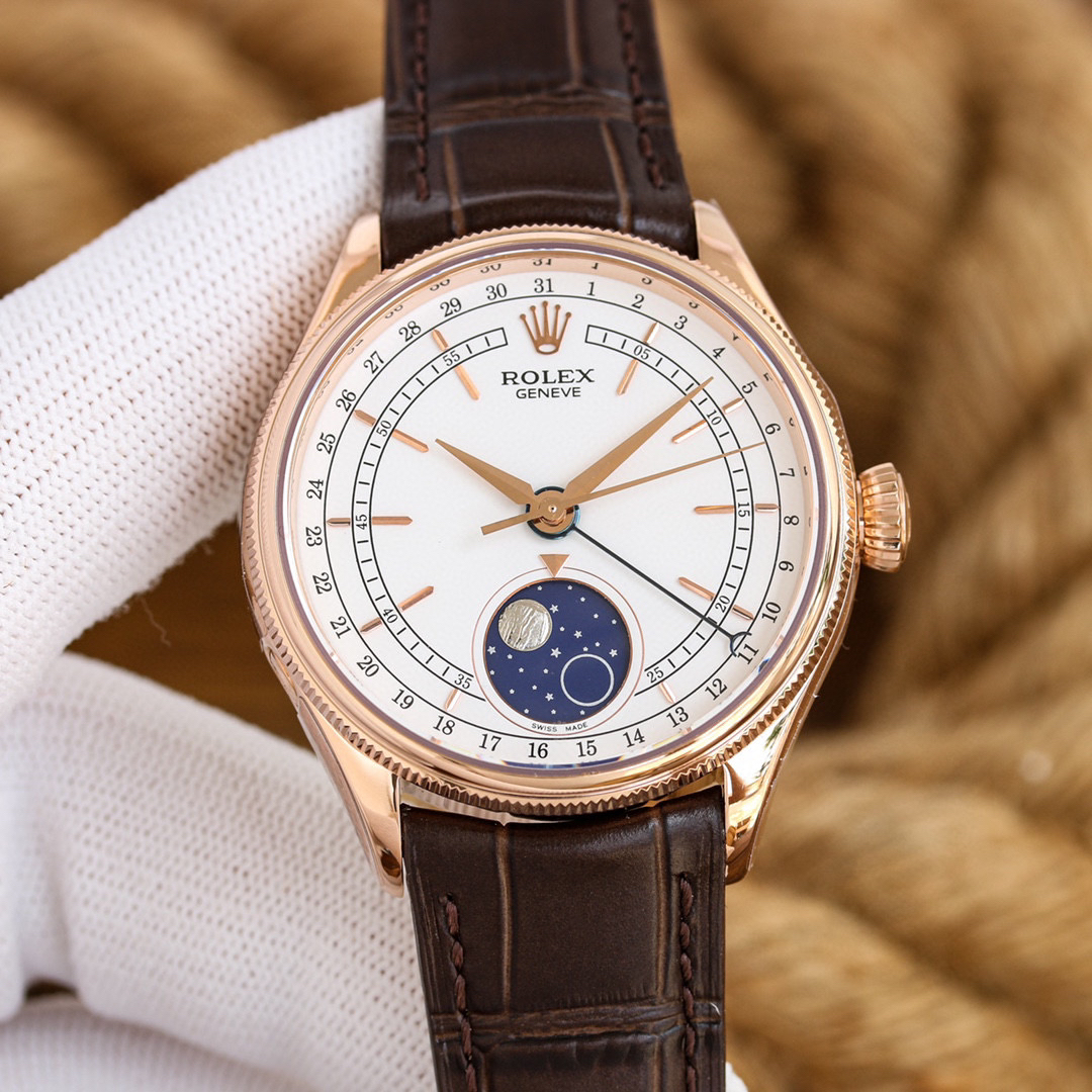 m50535-0002劳力士切利尼系列50535 39mm 多功能真月相【尺寸】:39mm【机芯】:『指针日历/月相』【表壳】:316L精钢 顶级电镀厚金+抗氧化保护,着重强调此电镀工艺比一般电镀更加耐磨,抗氧化,不用担心几个月就变色的情况。喇叭形旋入式上链表冠 上有劳力士标志【表盘】:白色高档漆面表盘【指针】:顶级批花工艺+蓝钢月牙指针【月相陨石材质,其天然不规则纹路清晰可见,呈现一致的效果,配...