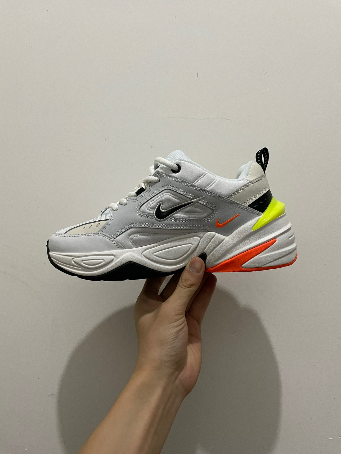 👟球鞋名称:Nike M2K Tekno 白橙黄 男女同款#送礼推荐 🔍设计亮点:Nike M2KTekno基于经典复古鞋型Air Monarch进行改造升级,通过对鞋面和中底线条的调整为其增添现代感,也依旧日保留了大量复古装饰元素,并将Swoosh打造成小巧精致版本,更显品质升级。 📃总结评价:⭐⭐⭐⭐
