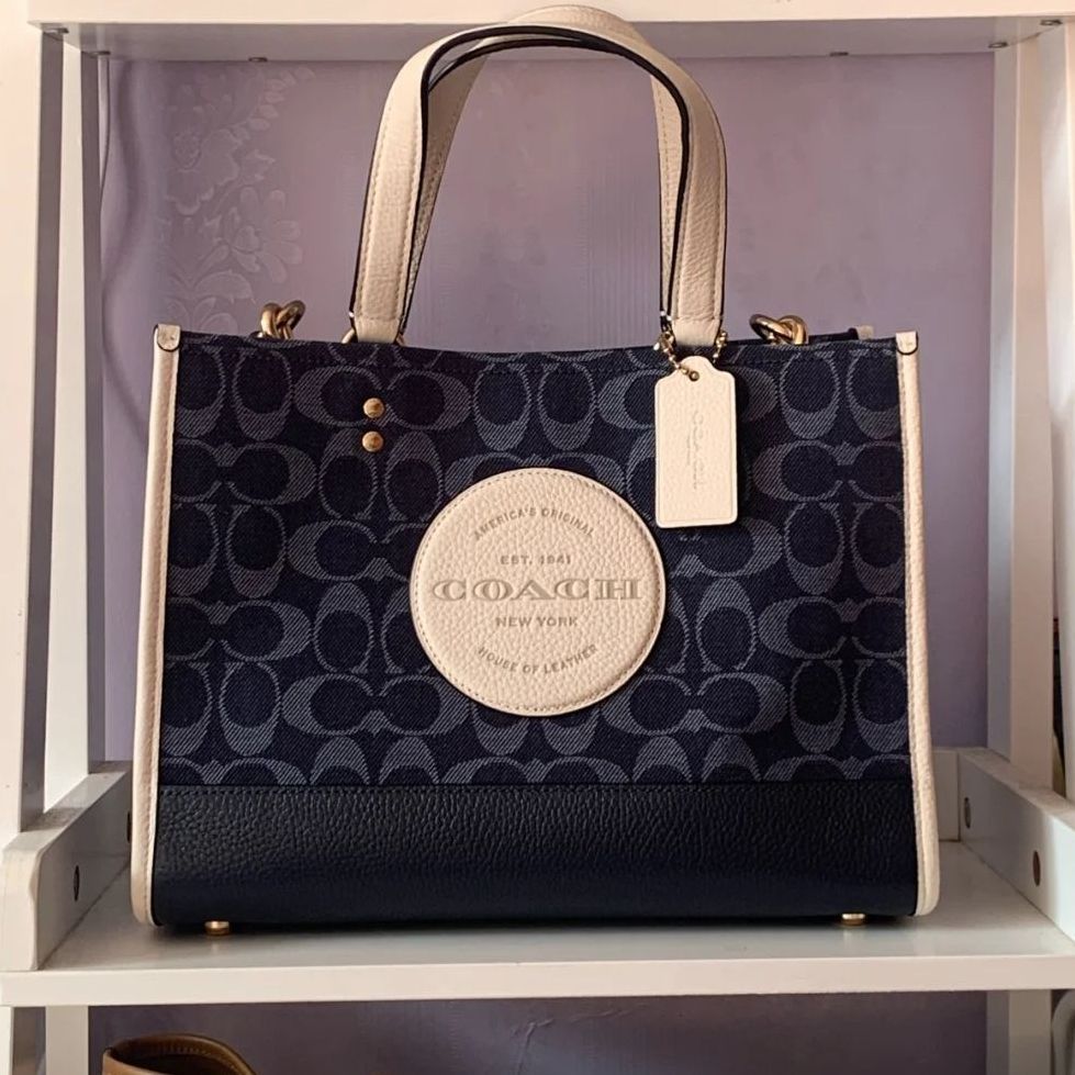 👜Coach Dempsey香布蕾手提托特包斜挎包 这款包包实用性强,包包容量大,皮质较软两根包带(可手拎,可斜挎)超级有质感,颜色经典不显老气通勤百搭🉑性价比高‼️‼️ 这次使用的 Denim单宁材质,是可循环环保的面料哦,并且使用经典老花来诠释,通过染色工艺,呈现深浅不一的色度混合,材质抗刮耐磨🉑🉑 包包大小适中,可以竖着放下14寸电脑,比较适合平时出门带东西比较多的女生,短途出差或者旅行带...