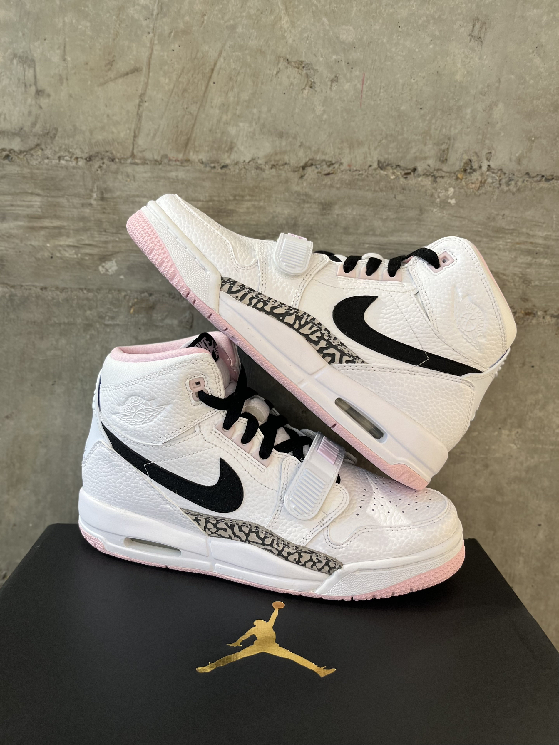 🌸AJ312樱花粉又又又补货啦!!!人气火热的鞋型,加上青春的粉色系,而且还有折扣价格,很难拒绝这样一双平价好看的AJ小粉鞋!!! 👟Jordan Legacy 312(GS)复古高帮 樱花粉白#送礼推荐 💓采用了柔软的荔枝纹鞋面,外侧黑色Swoosh加入了blingbling的效果,粉色内衬和橡胶鞋底粉粉嫩嫩显得很少女心,简直就是“减龄神器”。 🔋外侧带有经典黑灰色的AJ3爆裂纹细节,魔术贴绑带...