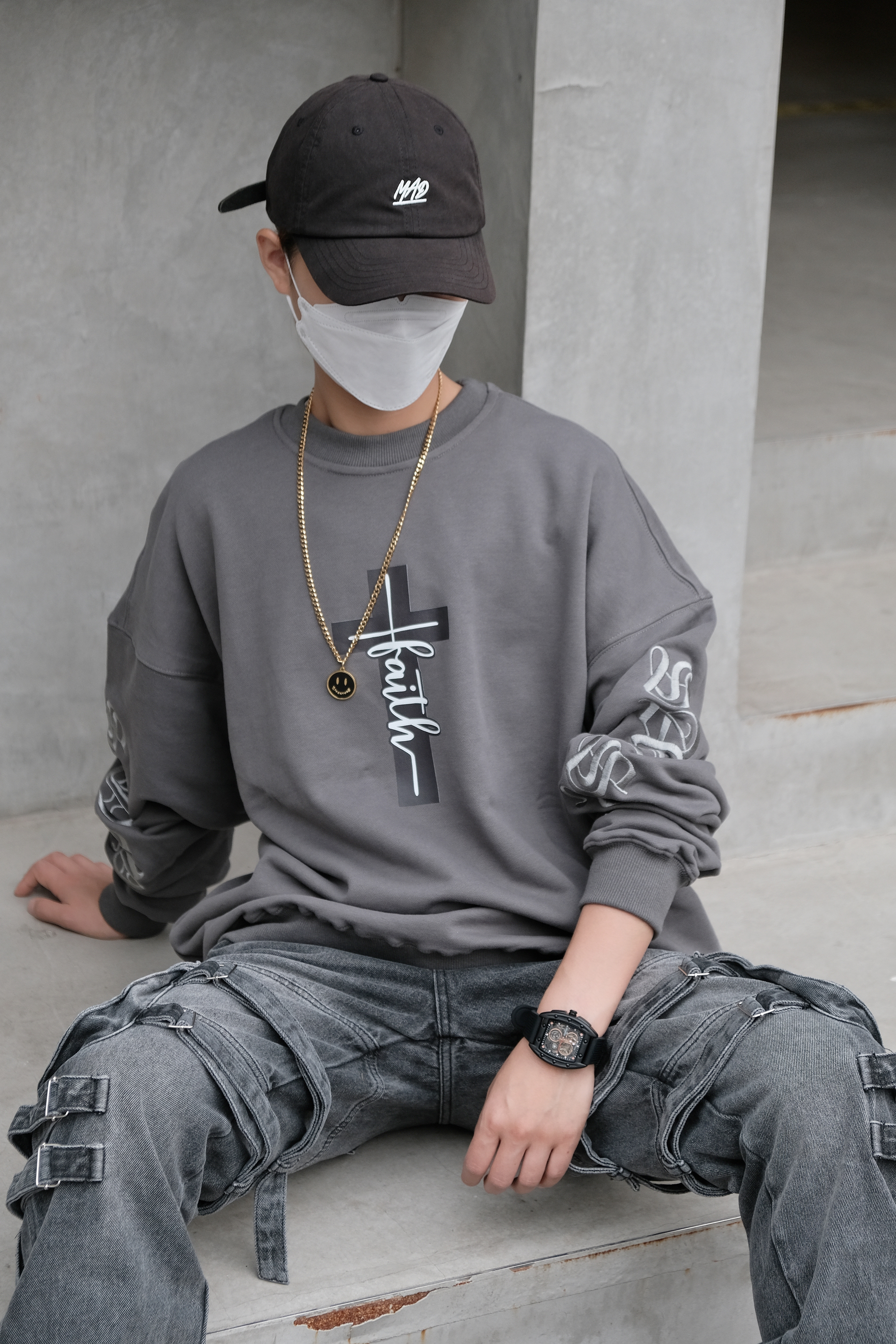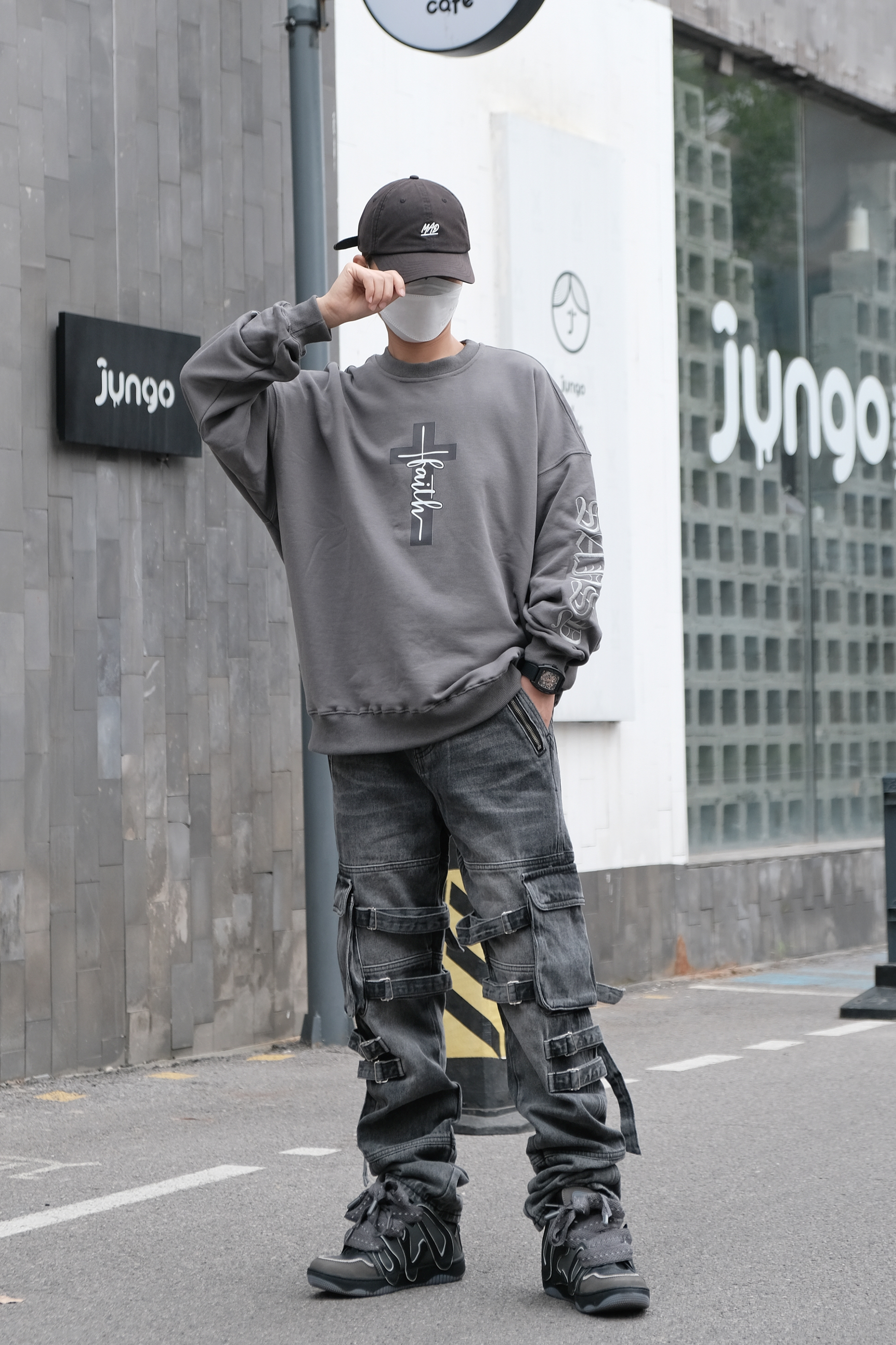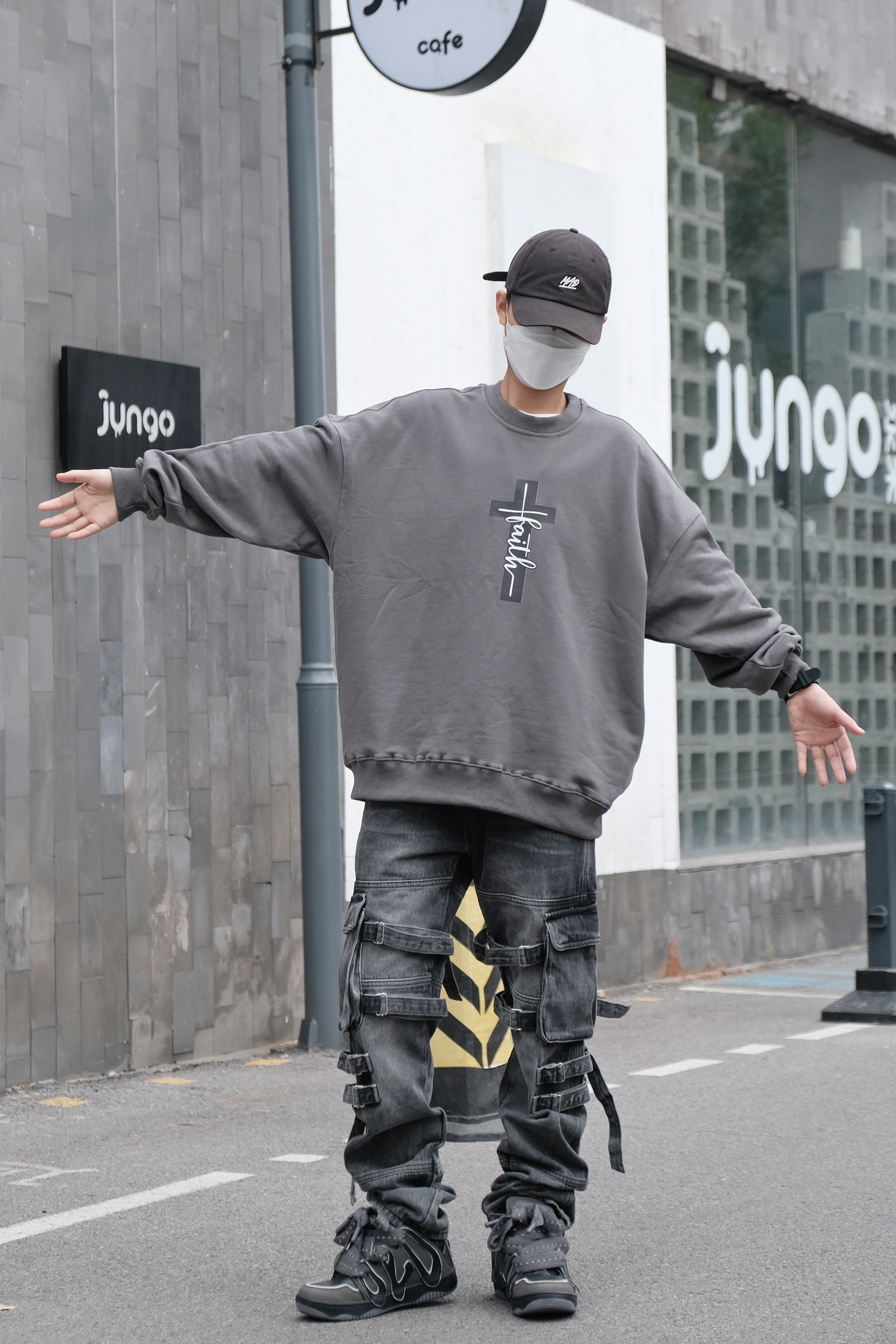 🤔搭配思路 秋季到了,天气逐渐转凉,卫衣是搭配的必备单品,今天这身OOTD就以卫衣为主搭配出街头感的造型。 - 在搭配上以灰色系为主搭配,上身是一件灰色的印花卫衣,圆领的设计加上酷感的印花,十分有造型感,随意搭配一条项链就很稳。 裤装选择了宽松版型的多口袋直筒裤型,多口袋及绑带的设计酷感很足,鞋子同帽子选择了互相呼应的黑色,黑色搭配灰色色系相近很兼容,很有整体感。 最后在细节处理上搭配了全黑...