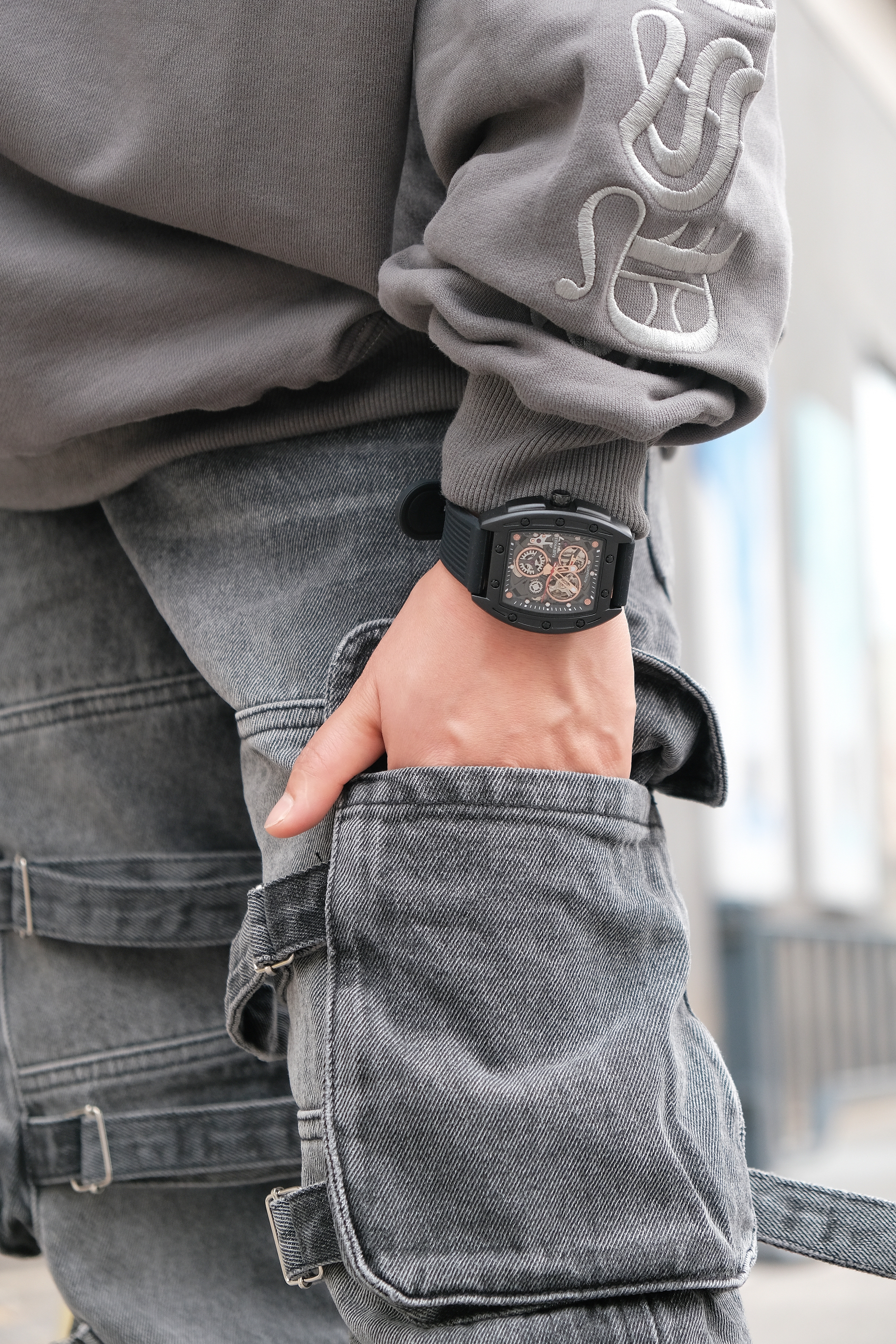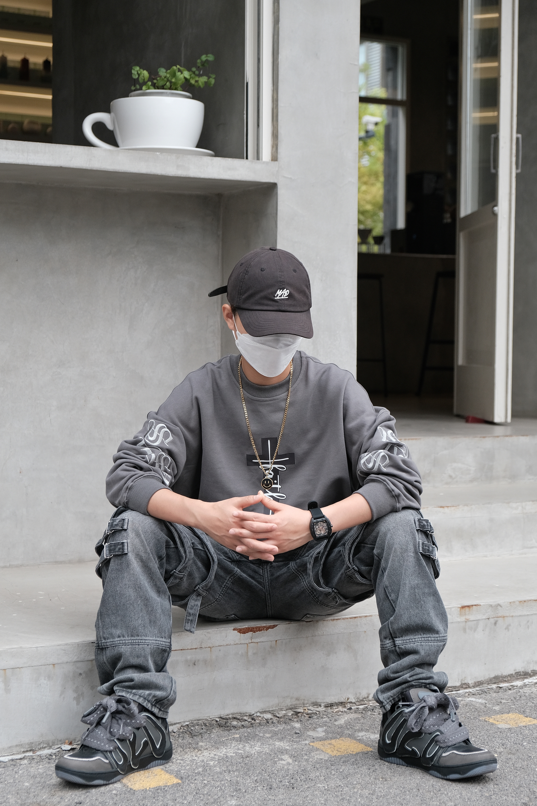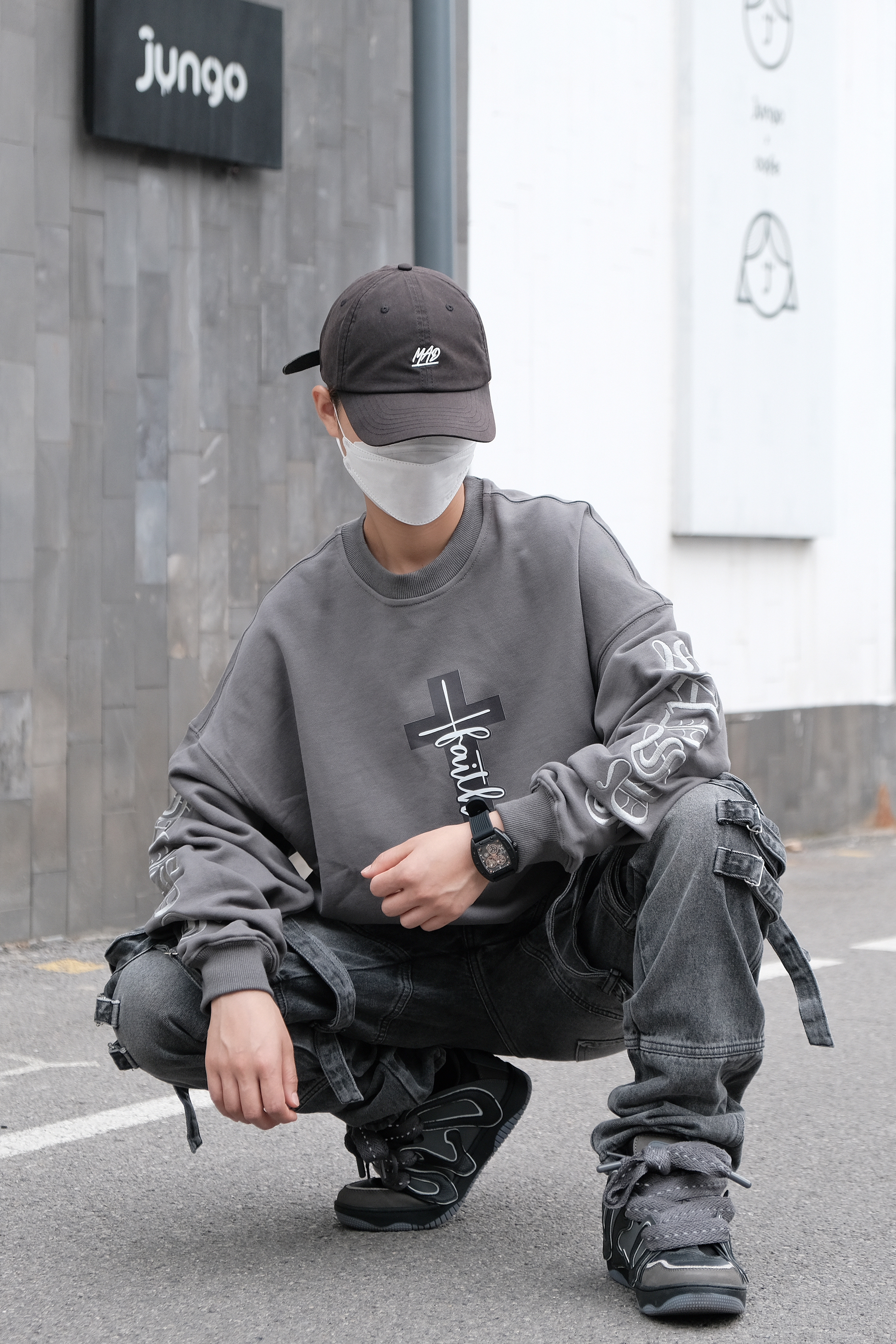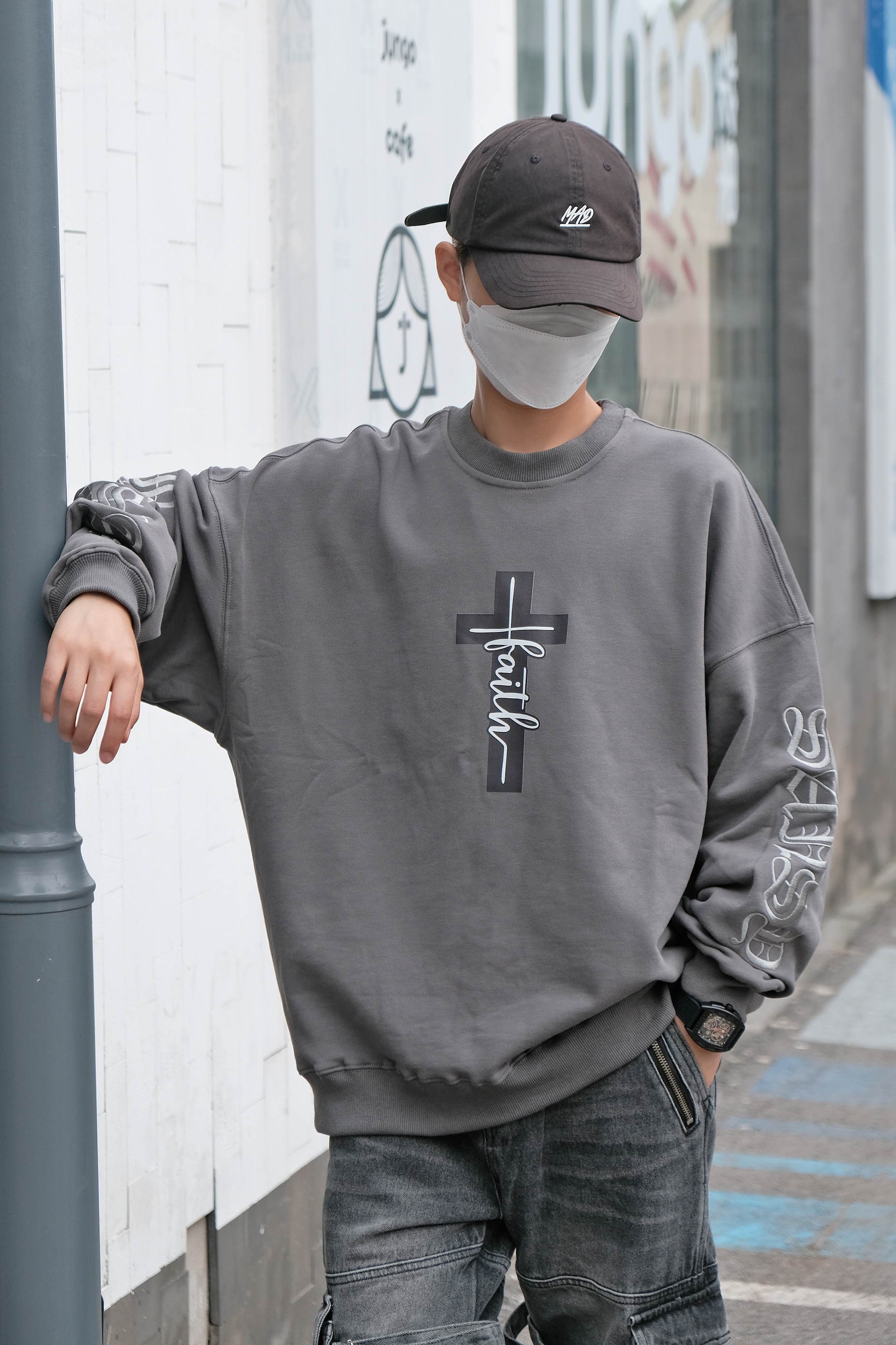 🤔搭配思路 秋季到了,天气逐渐转凉,卫衣是搭配的必备单品,今天这身OOTD就以卫衣为主搭配出街头感的造型。 - 在搭配上以灰色系为主搭配,上身是一件灰色的印花卫衣,圆领的设计加上酷感的印花,十分有造型感,随意搭配一条项链就很稳。 裤装选择了宽松版型的多口袋直筒裤型,多口袋及绑带的设计酷感很足,鞋子同帽子选择了互相呼应的黑色,黑色搭配灰色色系相近很兼容,很有整体感。 最后在细节处理上搭配了全黑...
