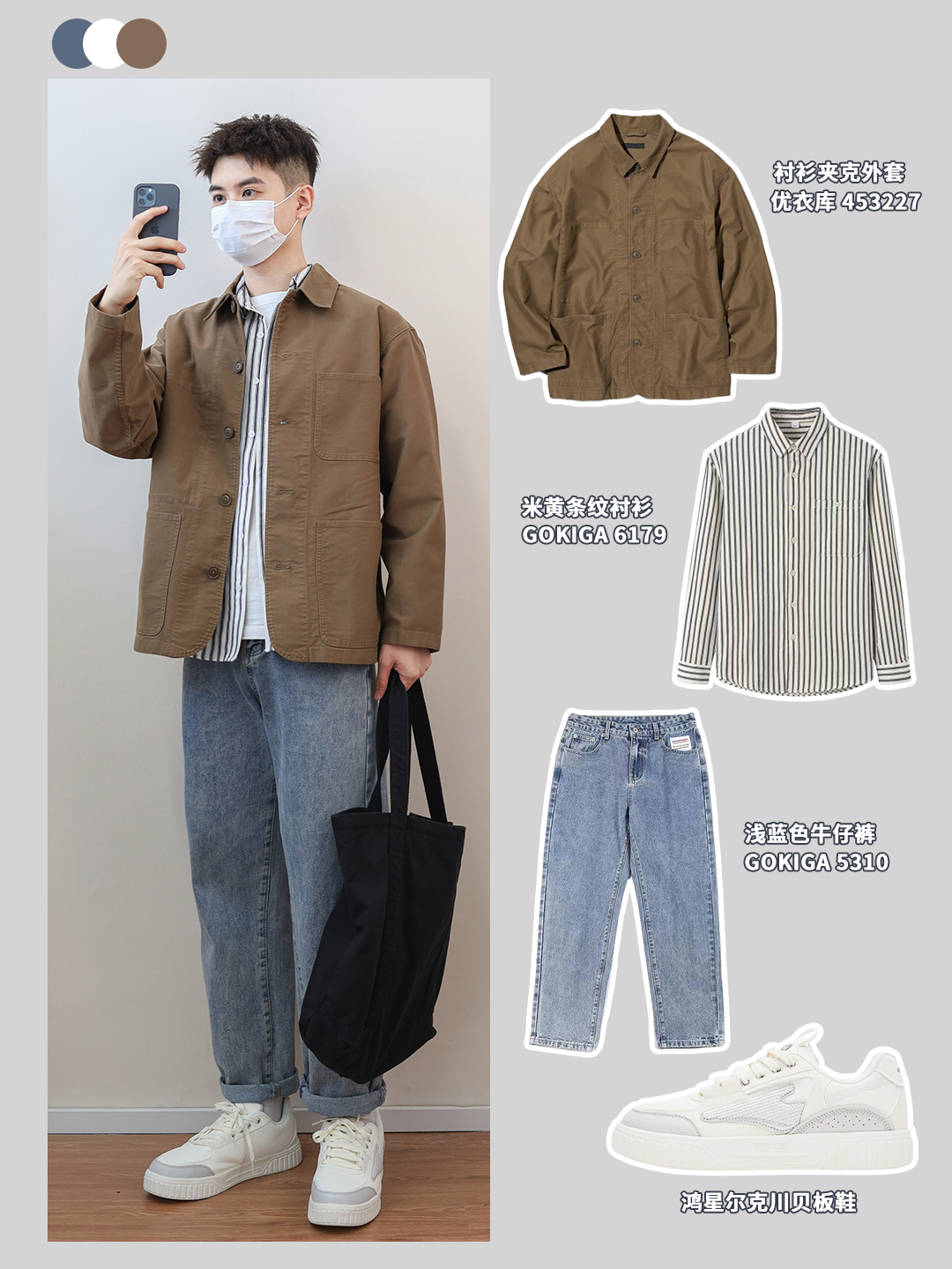 以前师兄穿衣服的时候会追求设计感强的衣服,觉得款式新颖就是好看。但是慢慢地,师兄也觉得基础款简约款的衣服可穿性强,通过颜色叠穿和饰品装饰等可以把整个造型都打造得让自己舒服的同时,别人也会觉得你是个有衣品的人。那么,就一起来看看本期的穿搭吧. . Look1️⃣: 白色外套➕条纹衫内搭➕中蓝色牛仔裤 Look2️⃣: 中蓝色衬衫➕白色T恤➕杏色裤子 Look3️⃣: 棕色外套➕条纹衫内搭➕浅蓝色牛仔...