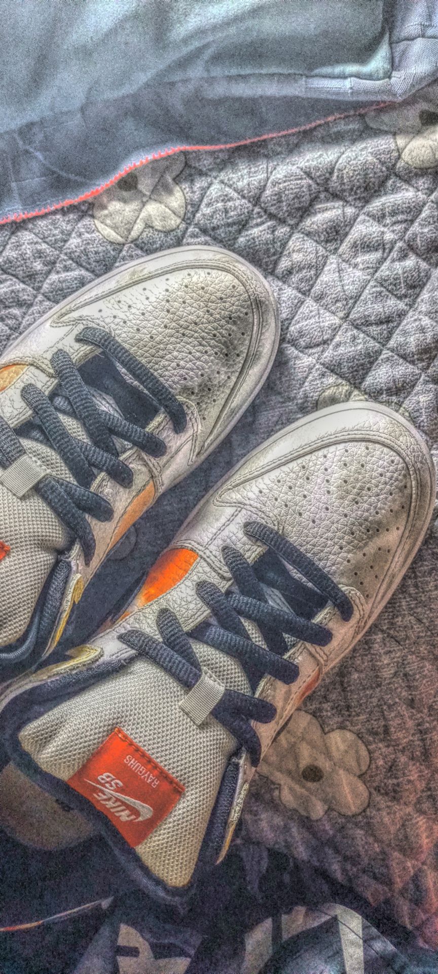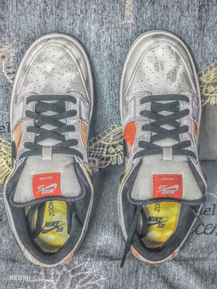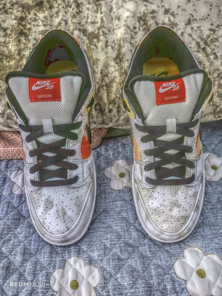 5⃣️标:外标以橙色妆点,标志性的Nike Sb Logo下方带着Rayguns字样凸显身份;内标同样为橙色打底,附有白色58字样