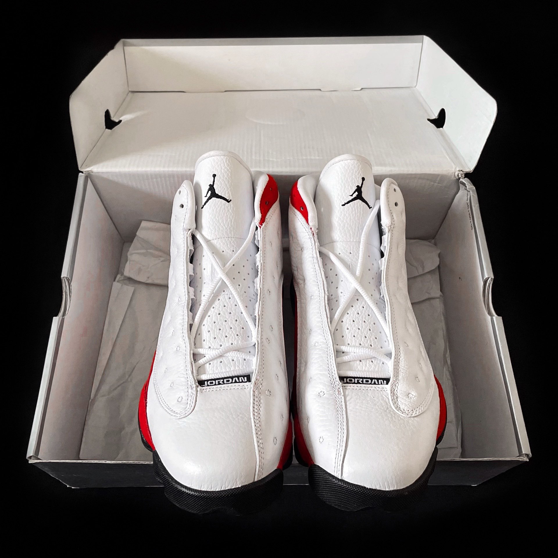 AJ13 “Chicago” From 2017. ⚫️球鞋背景:Air Jordan 13 Retro OG“Chicago”,一双承载着公牛情节和#冠军 荣耀的战靴。1997-1998 年赛季,#乔丹 穿着这款由著名设计师汀克·哈特菲尔德设计的 AJ13 (图6)完成了职业生涯第六冠的伟业。 ⚪️球鞋设计:这双白红AJ13以 芝加哥公牛队 的主色作为设计...
