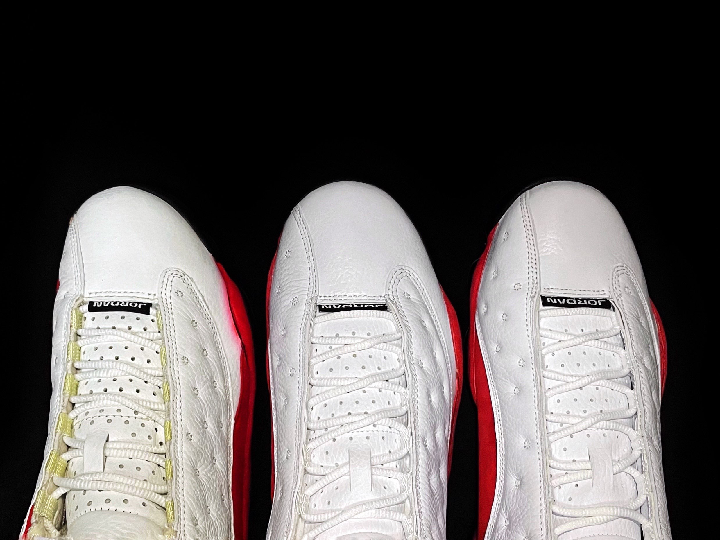 1⃣️皮质:肯定是元年款>10款>17款。 2⃣️红色部分:元年款>10款=17款。元年的红色偏暗,可能是年份长的缘故,它是真正的那种麂皮材质,可以看到很长的那种“条条”。而10款和17款只能用“绒绒”来形容。 3⃣️鞋型:元年款>10款>17款。元年款的鞋型不臃肿而且摸上去填充十分厚实,这一点是复刻远远比不了的。 4⃣️内衬:元年款>17款>10款。这一点不对比我还真没想到,在我...