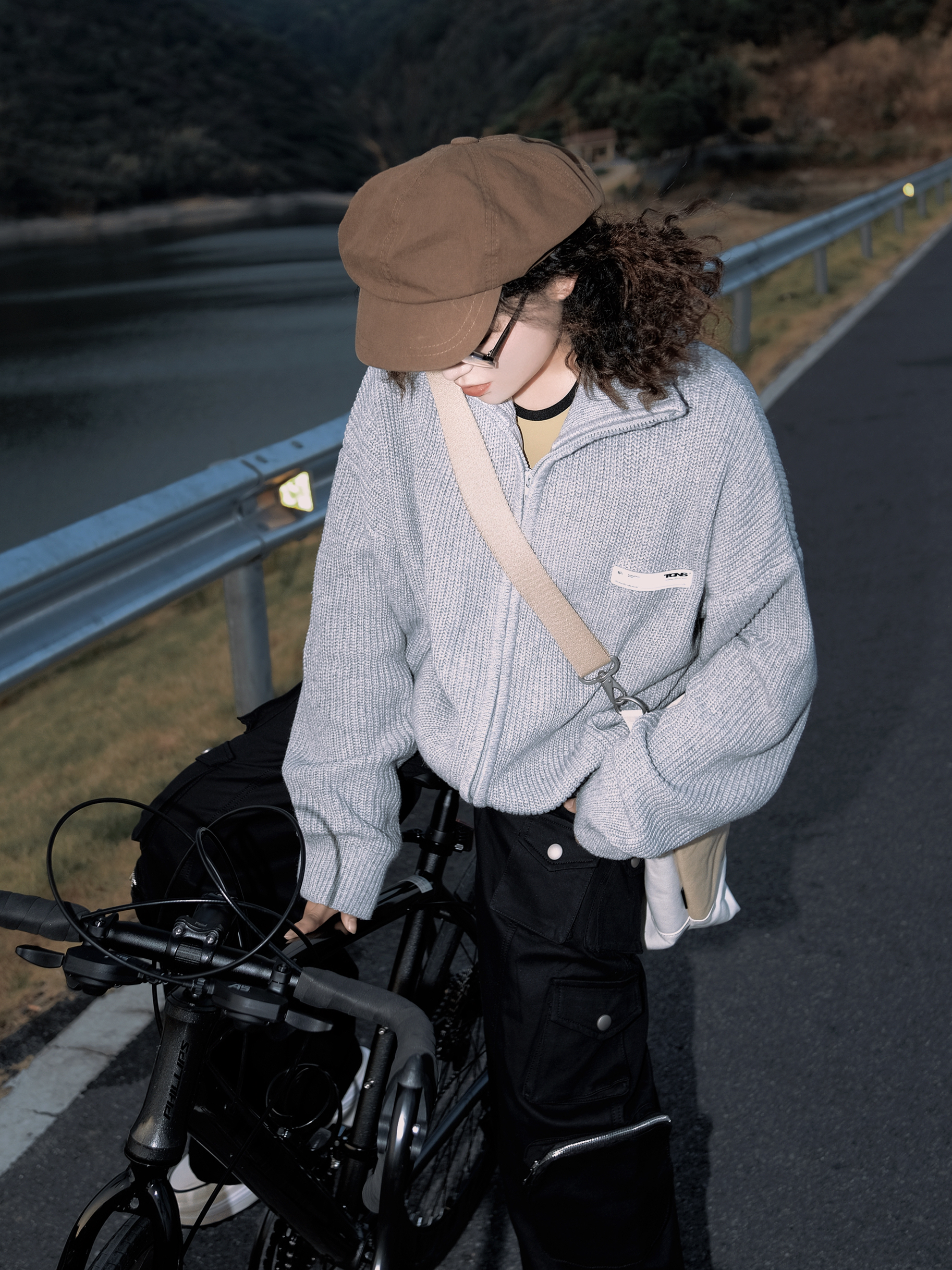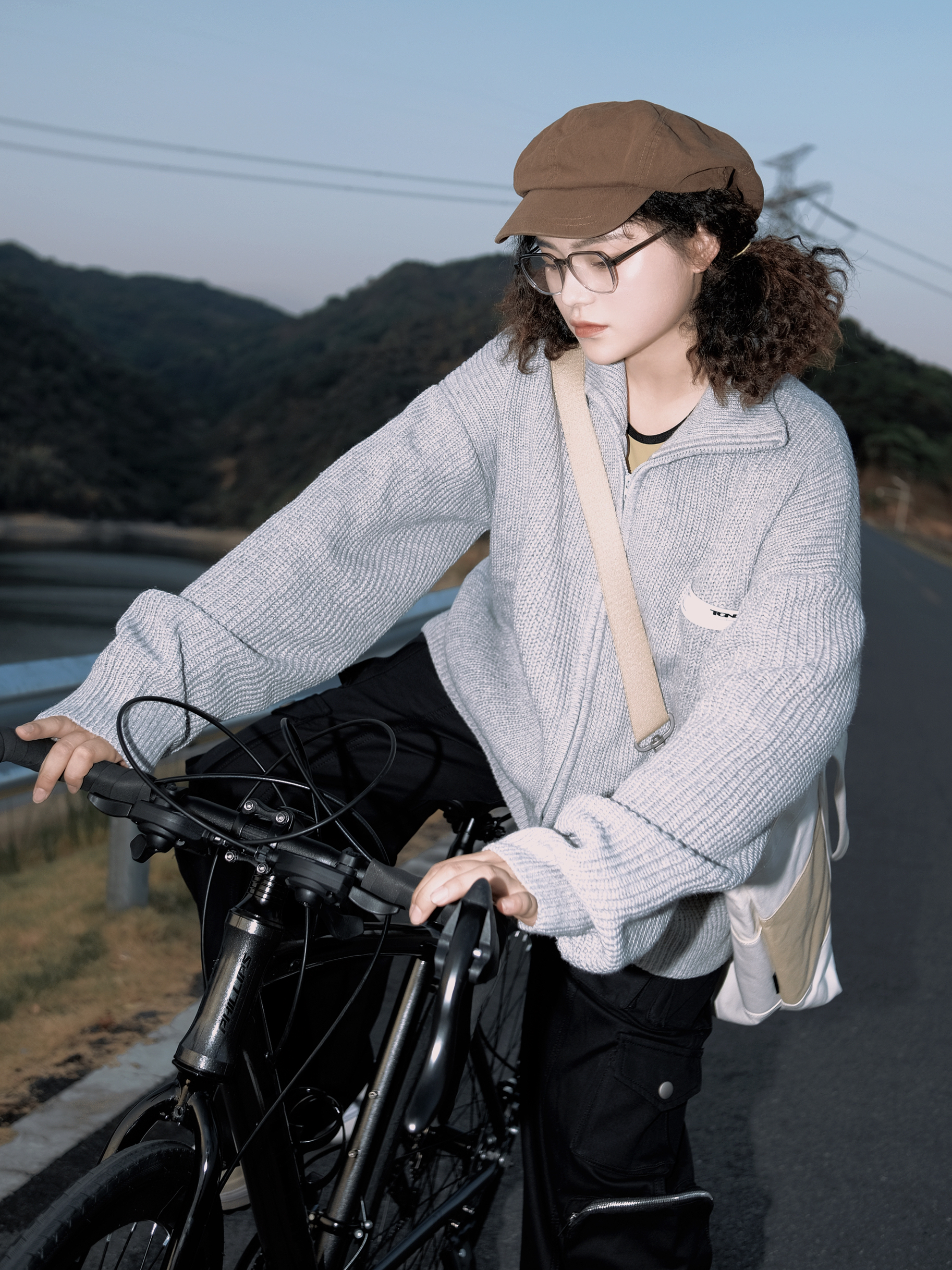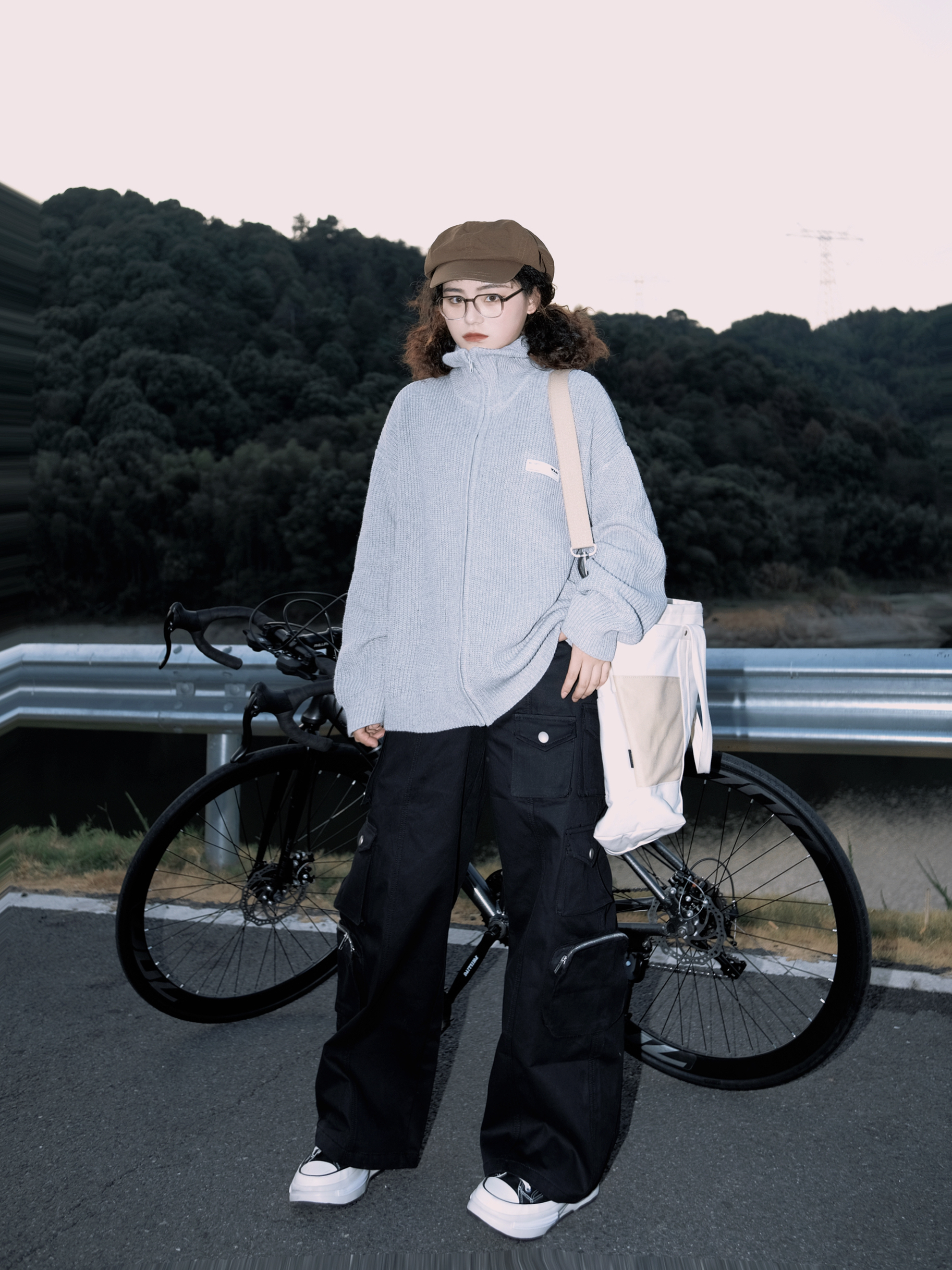 ✔️初秋微凉,穿搭还是以长袖开衫为主,灰色毛衣开衫就非常适合这个凉爽的季节。搭配黑色长裤和环保袋,骑行运动很合适噢~ ✔️开衫设计出行更方便更适应一天温度变化,灰色随意搭配都不容易出错,百搭实穿,上身就是韩系学姐feel! 👔TGNS