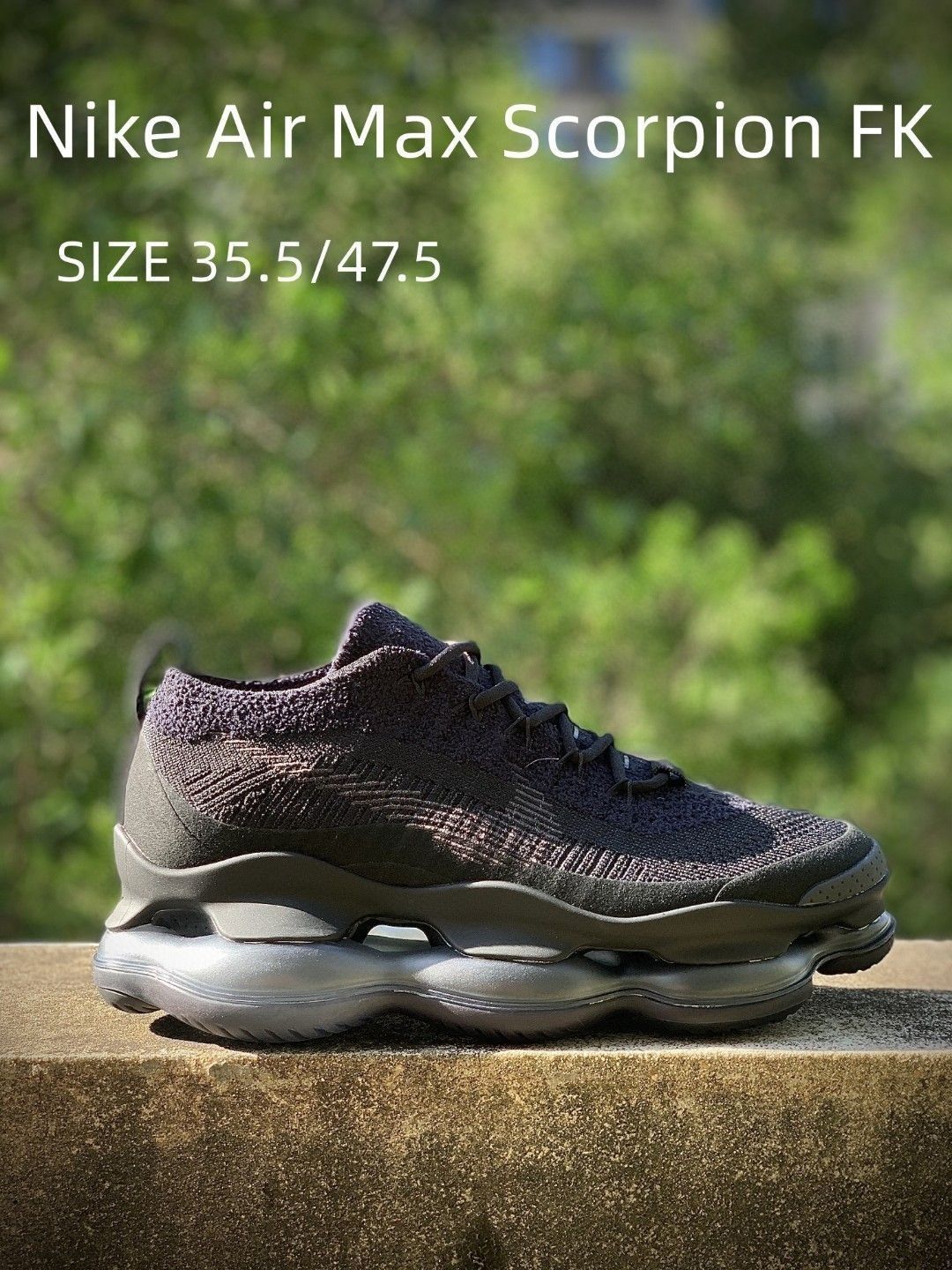 此款是一个搭载全掌长气垫的新鞋款,而这样的配置,会带来过去所有 Air Max 鞋款所没有的穿著体验;除了中底外鞋面材料也有所突破,根据 Dylan Raasch 说法,这次鞋面为新开发的 Chenille Flyknit,从目前曝光照片来看,鞋舌、鞋领处加入了新材质,是与过去 Flyknit 最大的不同。是说第一次见到 Nike Air Max Scorpion 这个鞋款,很直觉的联想到元祖版的...