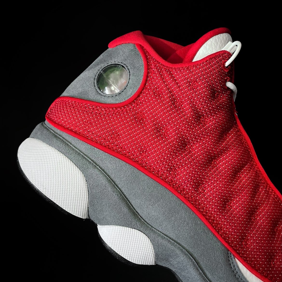 【AJ13 “Red Flint” 亮上细节📸】 🔴鞋款细节:鞋双鞋采用了红色作为主色,再搭配白色荔枝皮鞋头与延伸至中底的灰色麂皮鞋面相互搭配,层次感丰富。红色部分采用了标志性的3M编织网眼鞋面,整个鞋身线条看起来十分流畅,而经典的白红设计也为这个鞋款加分不少。绿色“猫眼”更是点睛之笔,红绿双色的设计进一步提升鞋款醒目度。总的来说,配色方案与经典的“Flint”配色无太大的差别,而且红色还...