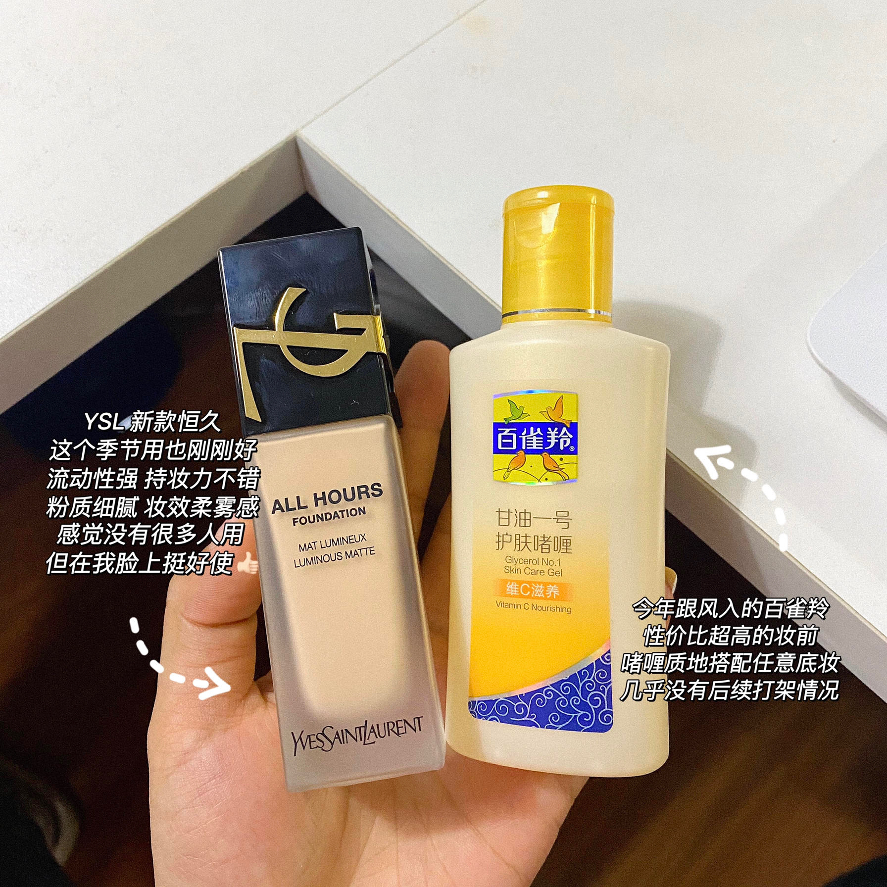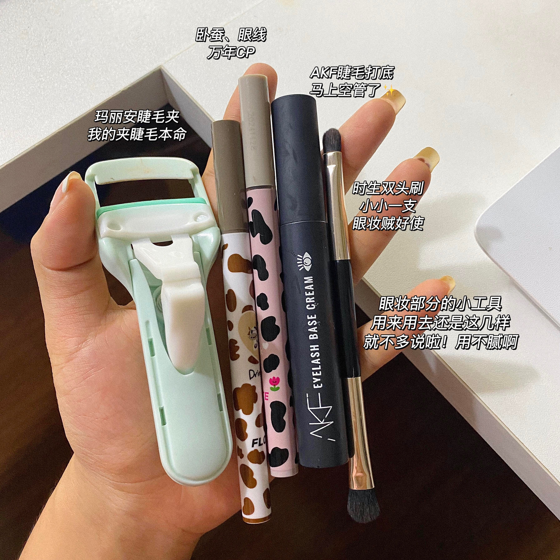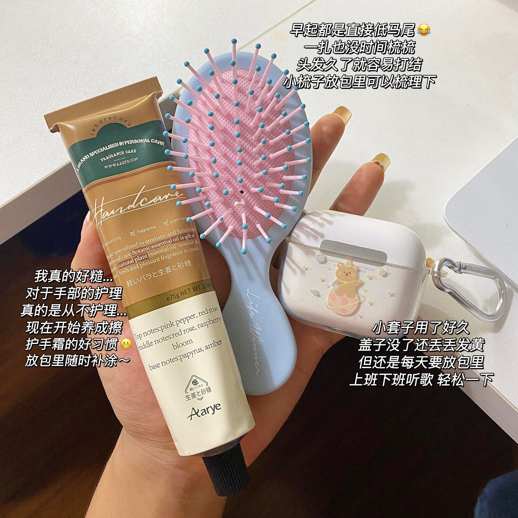 早八党太难了!早上真的起不来! 能多睡一会睡一会😪到校再悄悄化妆 包里装的都是彩妆干货!十分钟就搞定! - 1.YSL粉底液/百雀羚甘油 2.zenn散粉/user腮红刷/郭小妞粉扑 3.酵色焦糖盘眼影 4.研译唇蜜/酵色口红/mac316 5.玛丽安睫毛夹/AKF打底膏/花洛莉亚眼线卧蚕笔 6.安野屋护手霜/小梳子/耳机
