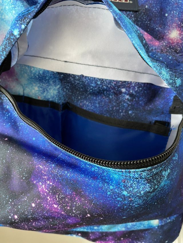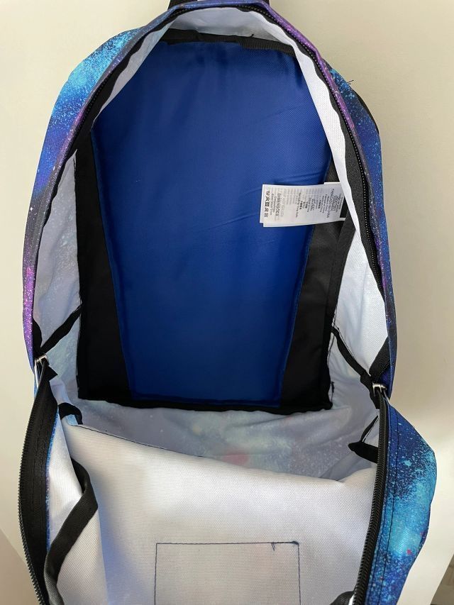 品牌名称:Jansport 双肩背包 一直想买双肩包,出去玩比较方便 无意间发现了这款,看到这个颜色,银河星空马上入手了,真的没有后悔别看是迷你型,超级能装,超级实用! 这款双肩包非常百搭无论是上班族还是学生,平时逛街旅游都可以,能搭配出很多风格 前面有两个口袋可以放一下小零碎 第三个口袋,能轻松装下15寸平板 鸭嘴梯扣背起来不勒后背,提手也很合理,可提可背