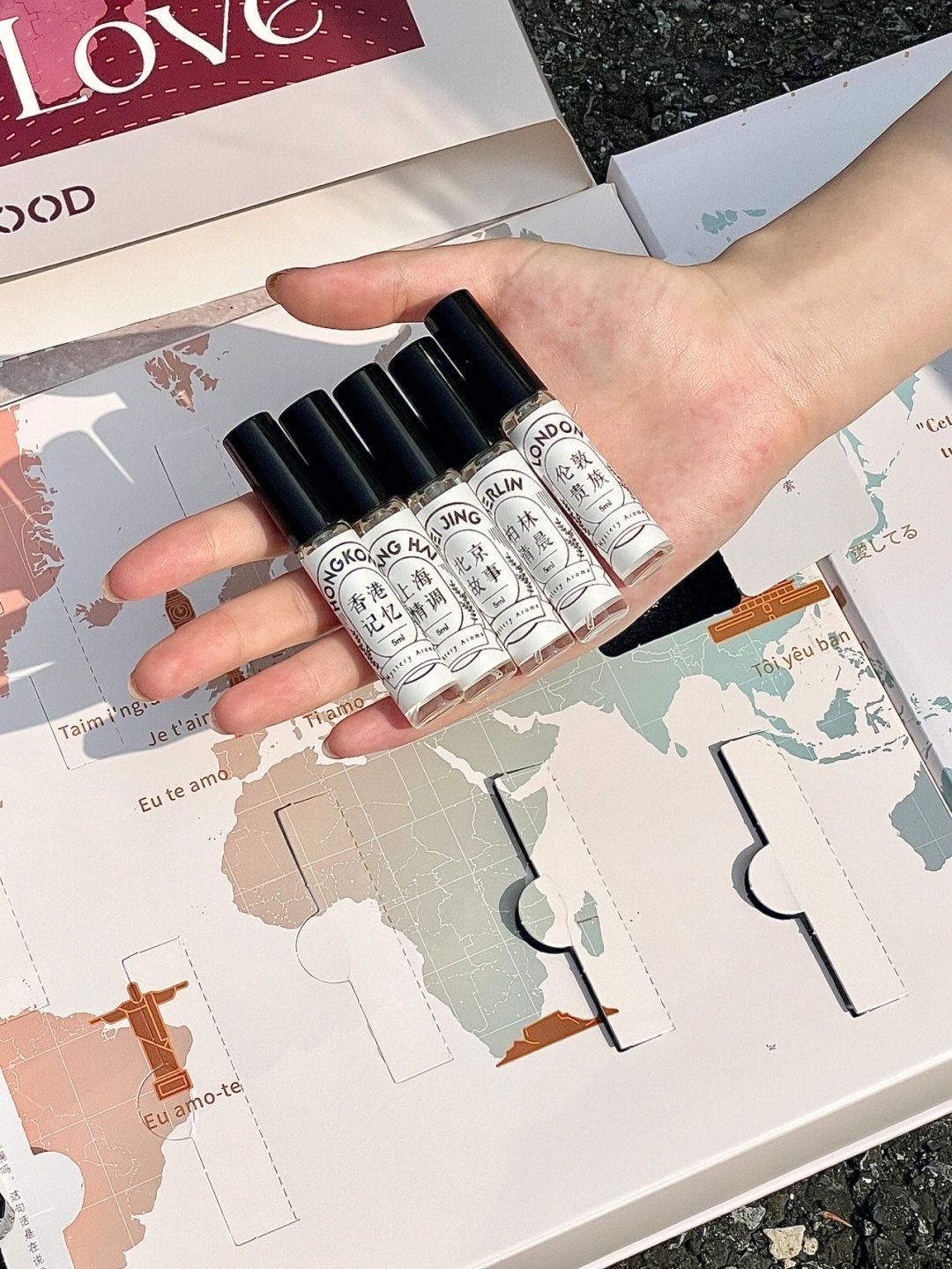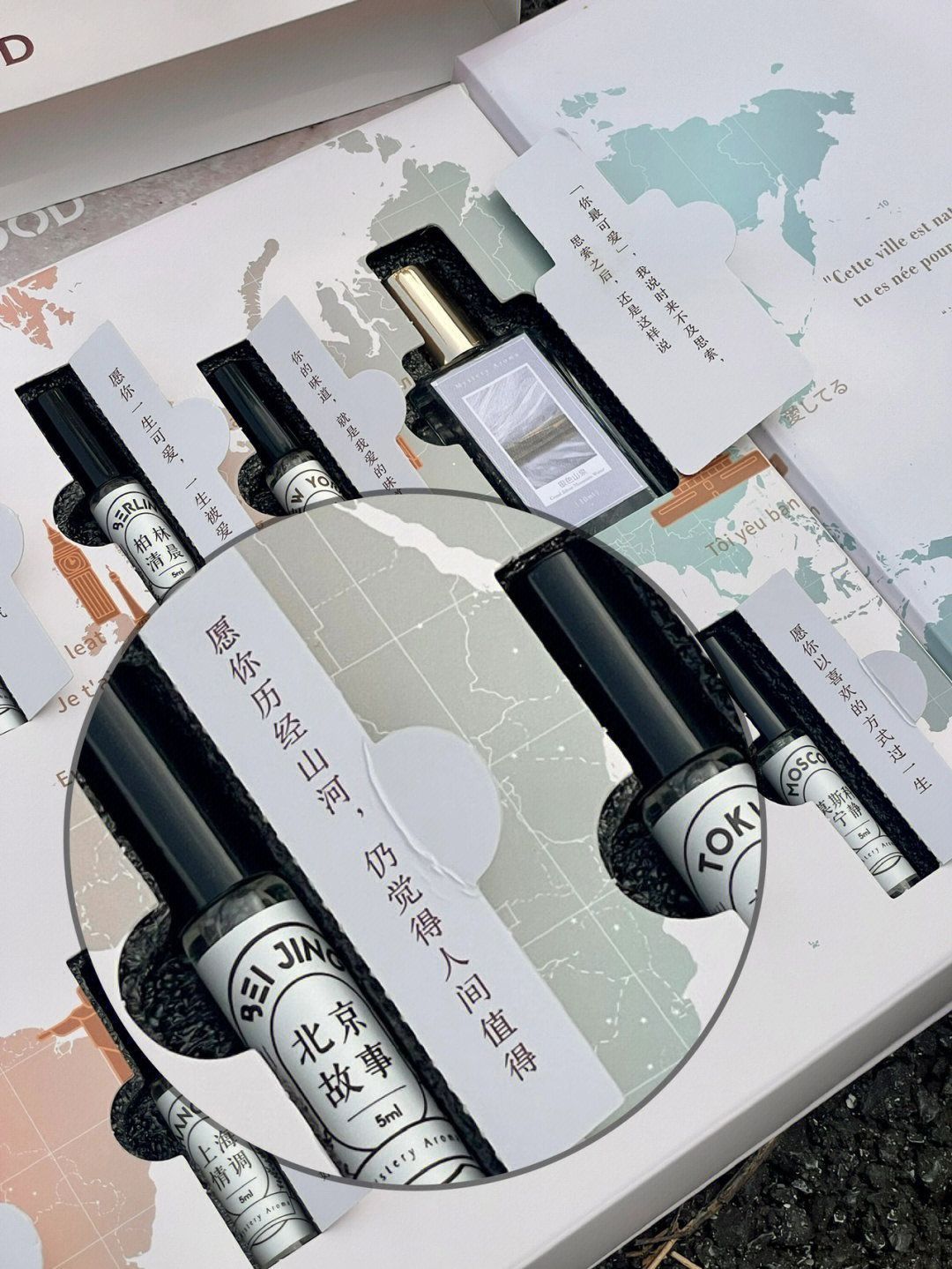 男朋友送的这个礼物是环球旅行香水!! 真的不能不爱! 包装就很有仪式感 打开里面是一个个不同的地方 是环球旅行的主题!!送礼就很有仪式感! 一个一个拆开里面还有情话 真的超级有仪式感 拆完之后有10个小样和一瓶正装 正装是清冷中性的味道 有种高冷气质美女的感觉!!!