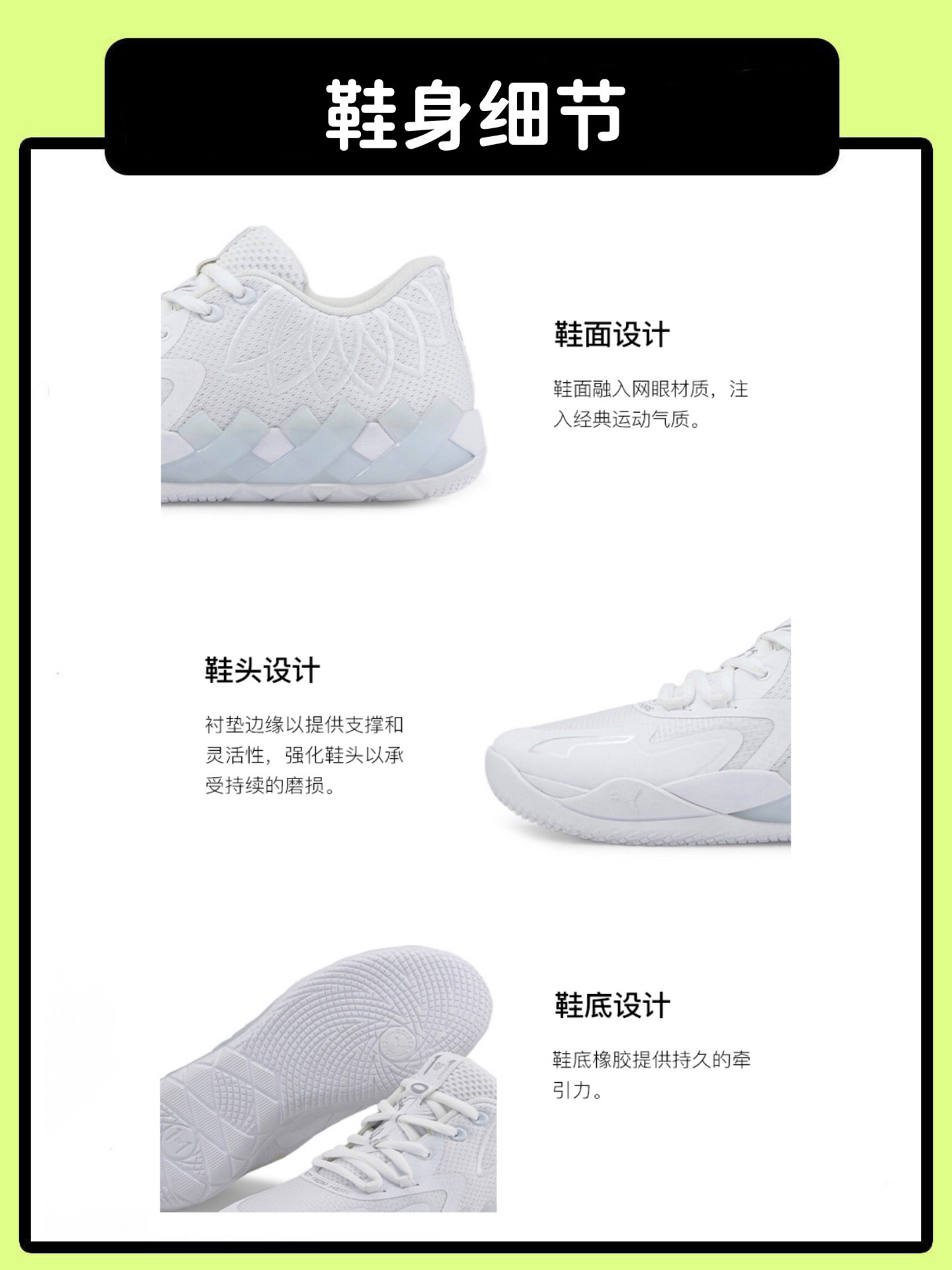 本篇笔记关联了Puma/彪马 MB.01 拉梅洛鲍尔1代 Nitro Foam 支撑 包裹性 篮球鞋 纯白等商品,为用户提供真实的使用体验和购买参考。