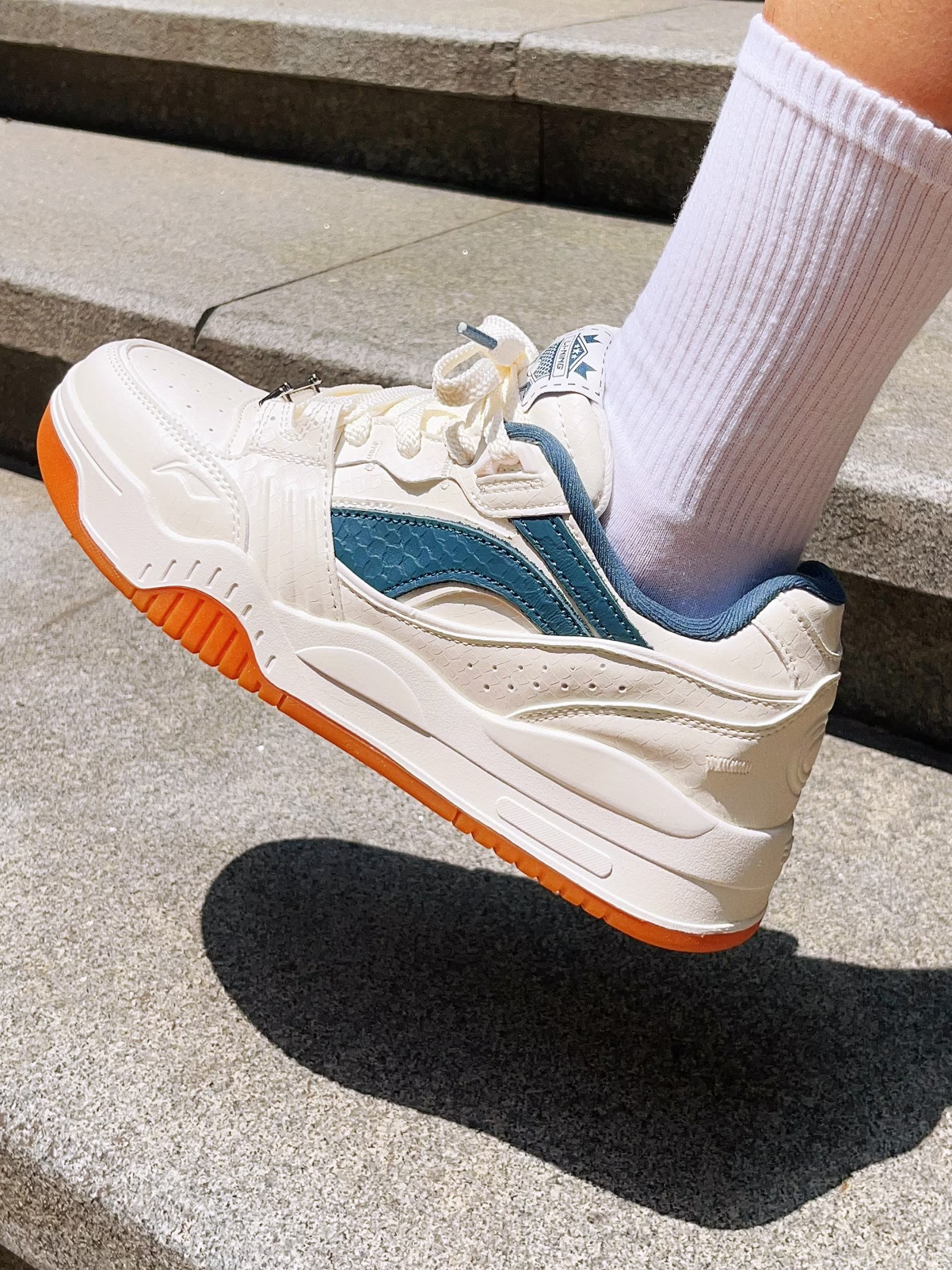 咱们就是说,李宁最近新出的板鞋太绝啦🥰🥰 一眼就看中,收下了这双白蓝白蓝的新鞋~👟 我买的这个颜色很有少年感,上脚是真的很好搭。 虽然设计上看起来很简单,但实际上细节做得很好!细看会发现鞋面上的仿鳞片纹路,配上银色金属扣,整体都显得很高级👌🏻