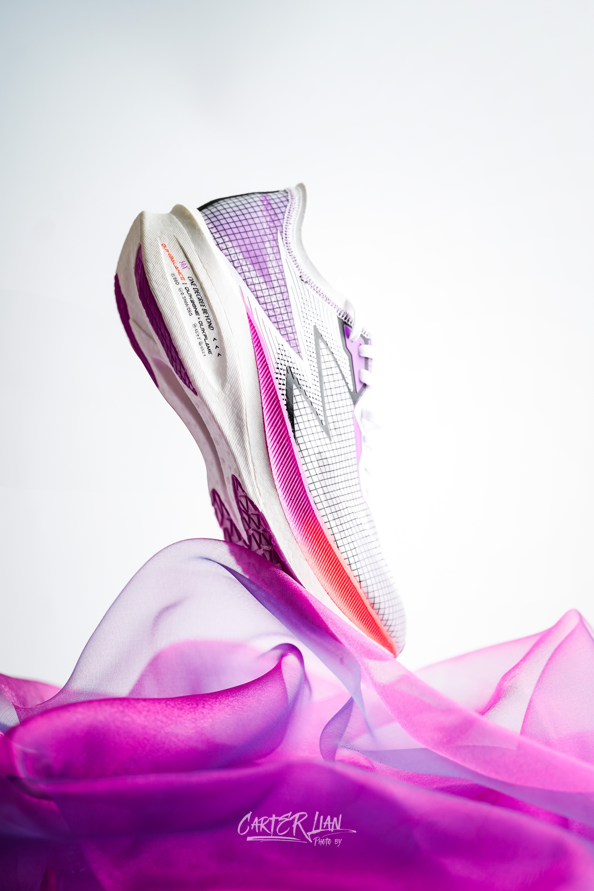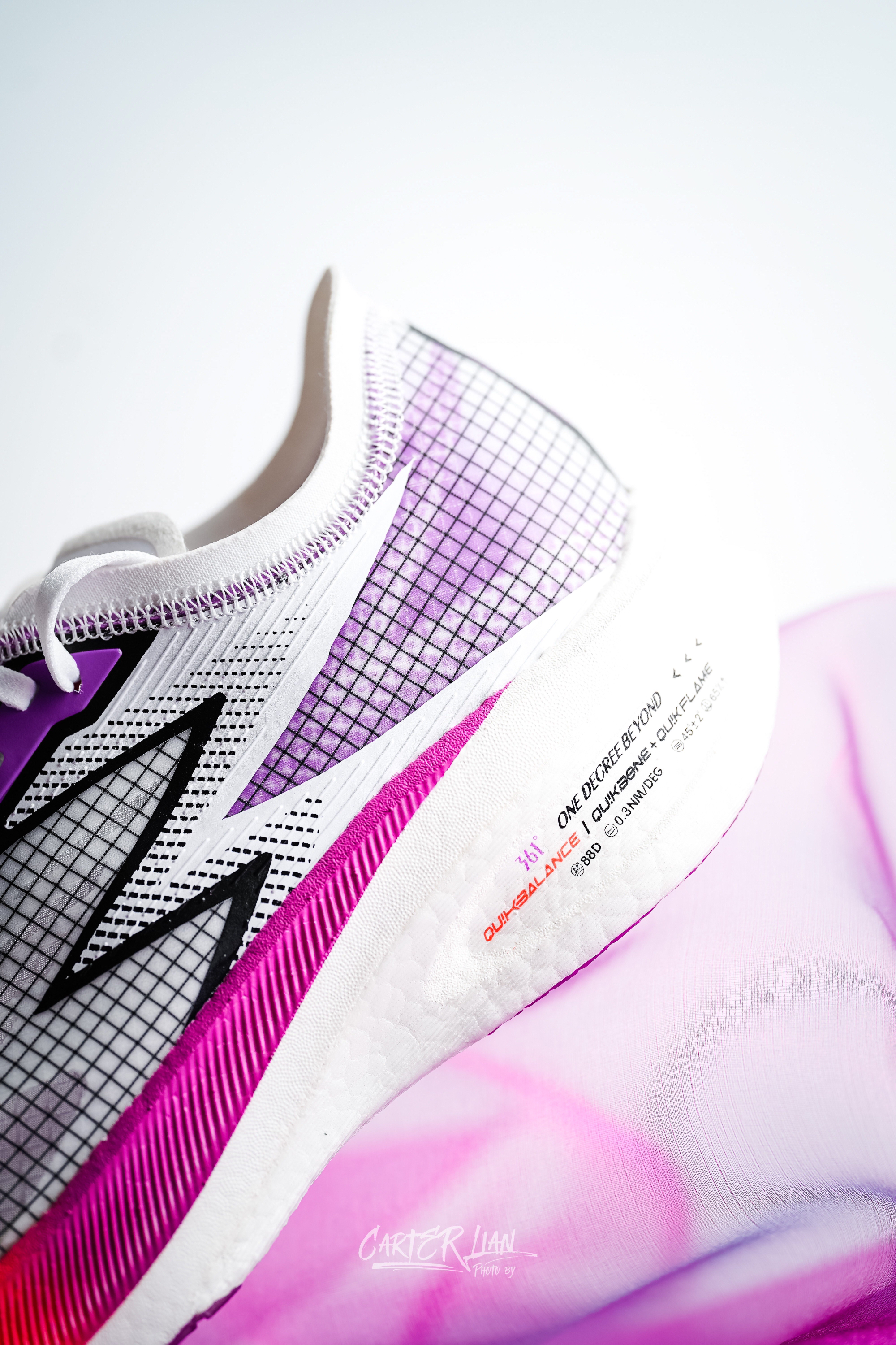 361在配色上确实是非常稳,不管篮球鞋还是跑鞋,配色都是非常好看的,而我刚入手的这双飞燃也是先冲着颜值去买的。 整体细节👀:整体白紫色为主色,中底上红紫的渐变过渡绝对眼前一亮。 实际上脚感上:飞燃穿上整个脚感感觉整体设计蛮成熟的,贴合度、轻量化、透气性等方方面面都蛮好,有第一次穿Nike vaporfly的感觉。简单跑了7公里,平均配速428,从440起步提速到最后的400,推进力一直都有。整...