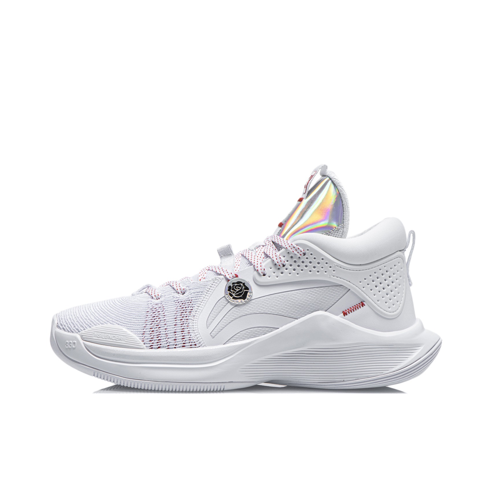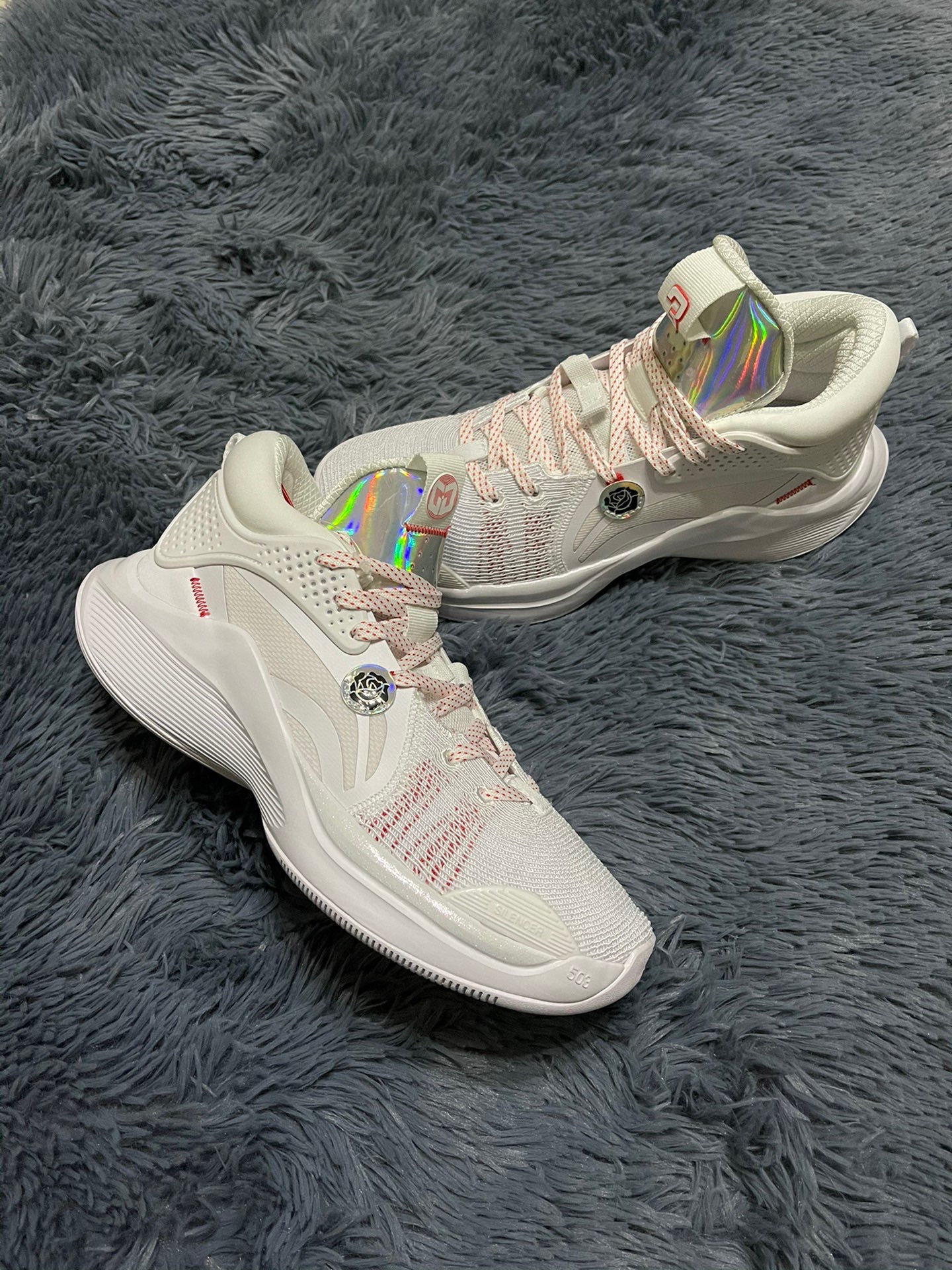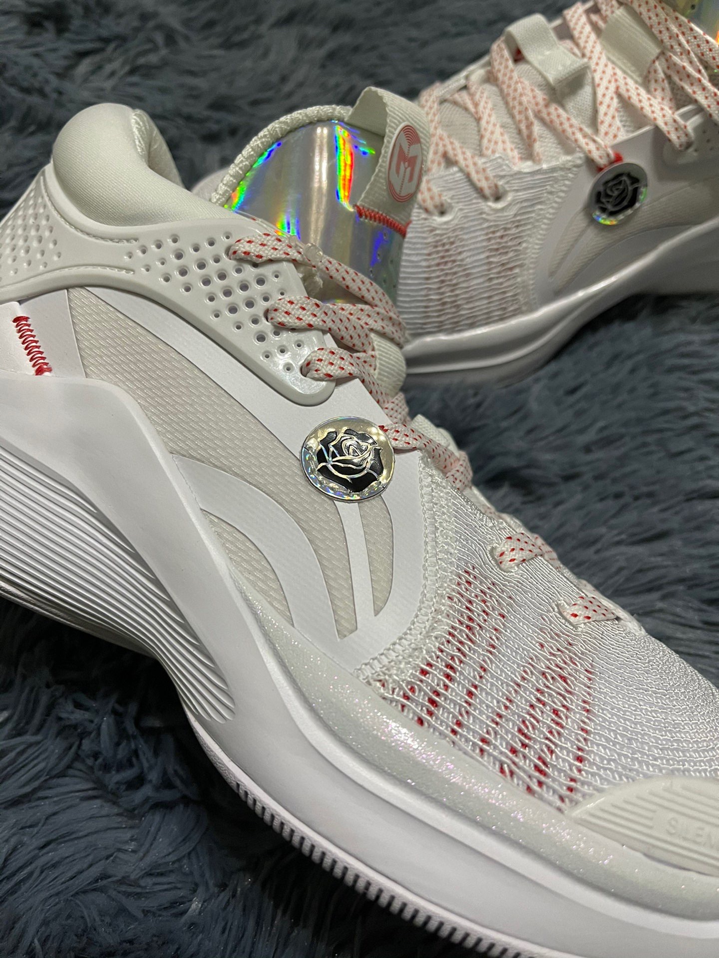 #李宁 最新团队款,整双鞋充满了麦科勒姆的个人元素, 玫瑰标识,个人logo,整体颜值可以说是相当出色了。 鞋面材质和驭帅13䨻类似,包裹感不错,鞋码不偏,但是脚宽或脚背高需要选大半码。 个人不太喜欢的点就是刚刚拿上手感觉有点偏重,具体性能还要等实战后才能总结。