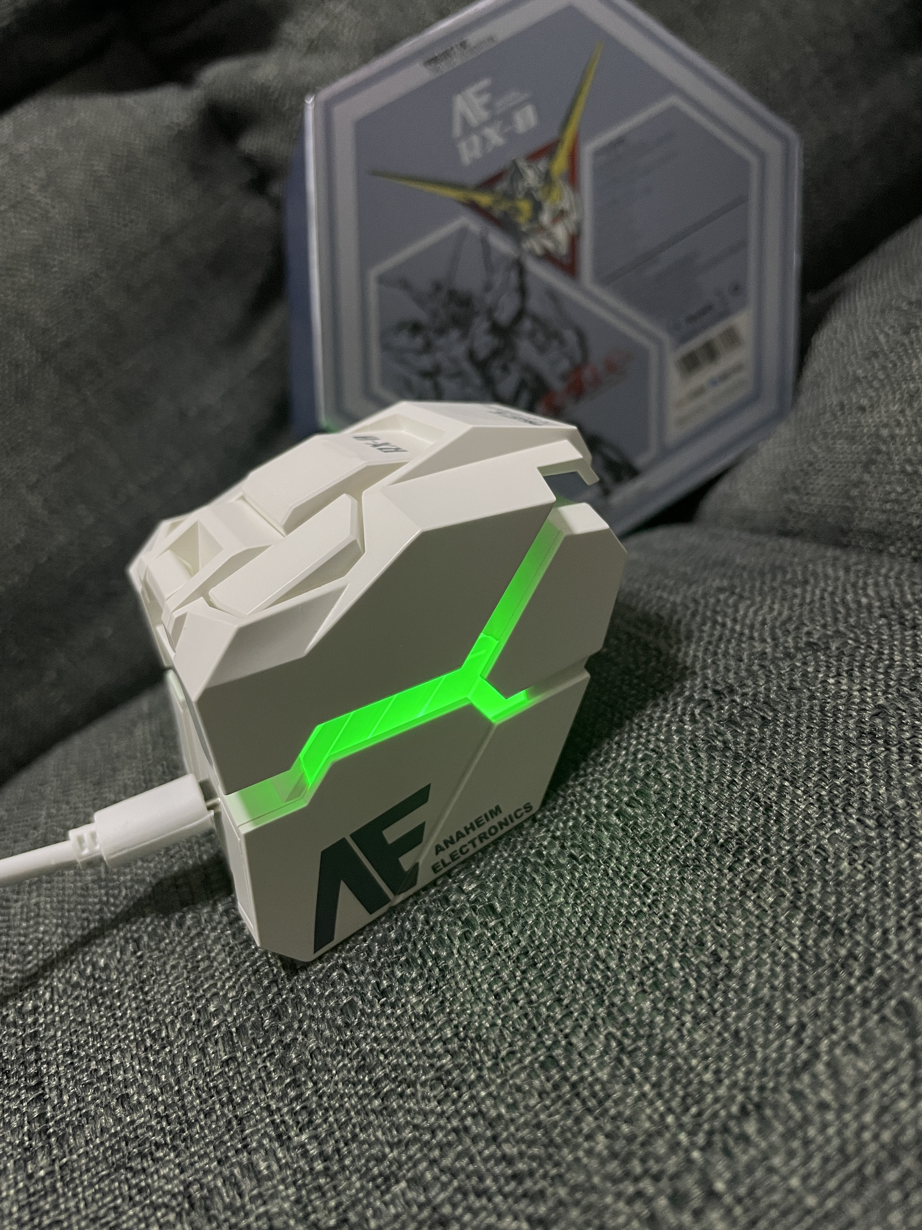 halo 阿迪来了,本期和大家分享的好物是这款外观超级炫酷的蓝牙耳机“象鼻子x机动战士高达UC联名”真无线蓝牙耳机! 首先从外盒到内盒整个就是满满的高达元素!相信没有一个“高达粉”看完不会心动.而其中内盒又是采用的“拉普拉斯之盒”的设计,非常的别致. 再来看耳机本身,不得不说这是我见过最帅的耳机了.它的外型高度还原了独角兽高达的肩甲部分同时通过红绿两种色灯光与独角兽相呼应! 🔴“爆甲”时直接红灯亮...