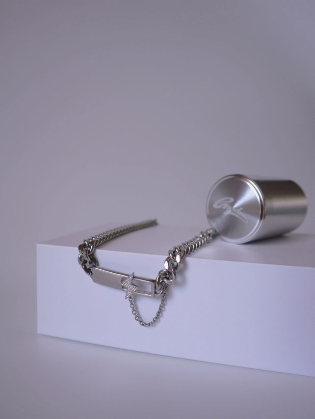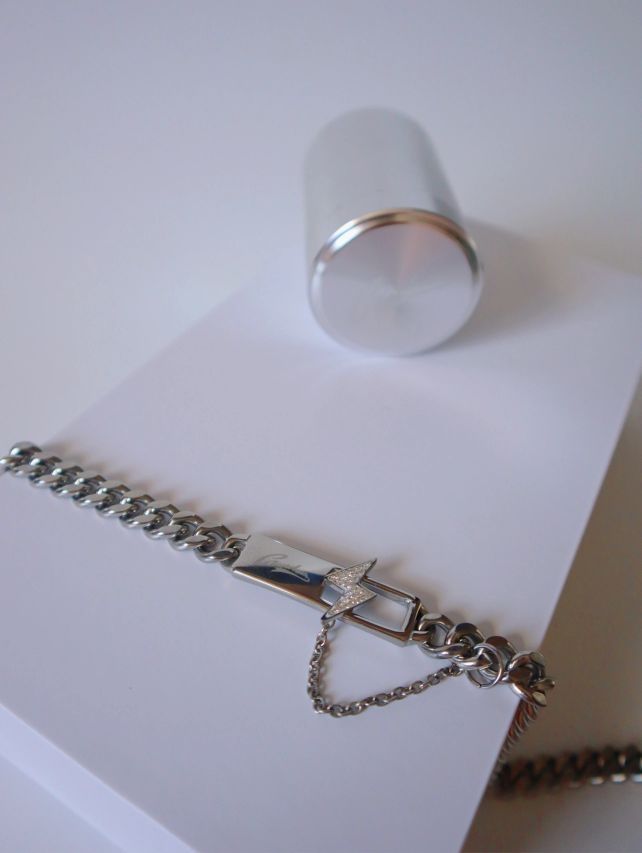 🌵中意很久的Guuka/古由卡 闪电方牌项链总算成功收入囊中啦,实物很精致,小方牌是不能取下来的,做工方面细节满满。 🌵上身试戴下相当百搭,属于比较街头的一款项链,而且女生也可以戴,夏天穿t恤单戴就可以提升整体搭配的层次感,秋冬穿卫衣可以选择和一条短一点的项链叠戴。非常值得入手的一款单品,推荐!