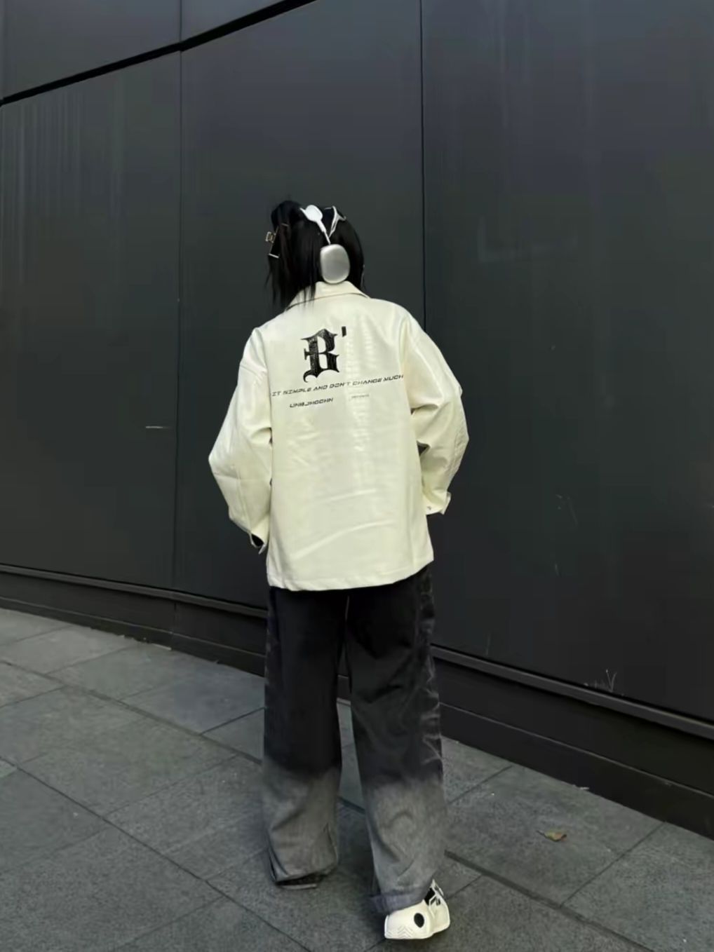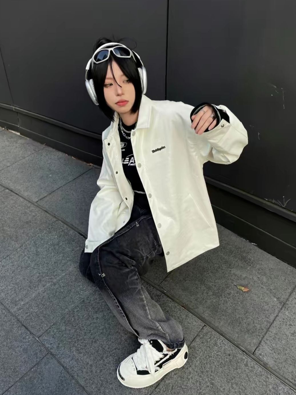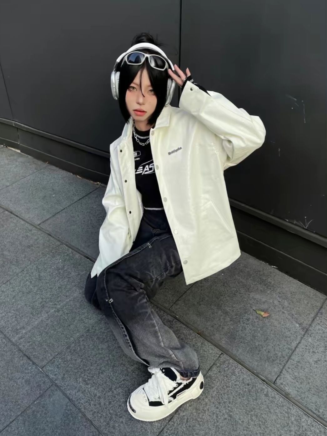🌻台风加速了入秋的速度,入秋的第一件皮衣外套安排起来啦~ 🌻超酷黑白穿搭:今天走一个酷女孩人设!白色鳄鱼纹PU皮外套,简单干净,鳄鱼纹的加持让皮夹克变得时髦又帅气,上身超有型~ 🌻裤子简单搭配一条黑色渐变牛仔裤,透气轻薄的触感很适合最近的天气!宽松且有垂坠感,显瘦又显腿长