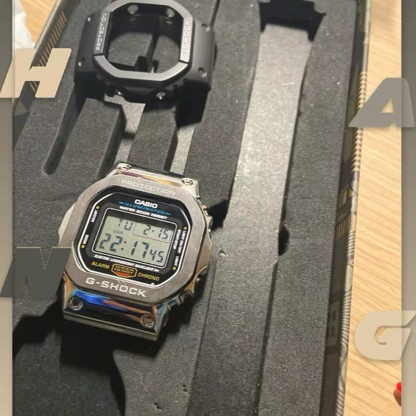 新学期第一个礼物🎁就是卡西欧手表 周杰伦同款哦 看到有改装成小银块立马心动了,买了5600型号的表带和表壳 自己动手丰衣足食改完也太帅了 340相当于买了一块小银表 表带可以调节大小,女生也可以拥有哦 图源网络侵删