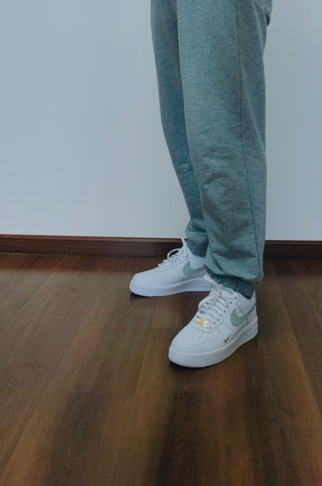 👟球鞋名称: Nike Air Force 1 '07 Essential 女款 绿豆灰 迷你钩 🔍分享理由: 小清新款式,一年四季都合适,比经典款生动得 多且同样好搭配衣服,基本可以算百搭。 夏日清凉,冬日灵动。 绿豆灰色大钩尽显艺术,金色小钩和金色AF1金 属牌呼应非常漂亮,细节处尽显文雅。 📒实物质感 脚感很好,之前感觉鞋底偏硬,但是多穿几次以 后发现还是很舒服的,不是那种硌脚的硬,整体...