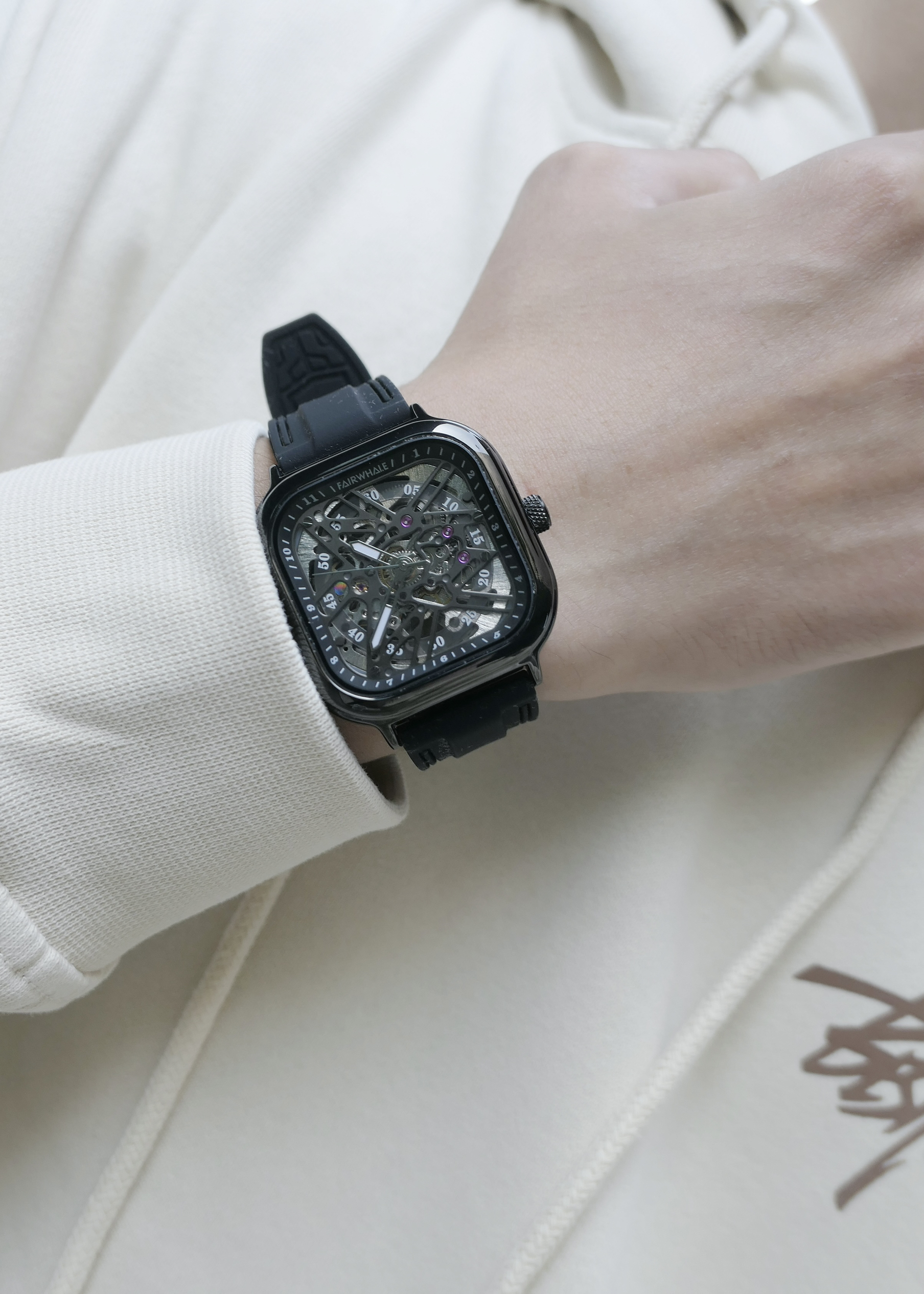 本篇笔记关联了Mark Fairwhale/马克华菲 星光系列 陀飞轮双面镂空方形防水夜光全自动机械男士手表 黑壳黑面 等商品,为用户提供真实的使用体验和购买参考。