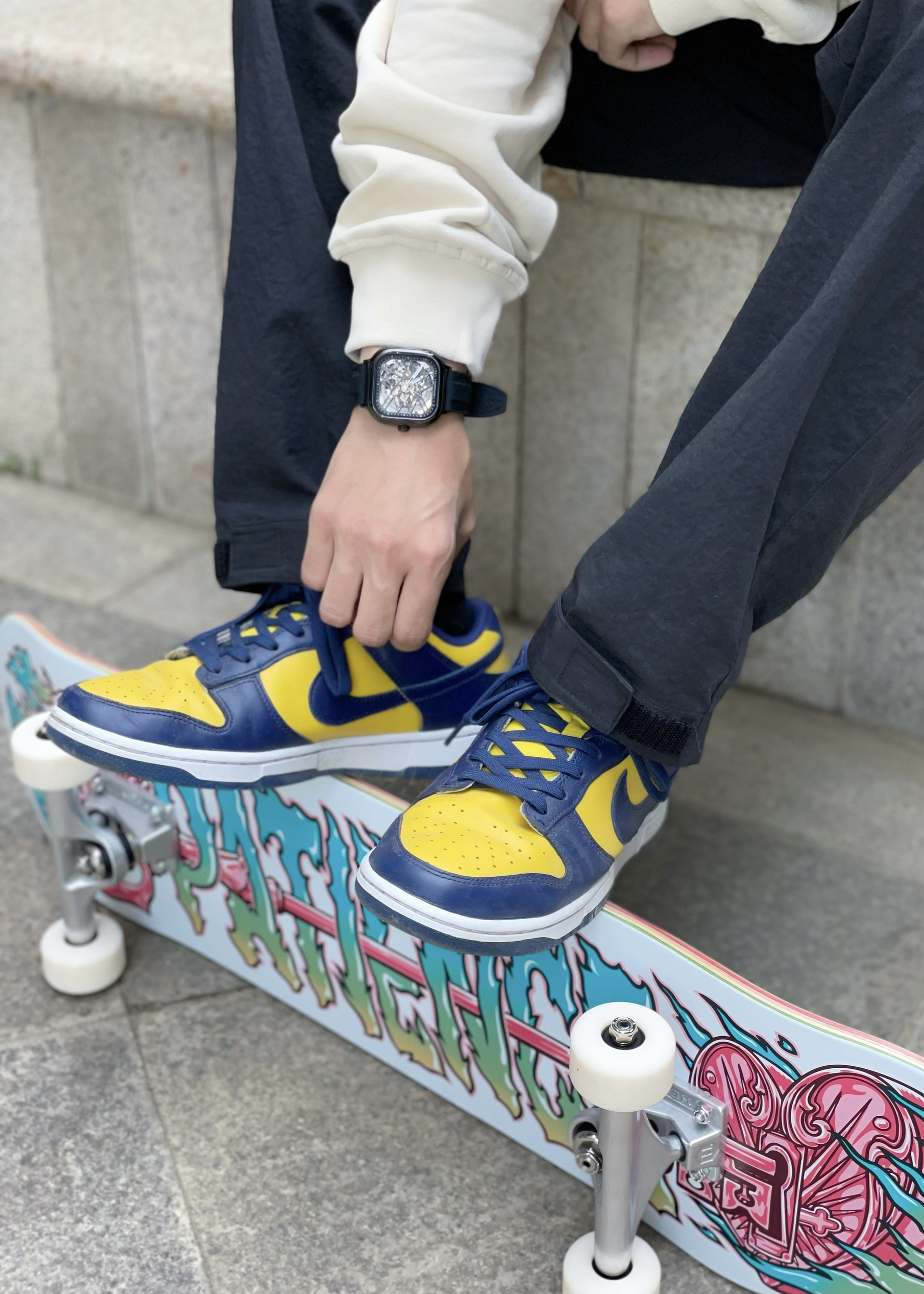 手表对于男生来说绝对是必备单品了吧❕ 高颜值的手表 无论什么场合都可以带来自信 而且平常也是不错的穿搭单品 马克华菲的手表还是一如既往的高颜值 ⌚ 酷黑的外观和我今天的穿搭特别搭配 深色系的手表还是比较适合浅色系的衣服 可以更好的突出手表 搭配小细节更加分 方形的轮廓设计 视觉上给人更加硬朗 ✔ 平时戴腻了圆形的话 可以尝试一下方形 蛮不错 金属的质感特别棒 结合橡胶表带 体验更好 通体镂空的...