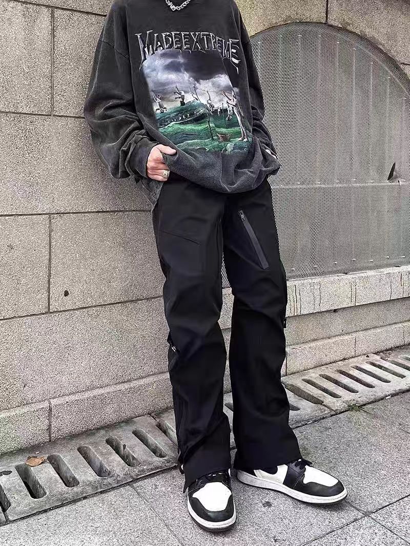 压胶拉链裤和绑带的完美融合 版型立体 裤型偏瘦 球鞋遮鞋面都能很好驾驭 我喜欢松开中间的绑带纽扣 更简洁容易搭配 微喇叭的裤型设计感满满 超有型