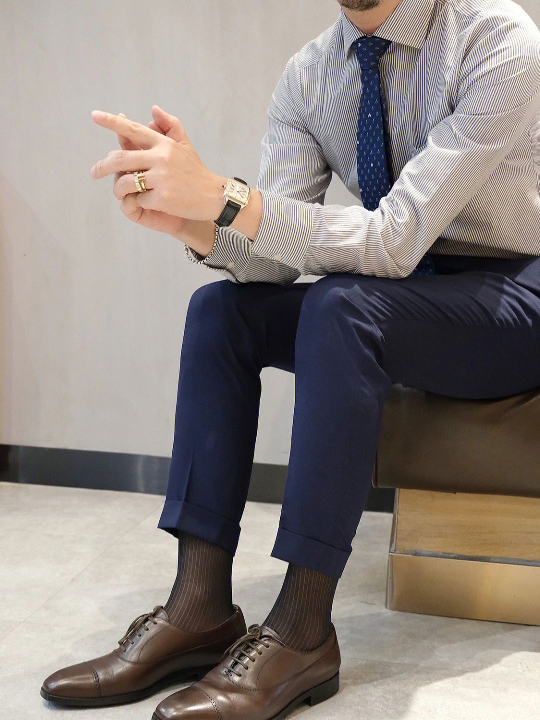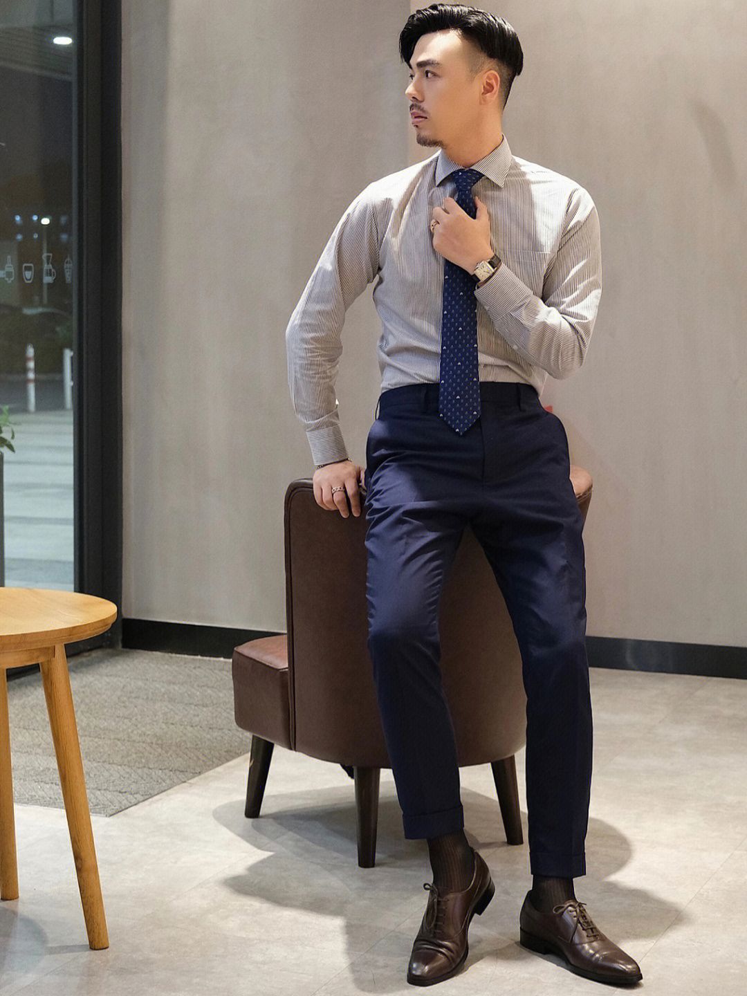 . 轻熟男日常职场穿搭 条纹衬衫👔 甲壳虫🐞海蓝色领带👔 藏青色西裤👖 深咖色皮鞋👞 . 皮鞋搭配丝袜 夏季职场型男这么穿,简约得体还有型 . #男人这样穿才型 #职场穿搭 #皮鞋黑袜 #衬衫控 #男生轻熟风穿搭 #皮鞋 #介绍一个小叔叔 #领带