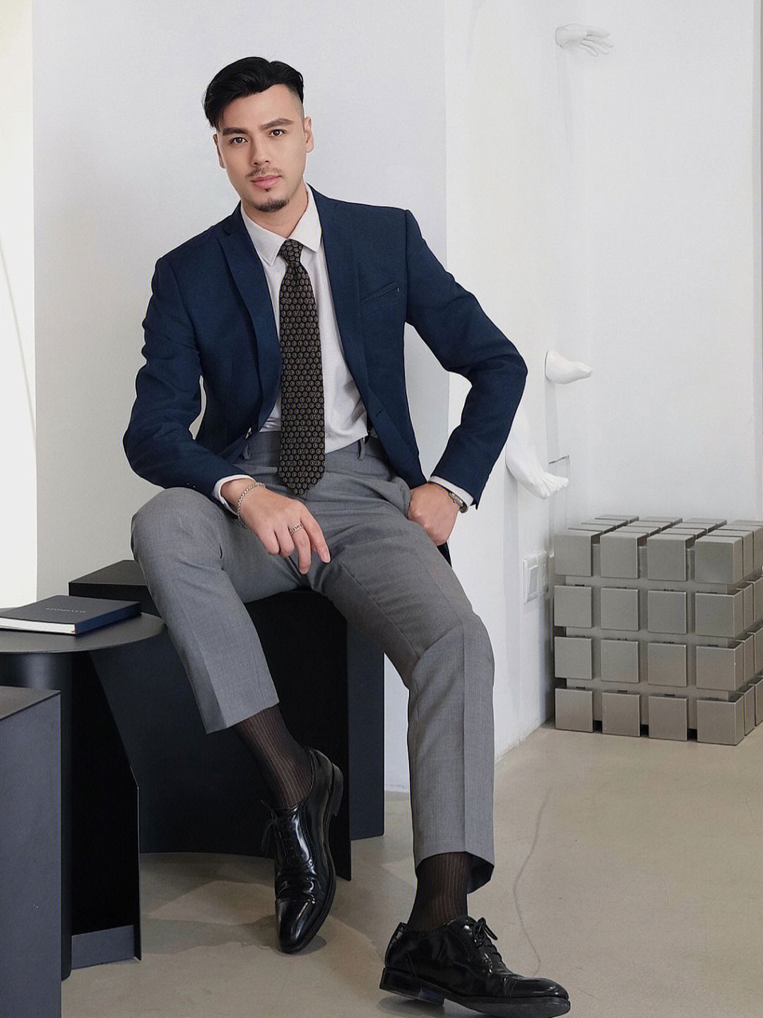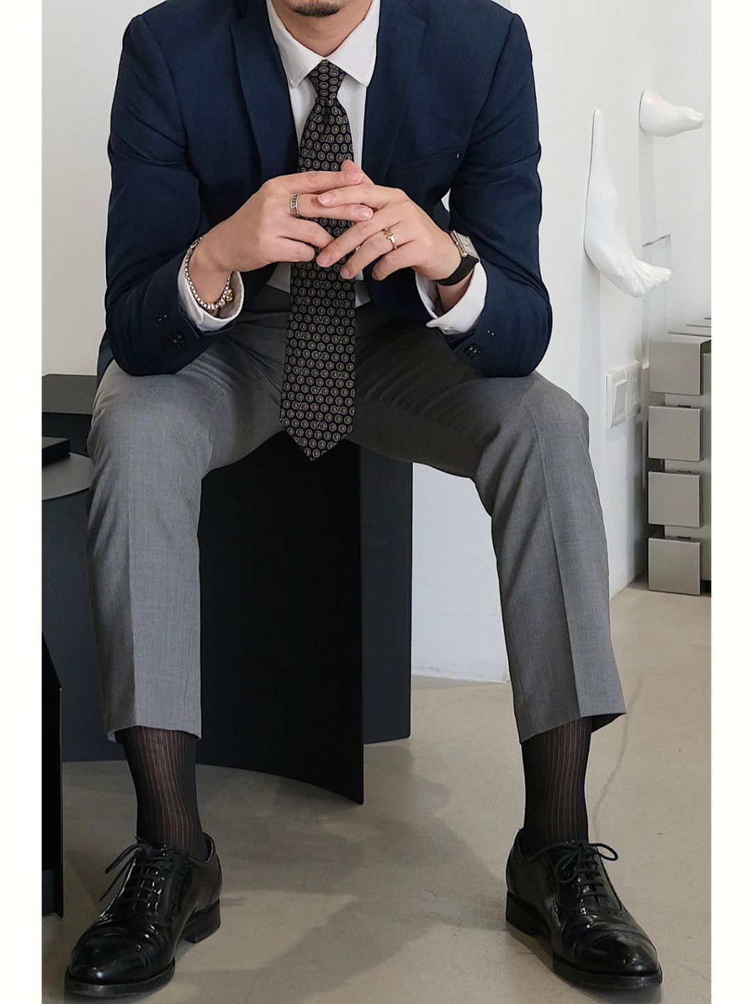 . 不同色系西装穿搭🤵 藏青西装搭配灰色西裤 黑色丝袜搭配黑色皮鞋 职场正装通勤 . #正装不无聊 #正装丝袜 #正装皮鞋 #正装穿搭 #中年大叔穿搭 #职场穿搭