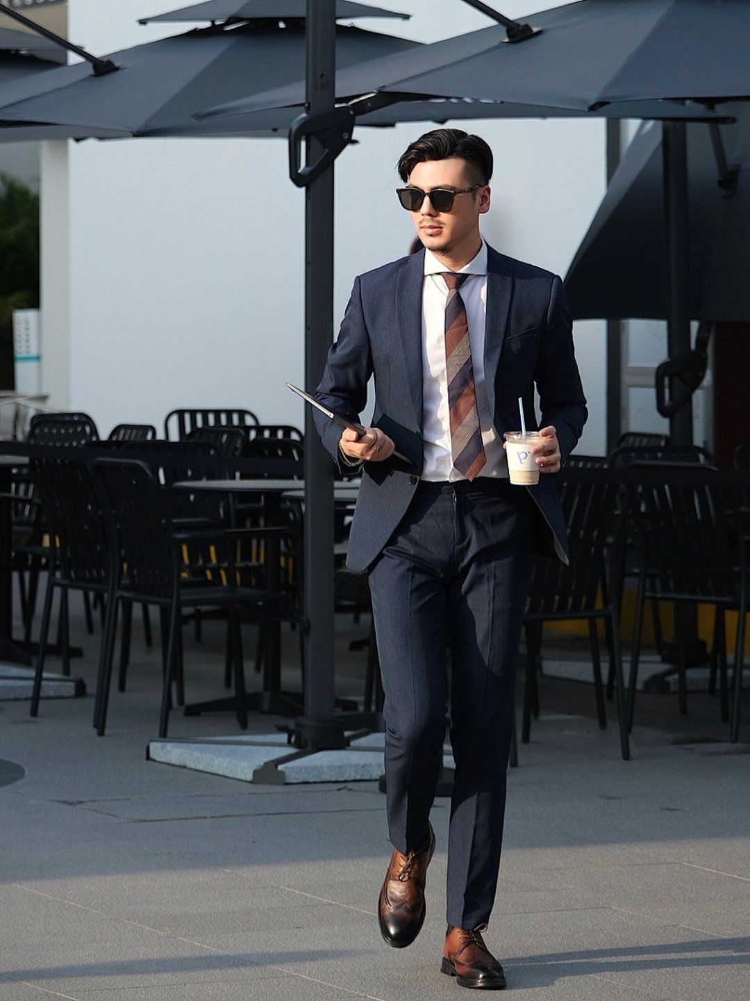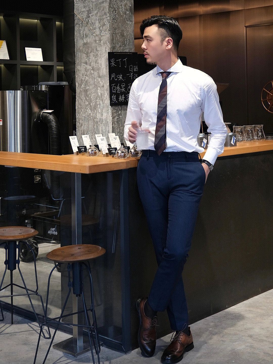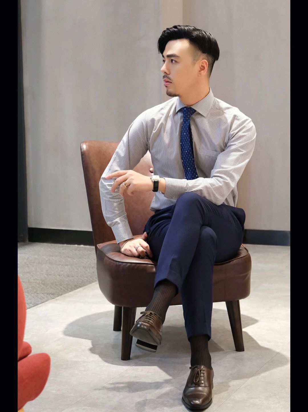 . 日常通勤正装穿搭的老师来lol . 🏷️藏青色西服套装 这套西装属于slim款,可以把身型衬的比较有型 暗色系也显得较沉稳 🏷️白色温莎领衬衫 这款是定制款,这个领型搭配👔领带会geng好看 白衬衫搭配西装yyds 🏷️棕色皮鞋👞 奥康的这款英伦风棕色皮鞋搭和今天的领带配色就hin搭 而且雕花设计鞋面就hin显绅士范 老师的职业,长期久站 非常需要一双舒适的皮鞋 🐷皮材质和橡胶鞋底,久...