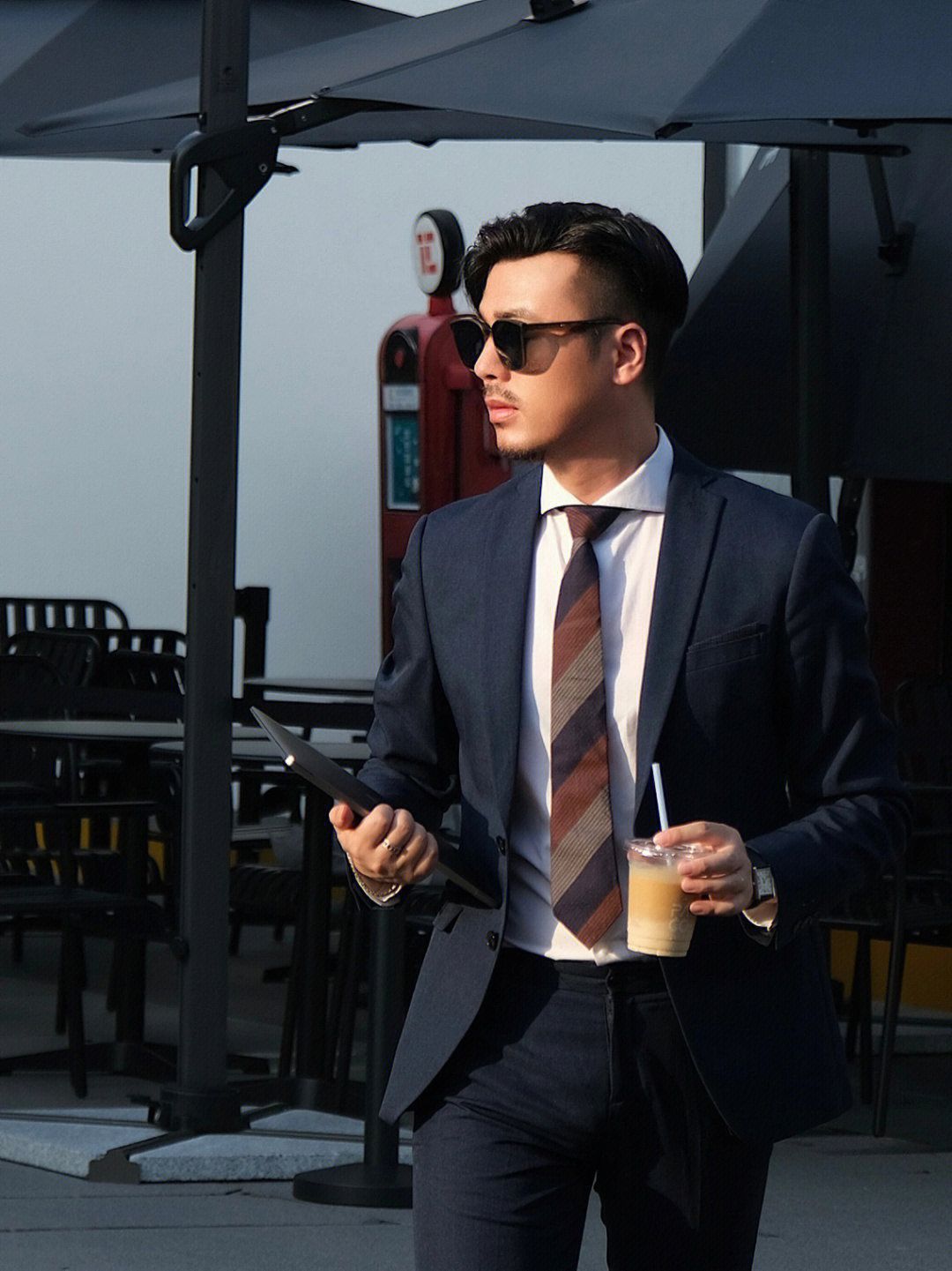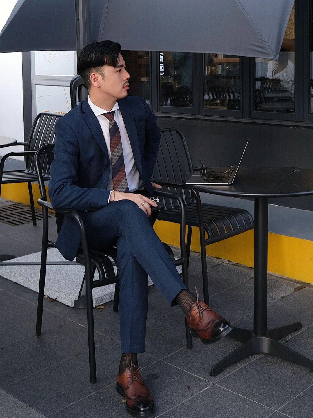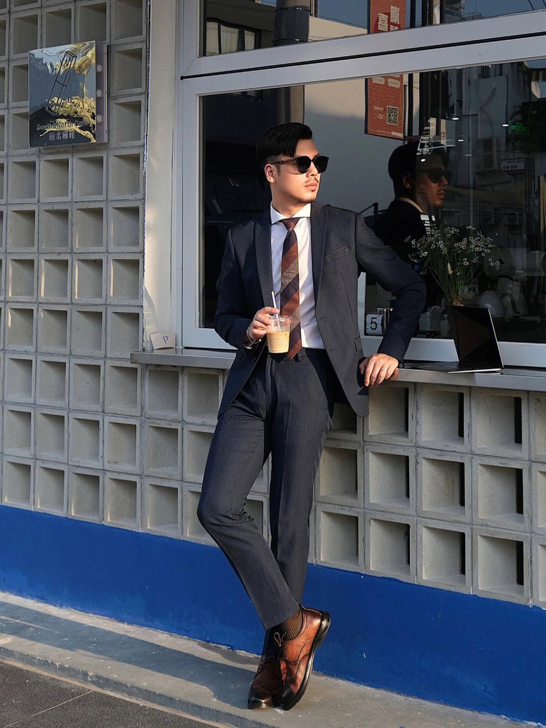 . 日常通勤正装穿搭的老师来lol . 🏷️藏青色西服套装 这套西装属于slim款,可以把身型衬的比较有型 暗色系也显得较沉稳 🏷️白色温莎领衬衫 这款是定制款,这个领型搭配👔领带会geng好看 白衬衫搭配西装yyds 🏷️棕色皮鞋👞 奥康的这款英伦风棕色皮鞋搭和今天的领带配色就hin搭 而且雕花设计鞋面就hin显绅士范 老师的职业,长期久站 非常需要一双舒适的皮鞋 🐷皮材质和橡胶鞋底,久...