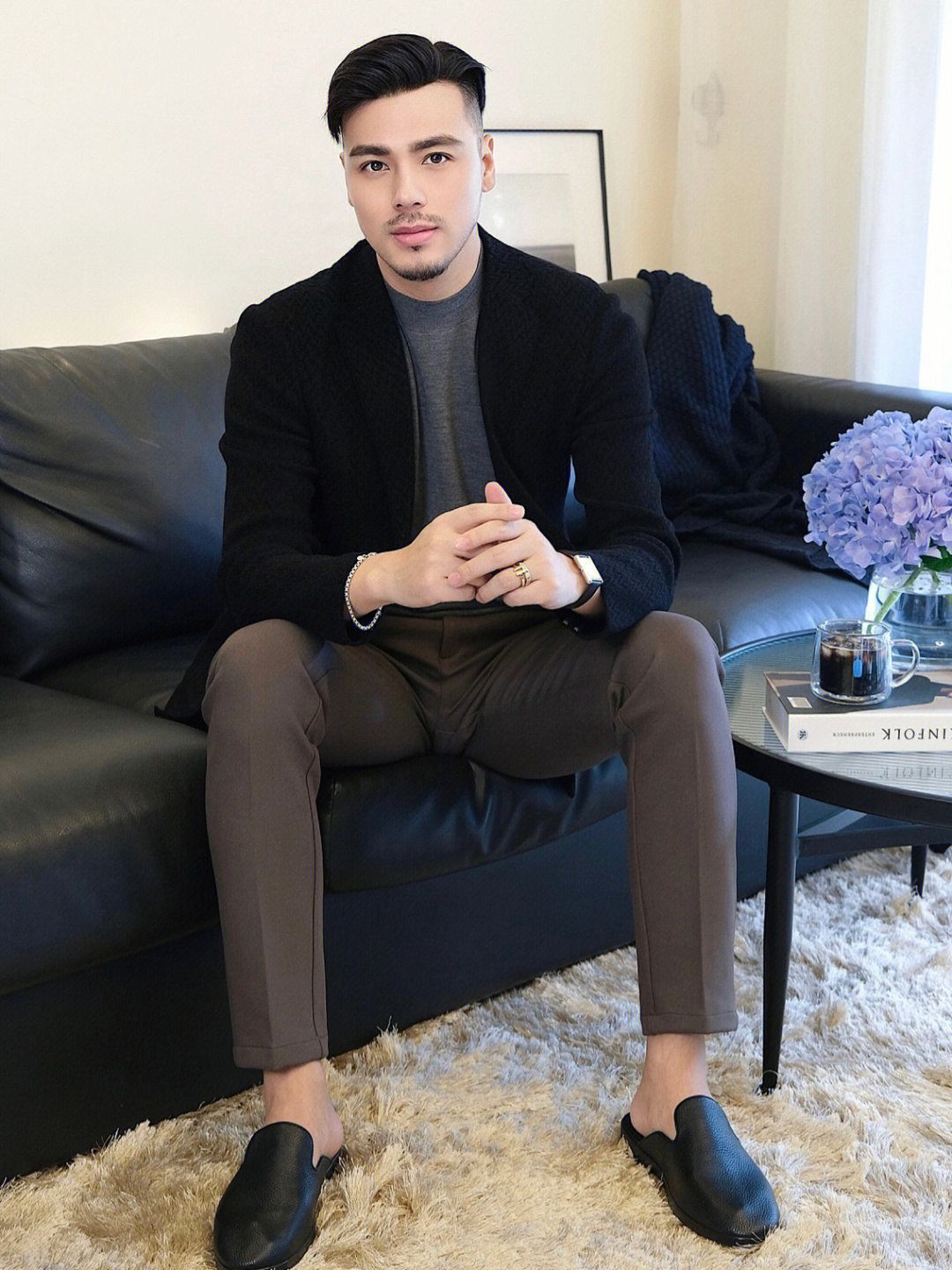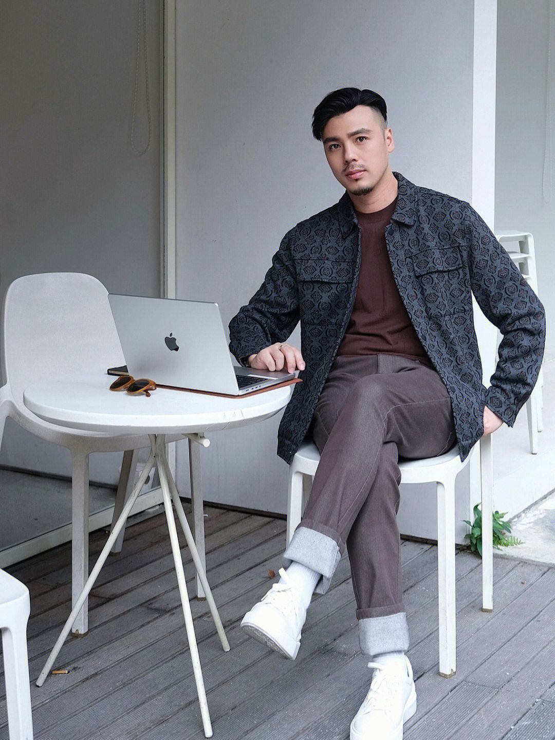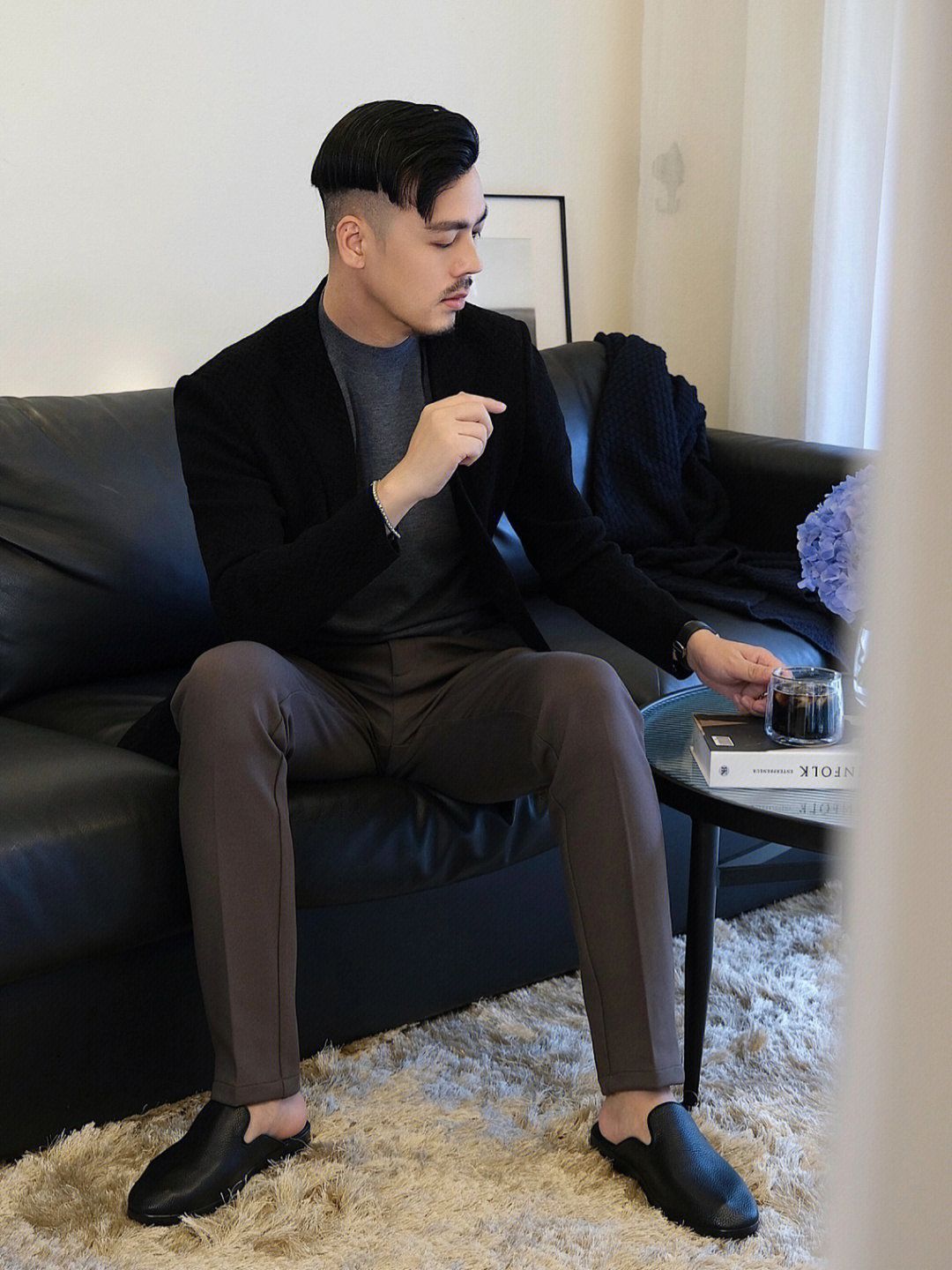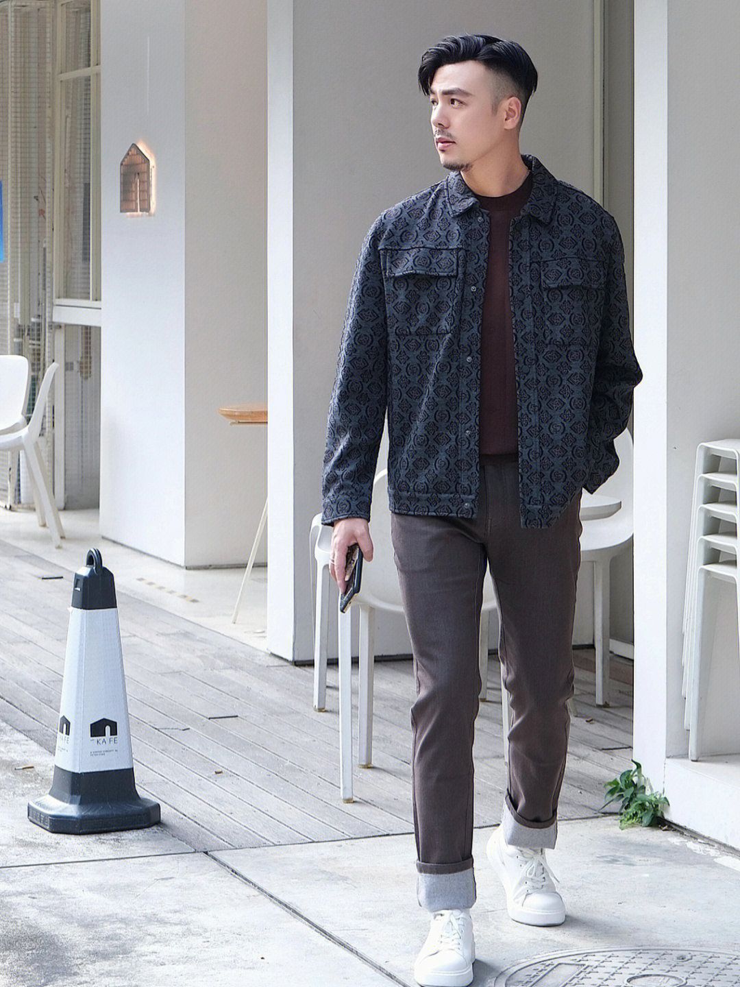 . 关于信手拈来的轻熟男穿搭 咱们还是有信心的 日常穿出高级感的ootd 要的就是搭配 正如👇 “往往高级的穿搭大都来源于低调的配色” 这2套DIDIBOY的outfit 就正好验证了这句话👏 𝐋𝐎𝐎𝐊𝟏 黑色菱纹针织西装 灰色半高领针织短袖 咖色西裤 黑色皮质拖鞋 𝐋𝐎𝐎𝐊𝟐 印花翻领夹克 🍫色针织短袖 咖色牛仔长裤 白色板鞋 ☑️ 轻松的配色加上熟中求稳的气质 让轻熟男着装显得geng加dec...