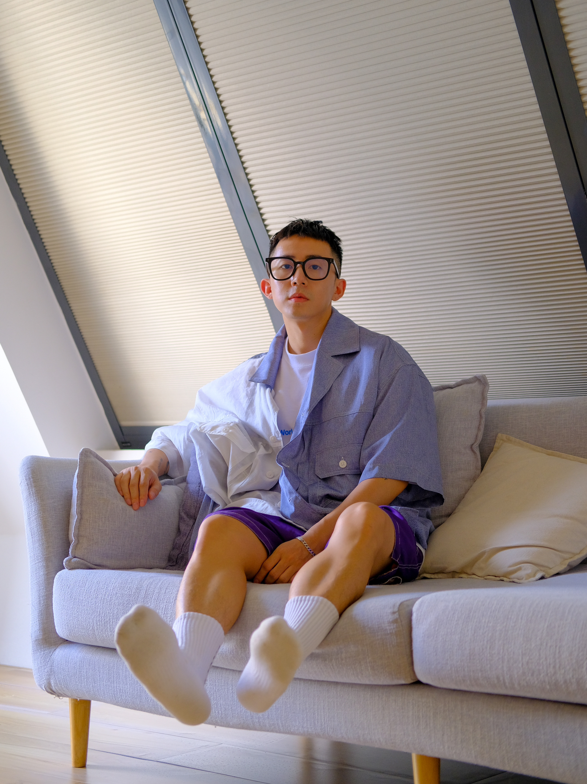 今天是装小nai狗的一天,带个眼镜真的温柔很多。像我这种圆圆脸就适合戴这种略方形的眼镜,不过呢这种眼镜是任何脸型都适合,带起来气质UPUP!就算不是近视,戴起来作为装饰也很OK! 衬衣是偏软的材质,为了让整体看起来不要太路人,搭配了一条比较跳跃的紫色短裤,其实跟整体还是比较搭的! - 今日穿搭|男生发型|送礼|假期旅行 广西北海|FENGCHENWANG|日系|cityboy