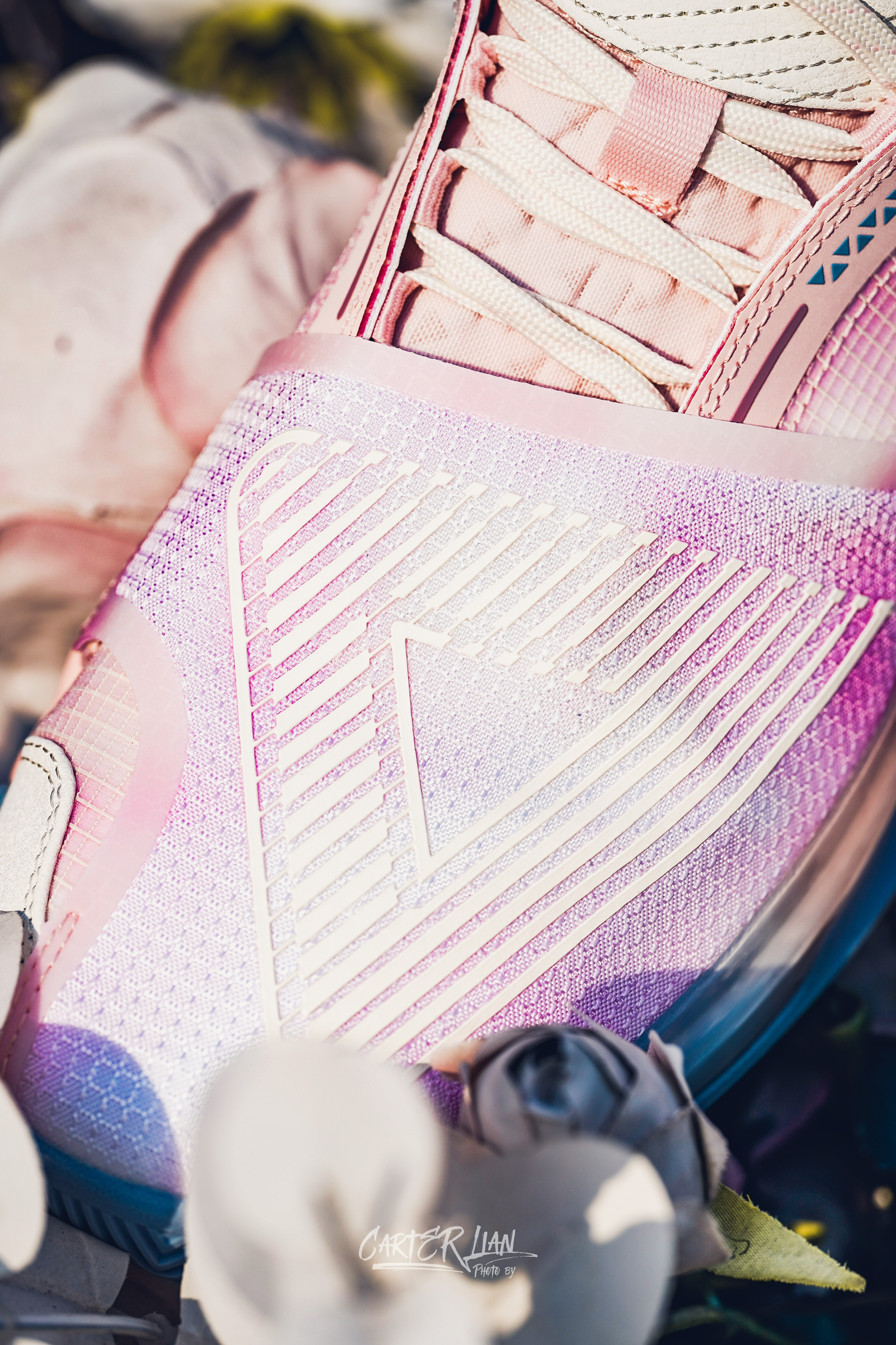 之前匹克已经给李月汝推出了3D打印的态极大三角而这次推出的云之梦,设计灵感来自于李月汝出国征战,作为女篮球员背负使命和理想到国际赛场打拼,希望她能越攀越高,一直抵达云端实现梦想。 整体细节👀:整体鞋面上采用了扎染色来表达柔软的天空。渐变的TPU条和鞋面的扎染配色真的非常的好看。后跟织唛上有ATTITUDE的字样。 科技配置:鞋面搭配前掌Surface包裹系统,加上鞋面这块三角镂空的支持不强,降...