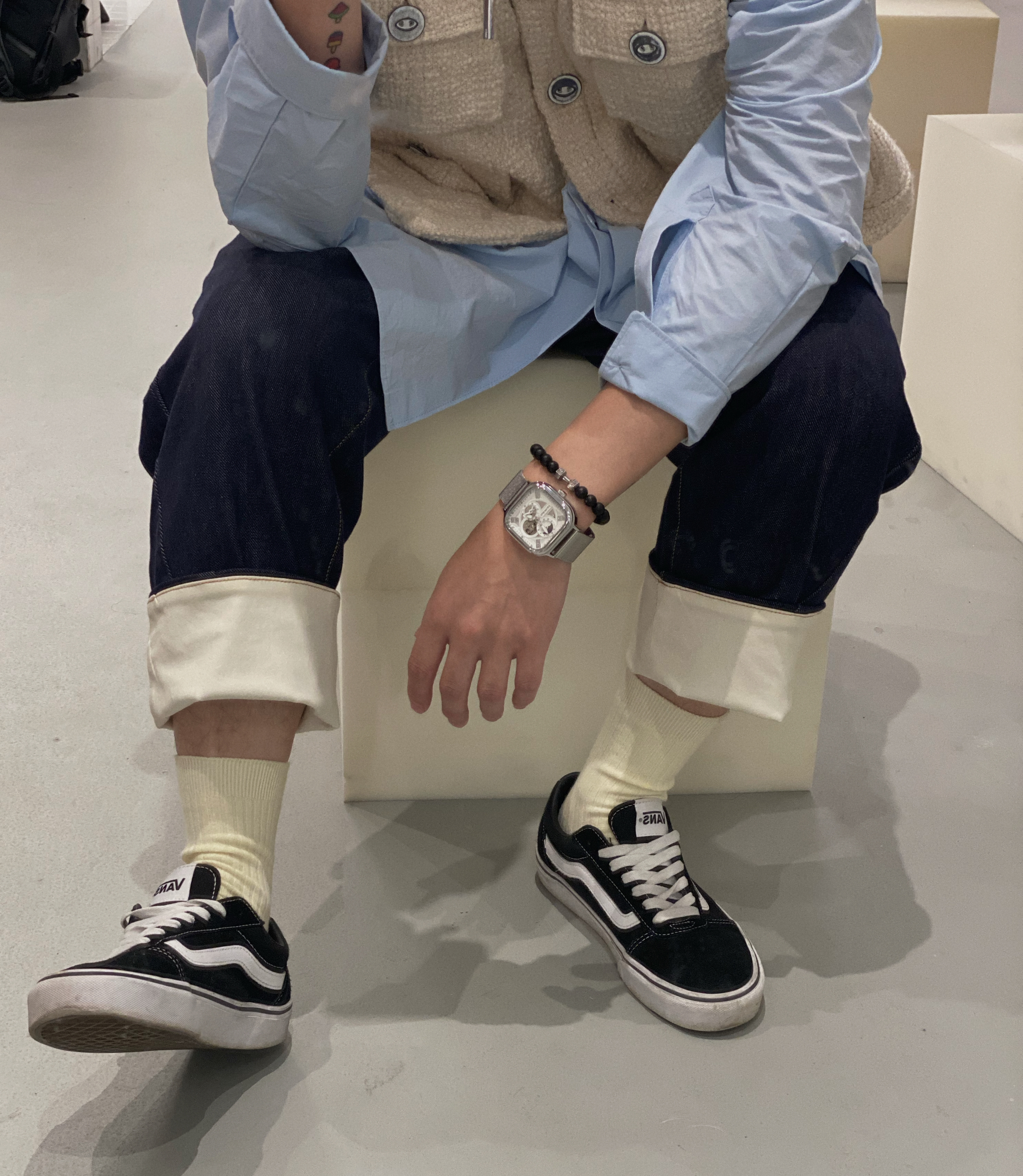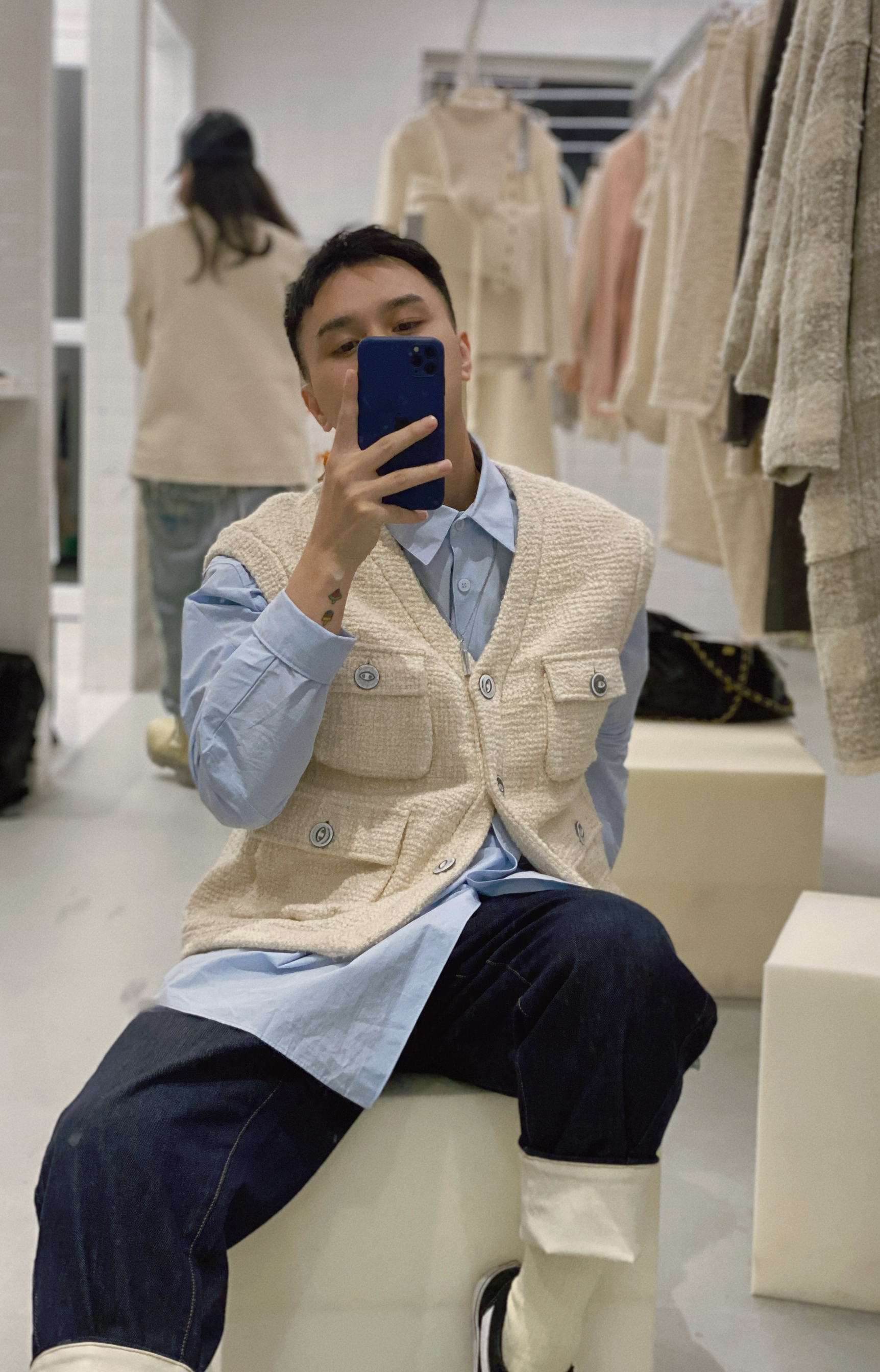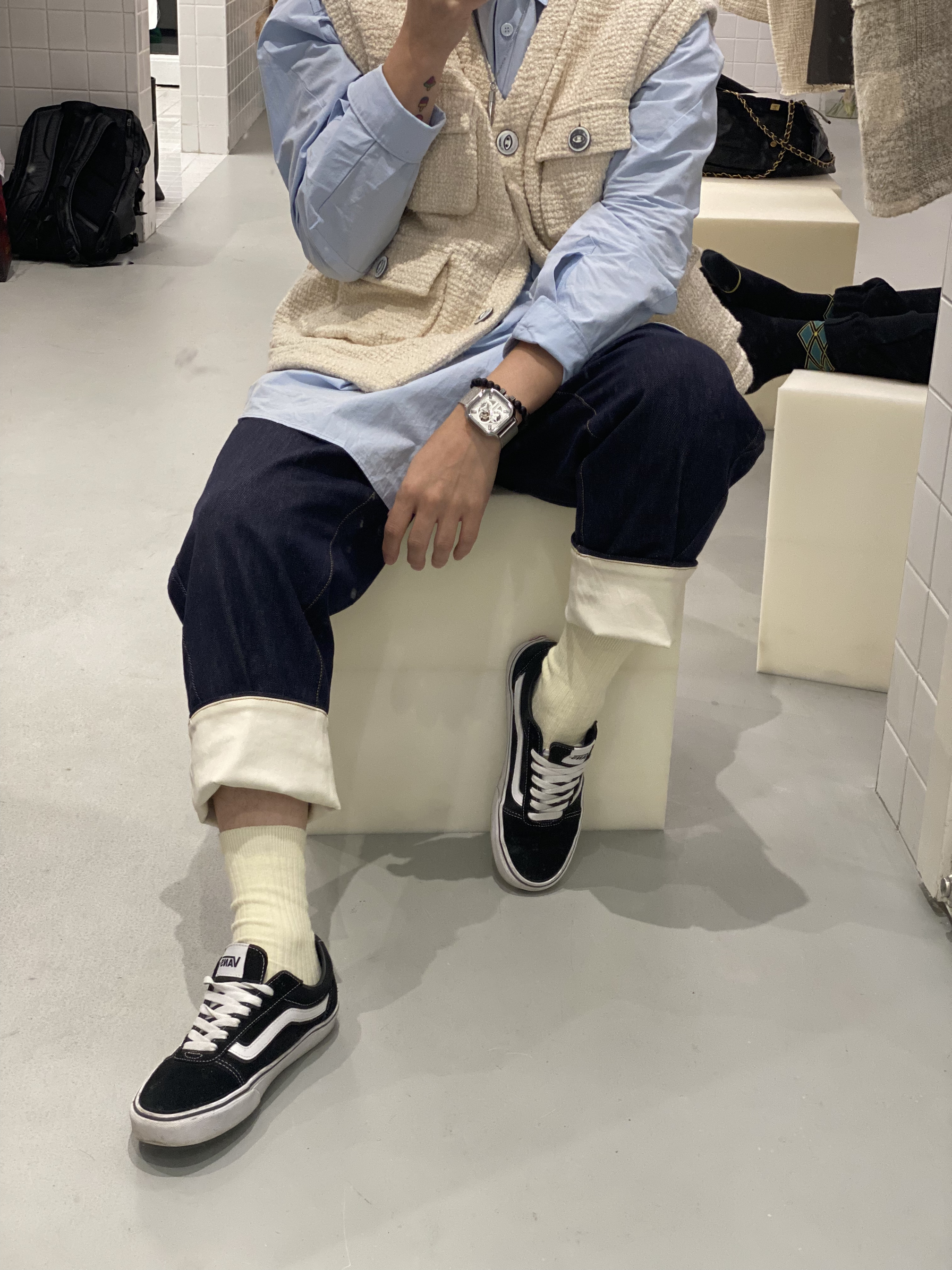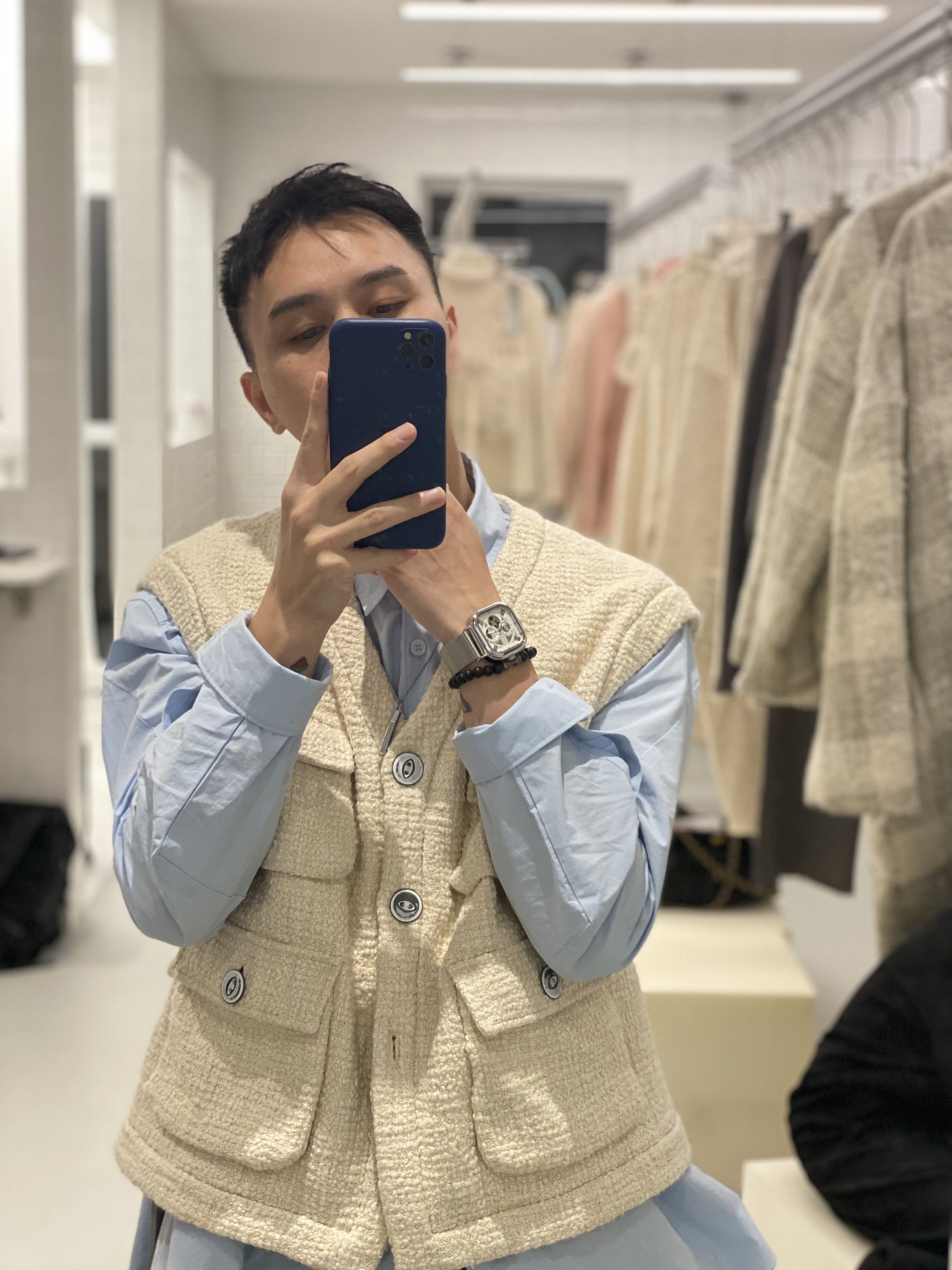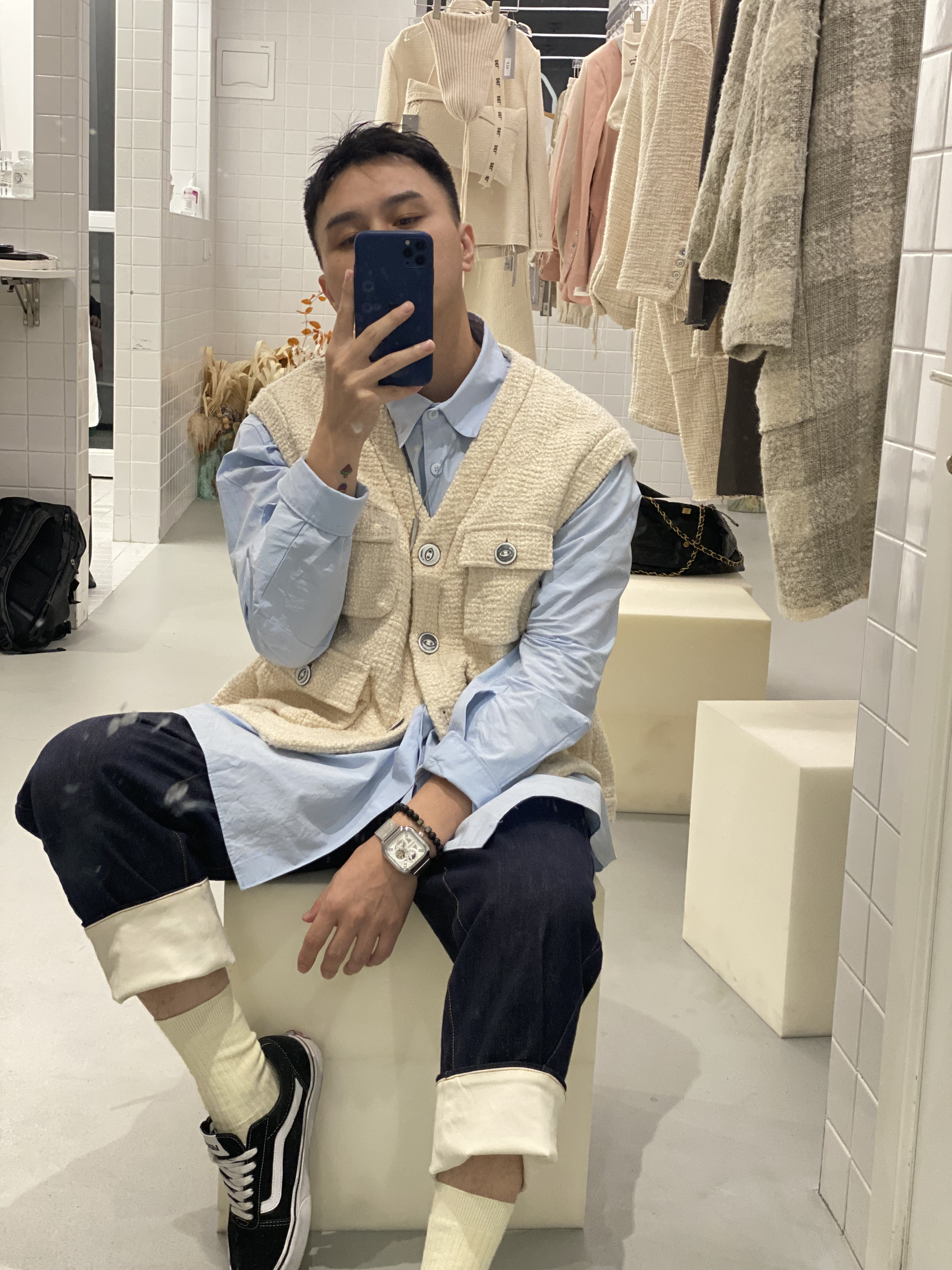 👔:LabelDel. 👔:Beeandee 👖:Trendiano ⌚️:马克华菲 超级好看的一款马甲· 搭配淡蓝色衬衫· 牛仔裤· 早秋穿搭马甲必备款· 每一款都是万能搭配款🔚