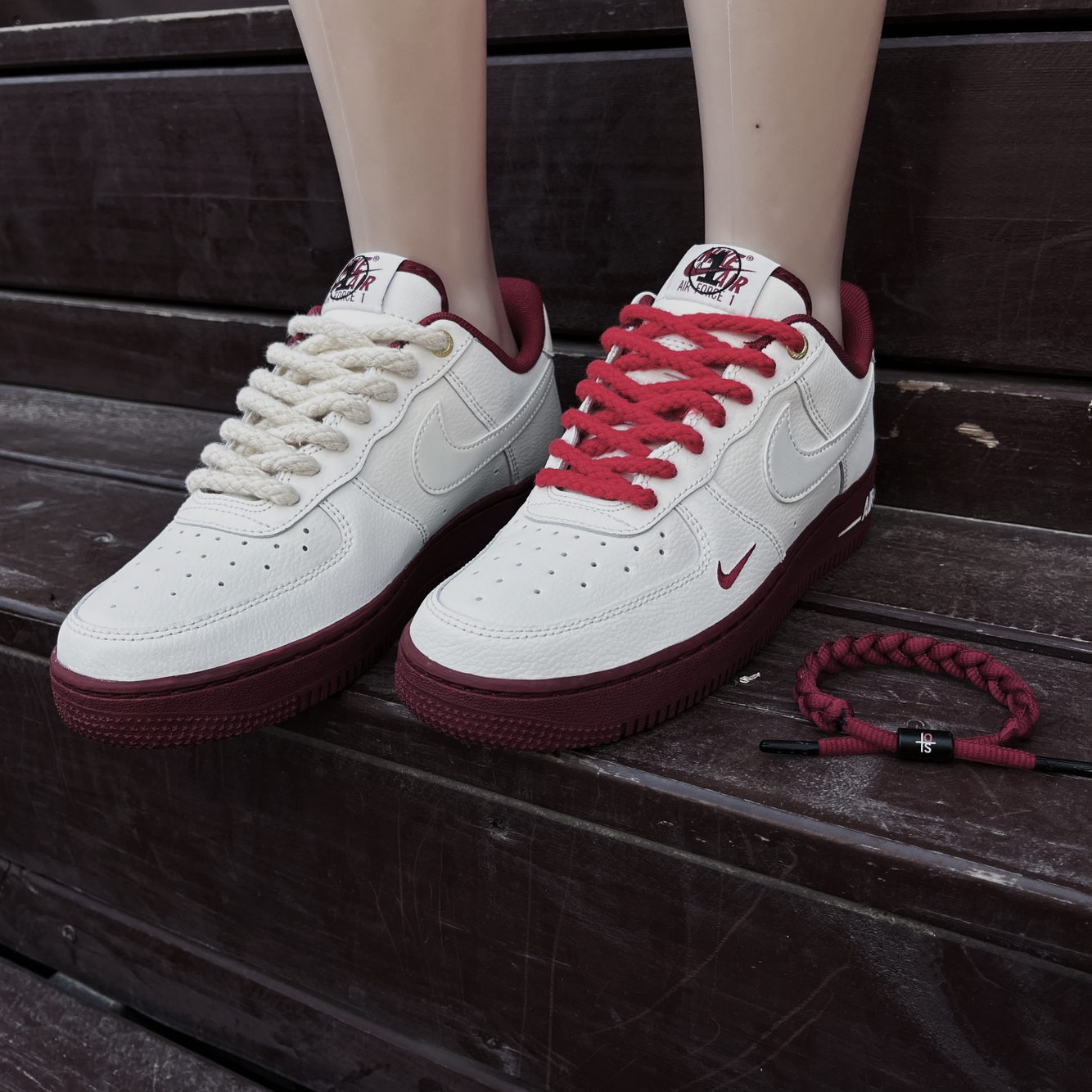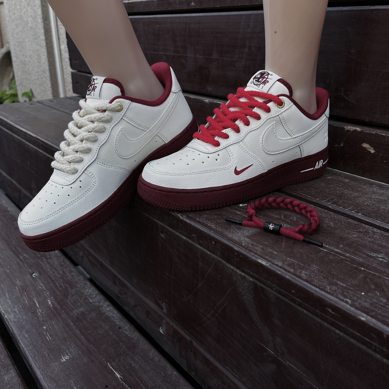 鞋带店铺:IOTS 选来选去决定入手这一款米白红色,很喜欢鞋跟外侧的白线AIR标记,纯纯点睛之笔!