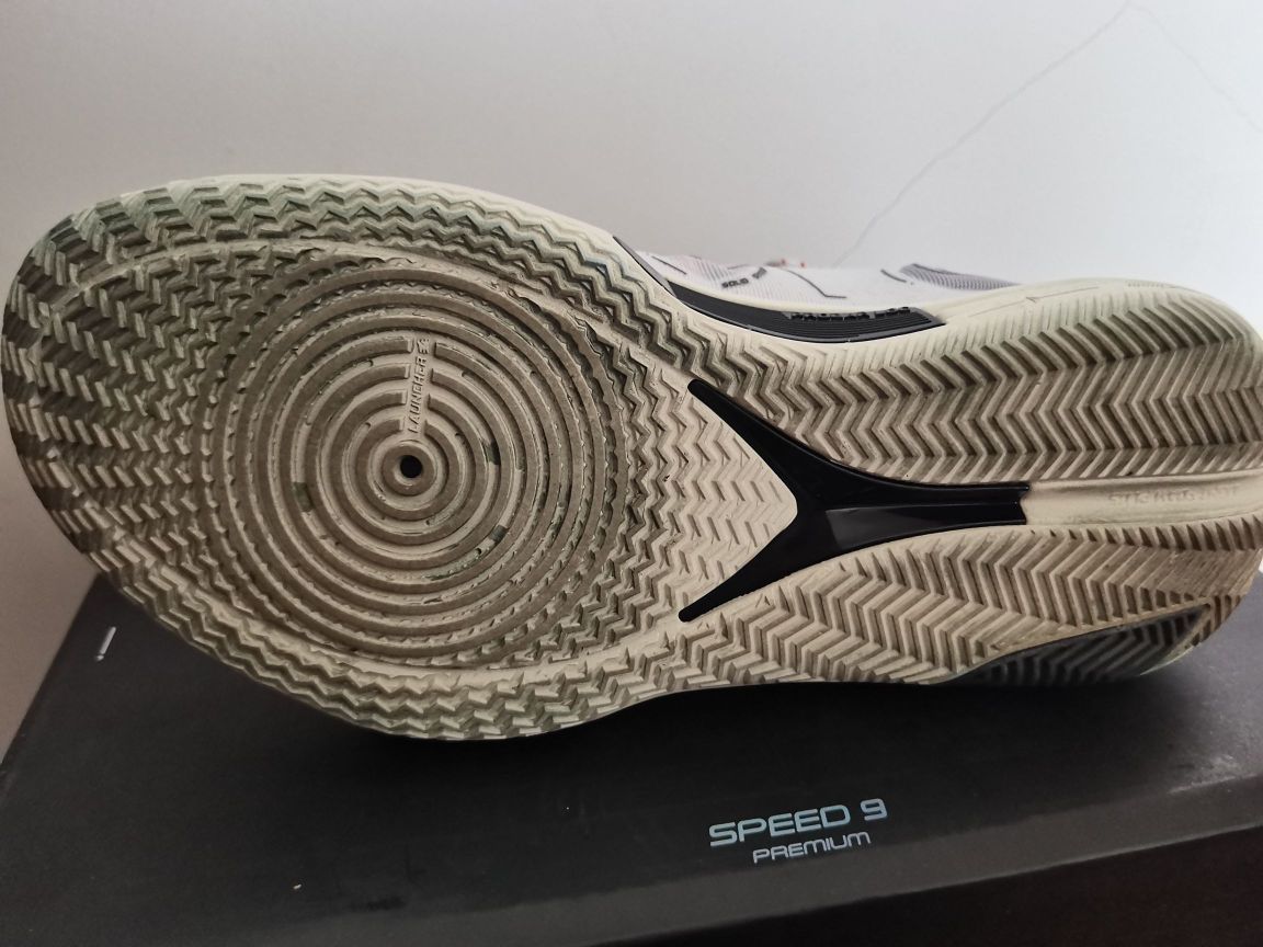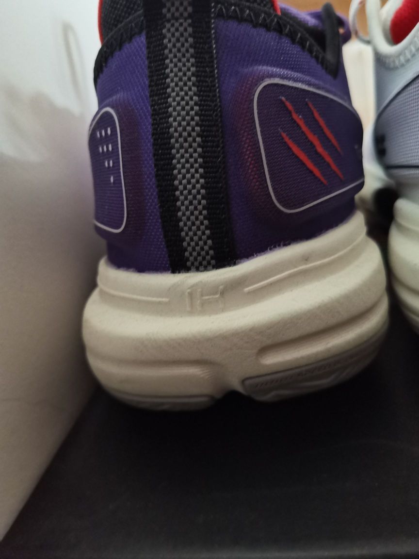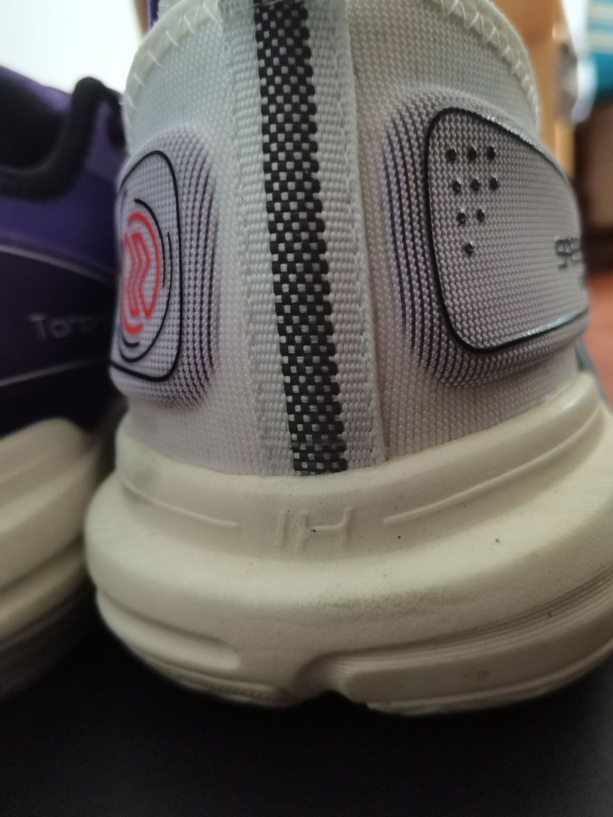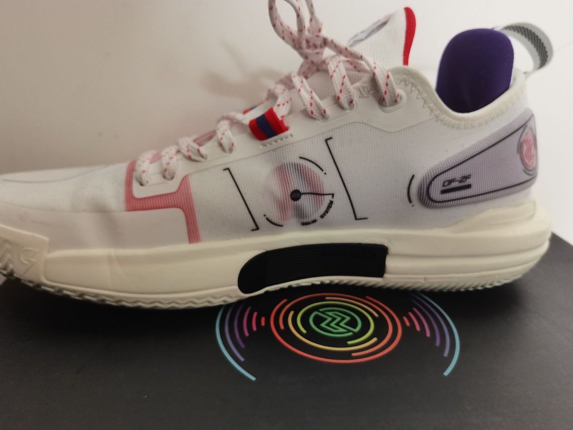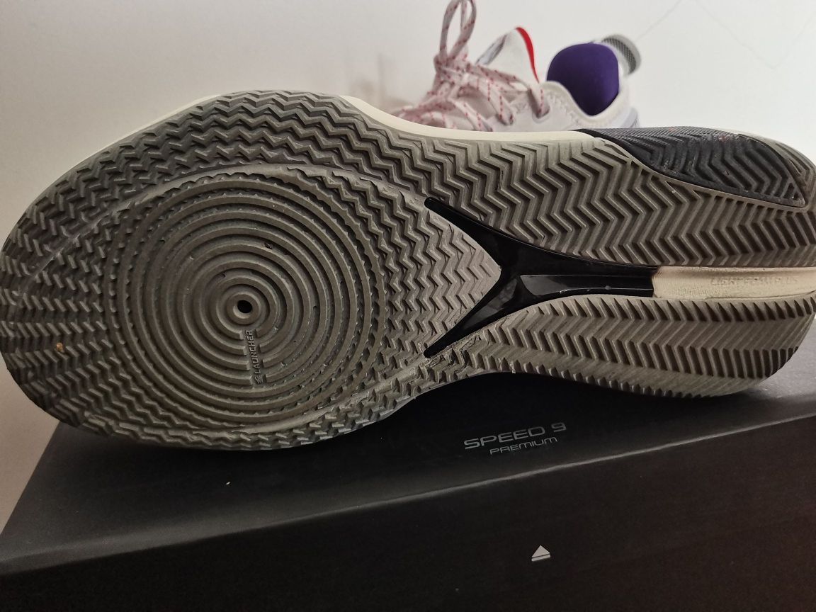 关于闪击9,我想谈谈我的看法 1⃣颜值,这个方面见仁见智,有人说斜着放李宁标看着像安踏标,但我认为这么放很有速度感,如果再加上鸳鸯的组合,穿上它,那你就是野球场最靓的仔。 2⃣重量,看着好像很笨重,但41才310多克,轻量化非常优秀。 3⃣中底,我17255kg,前掌䨻反馈不明显,后掌lightformplus有一定的缓震,中心非常低,加上铲形tpu,有推进力,启动很快,突破感觉很好,但大体重慎选...