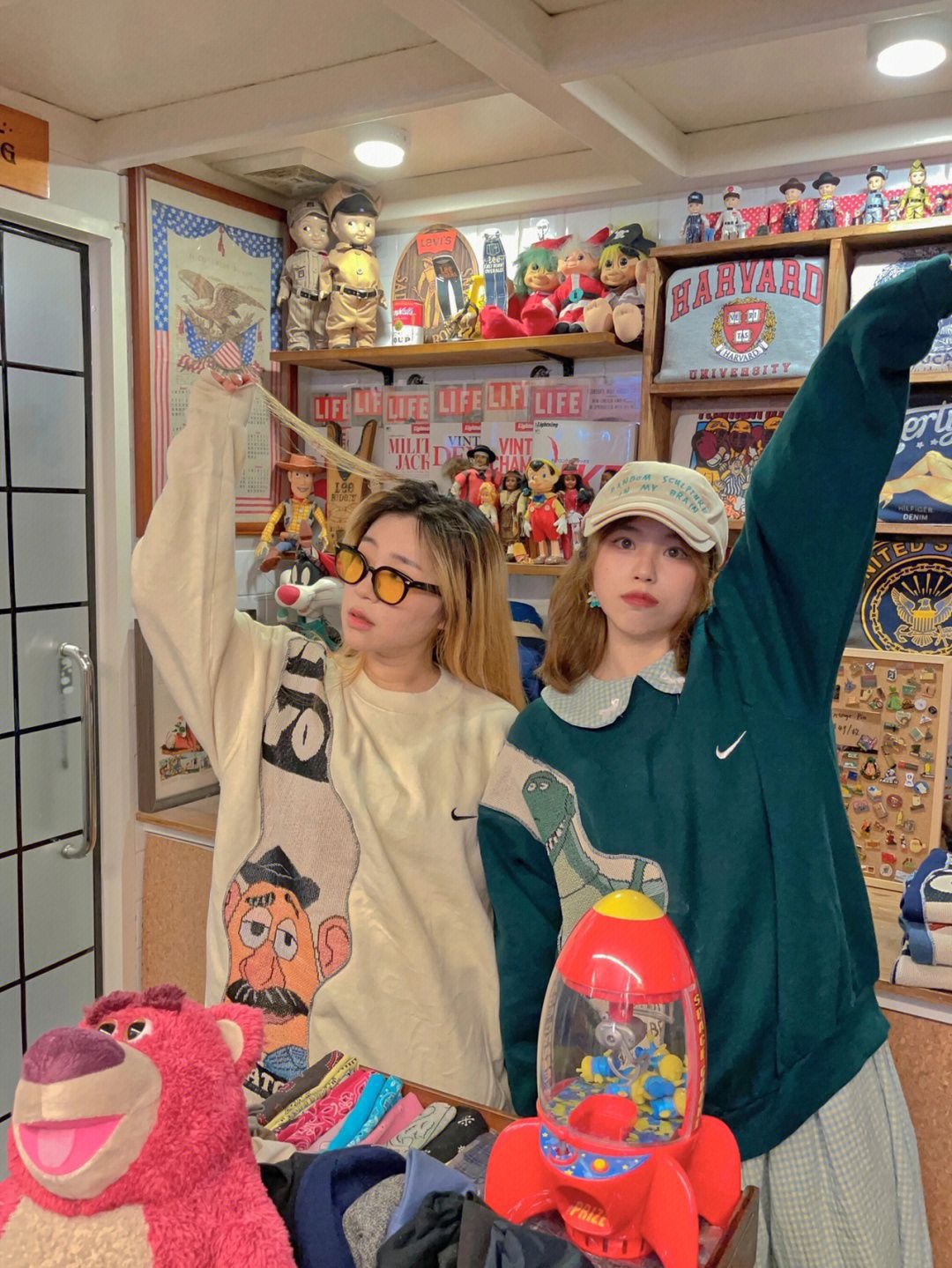 #看见城市的文艺生活 #笔记灵感 #两只仙女的探店 #上海探店 💥这次的探店宝称号让给王嘉尔了! 💥这家藏在上海弄堂里的古着店真的太好逛了! 🚀发现了Nike和玩具总动员的Remake真的太🉑️了 🚀有巴斯、草莓熊、叉叉、抱抱龙、胡迪、三眼仔 ✨这种抠洞每一件都很特别,而且颜色超搭! 我们还在店里发现不仅有衣服的remake,还有包包和玩偶! 整个都超酷的🆒,用牛仔裤做了一个菲力猫的帆布包...