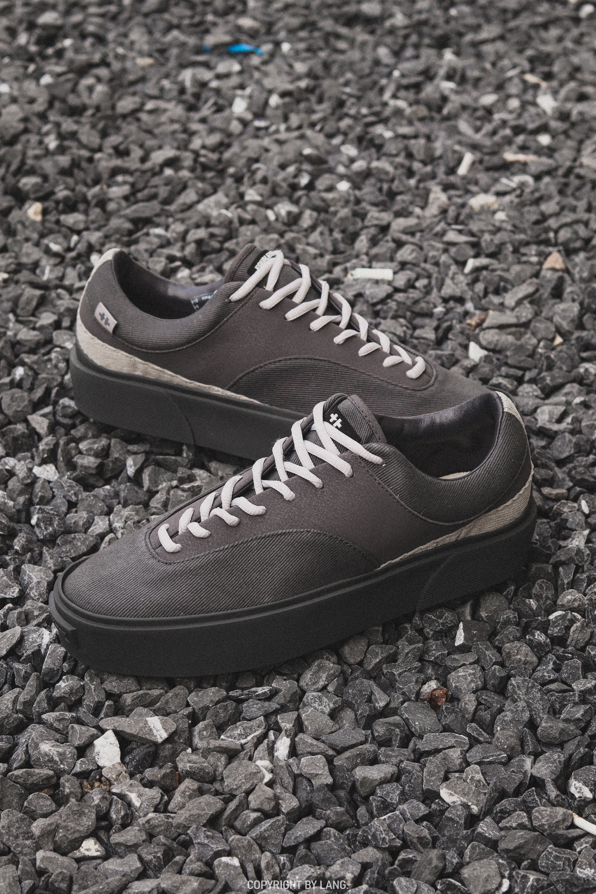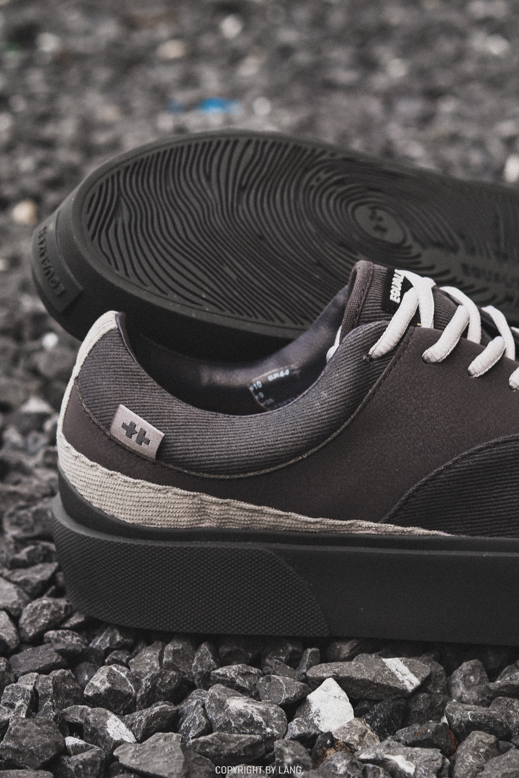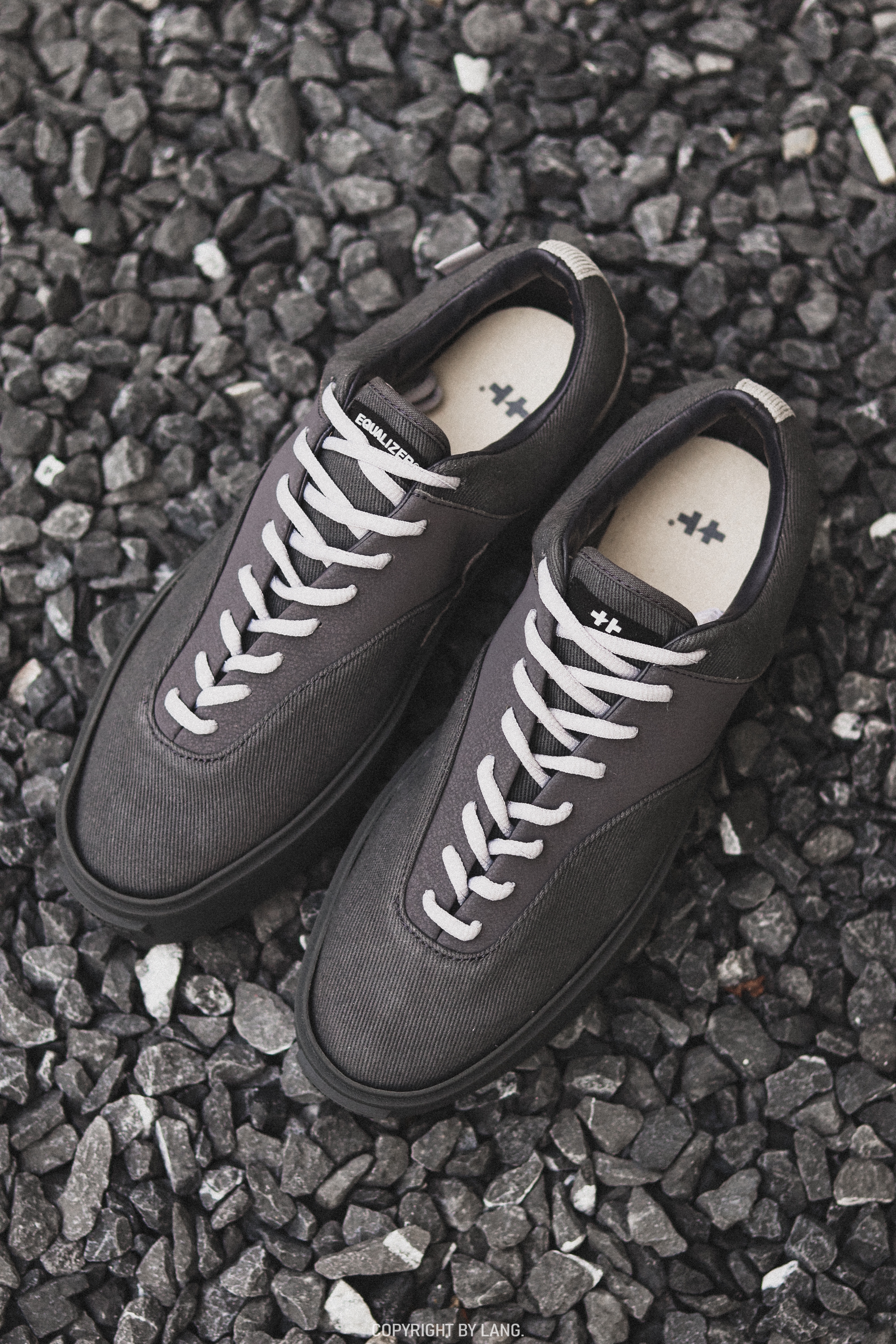 给鞋拍个照|EQUALIZER FAULT 黑石 如果你的穿搭是这种暗黑风的,那这双板鞋会是一个很好的搭配单品! 草牌的设计确实是比较有个性的,这点就很加分,这双FAULT我也是入了很多配色,各种材质,最经典还是帆布,本来纯黑觉得一般,但是越看越觉得好看,终于拿下了! 基本上全鞋身都是这种深灰色的,只有鞋带和鞋后跟一块是浅灰色,让看似暗淡的深灰色多了点不同的色彩,这个黑还是挺高级的,脚感不错,鞋型...
