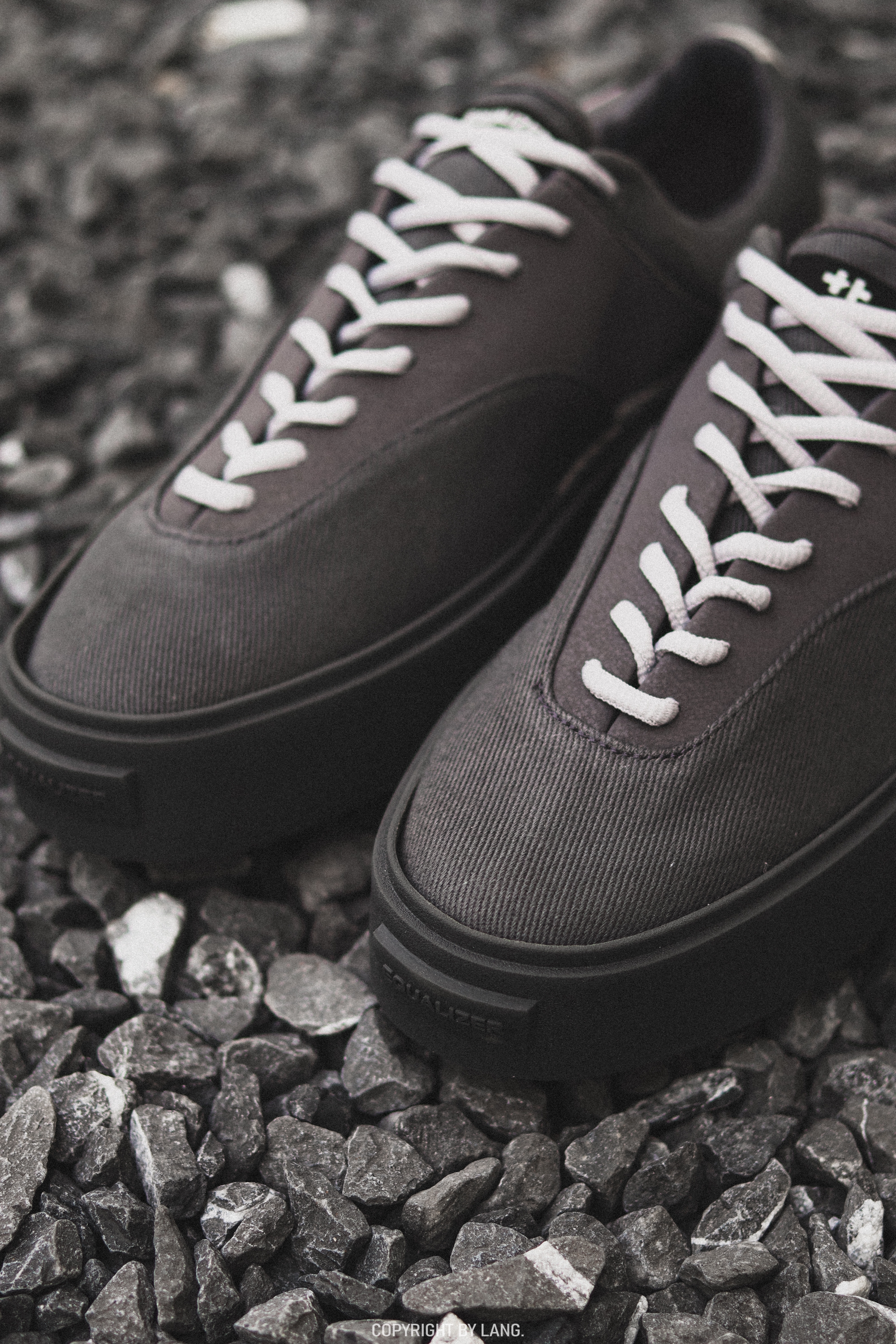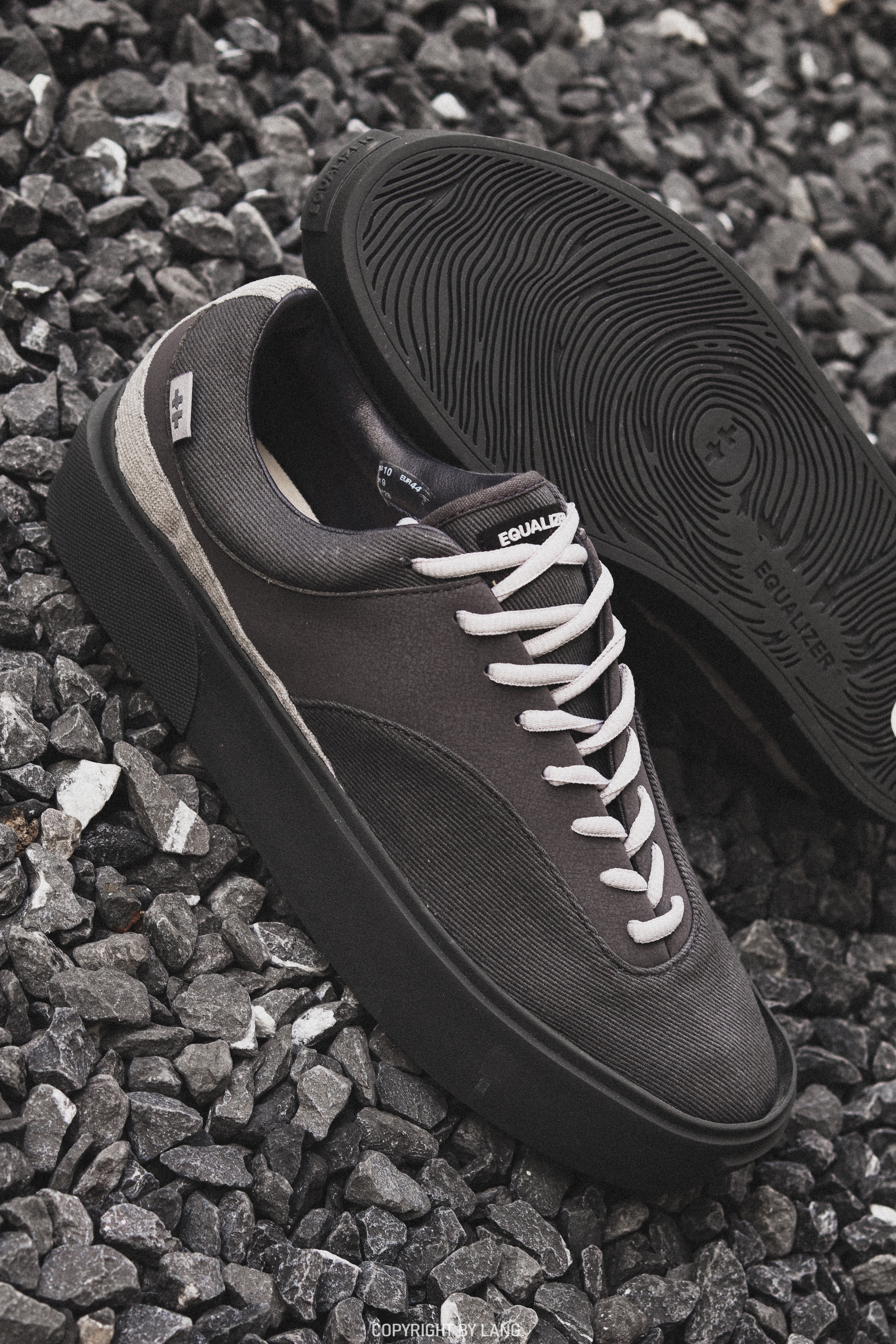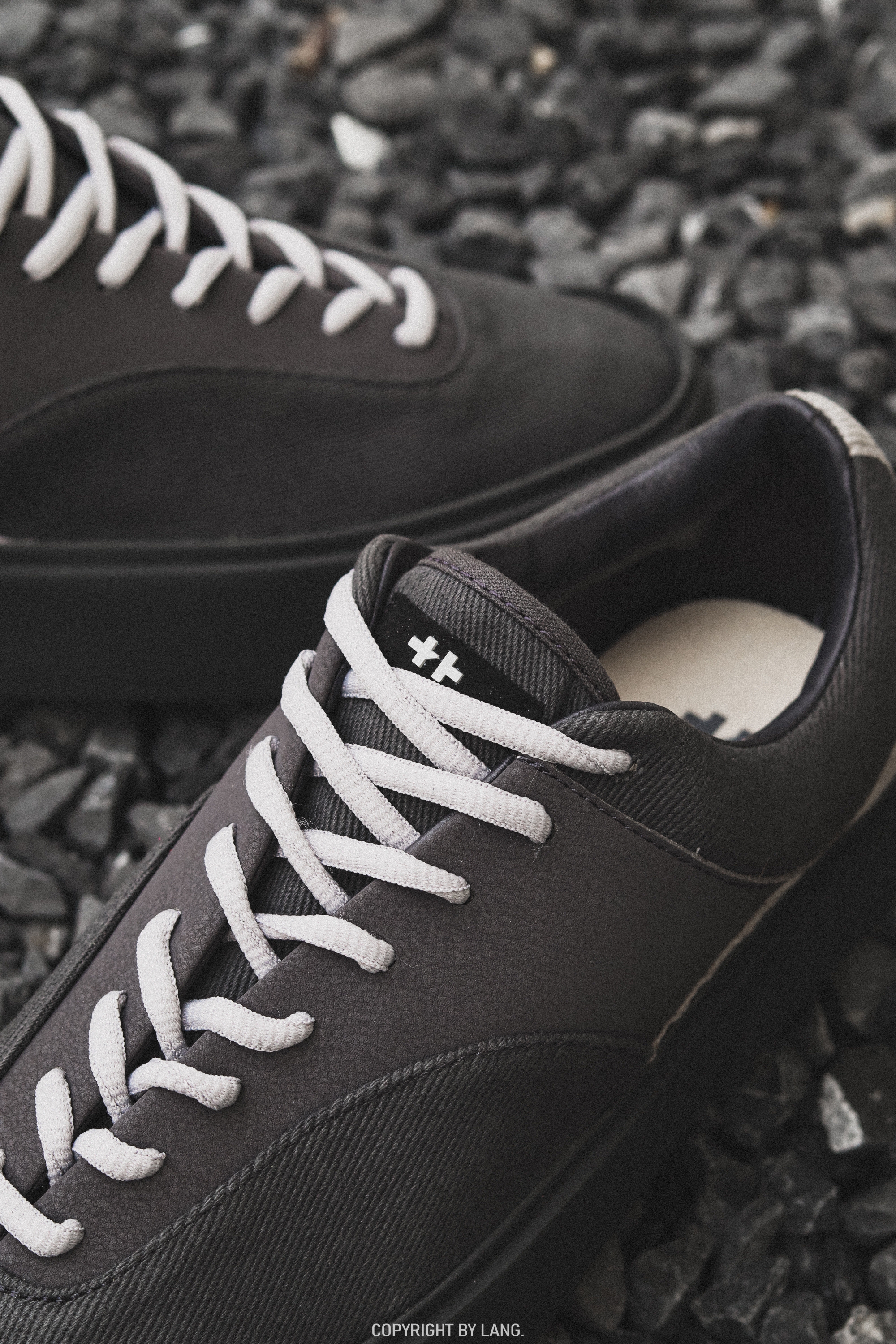 给鞋拍个照|EQUALIZER FAULT 黑石 如果你的穿搭是这种暗黑风的,那这双板鞋会是一个很好的搭配单品! 草牌的设计确实是比较有个性的,这点就很加分,这双FAULT我也是入了很多配色,各种材质,最经典还是帆布,本来纯黑觉得一般,但是越看越觉得好看,终于拿下了! 基本上全鞋身都是这种深灰色的,只有鞋带和鞋后跟一块是浅灰色,让看似暗淡的深灰色多了点不同的色彩,这个黑还是挺高级的,脚感不错,鞋型...