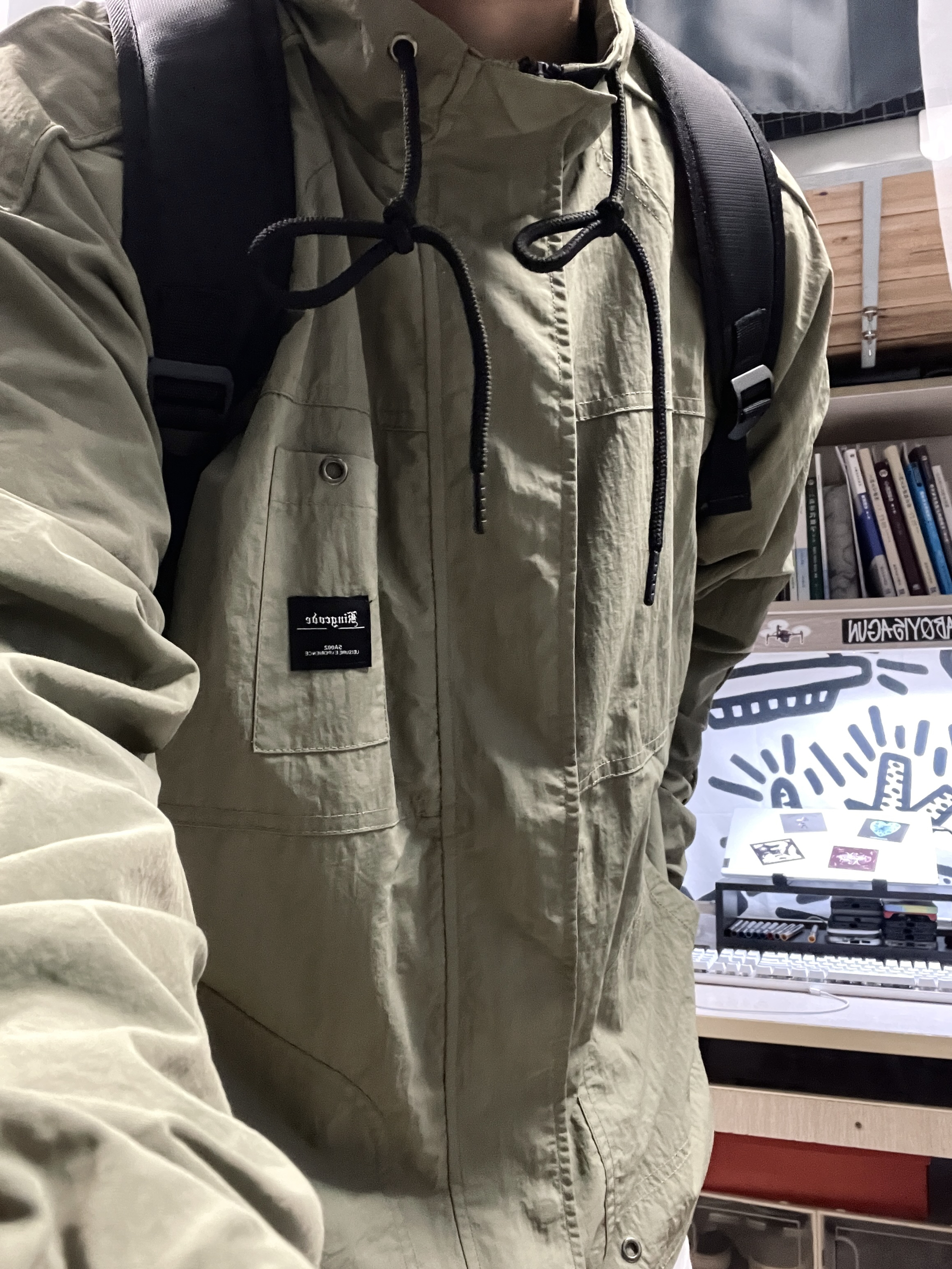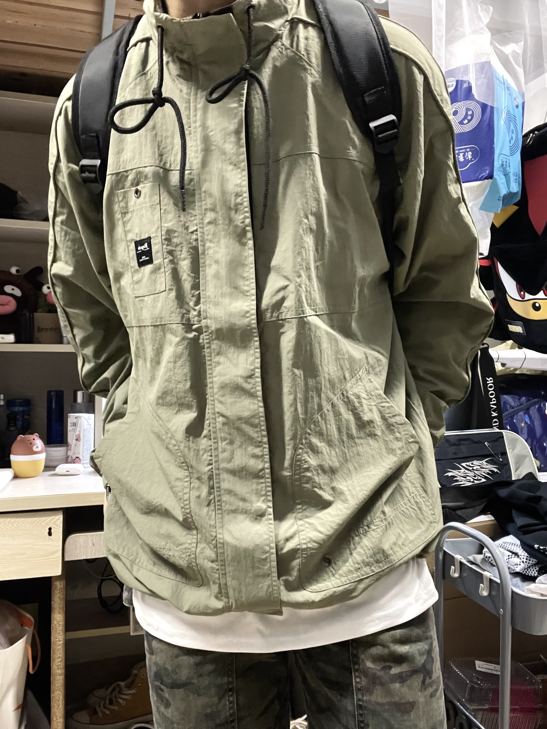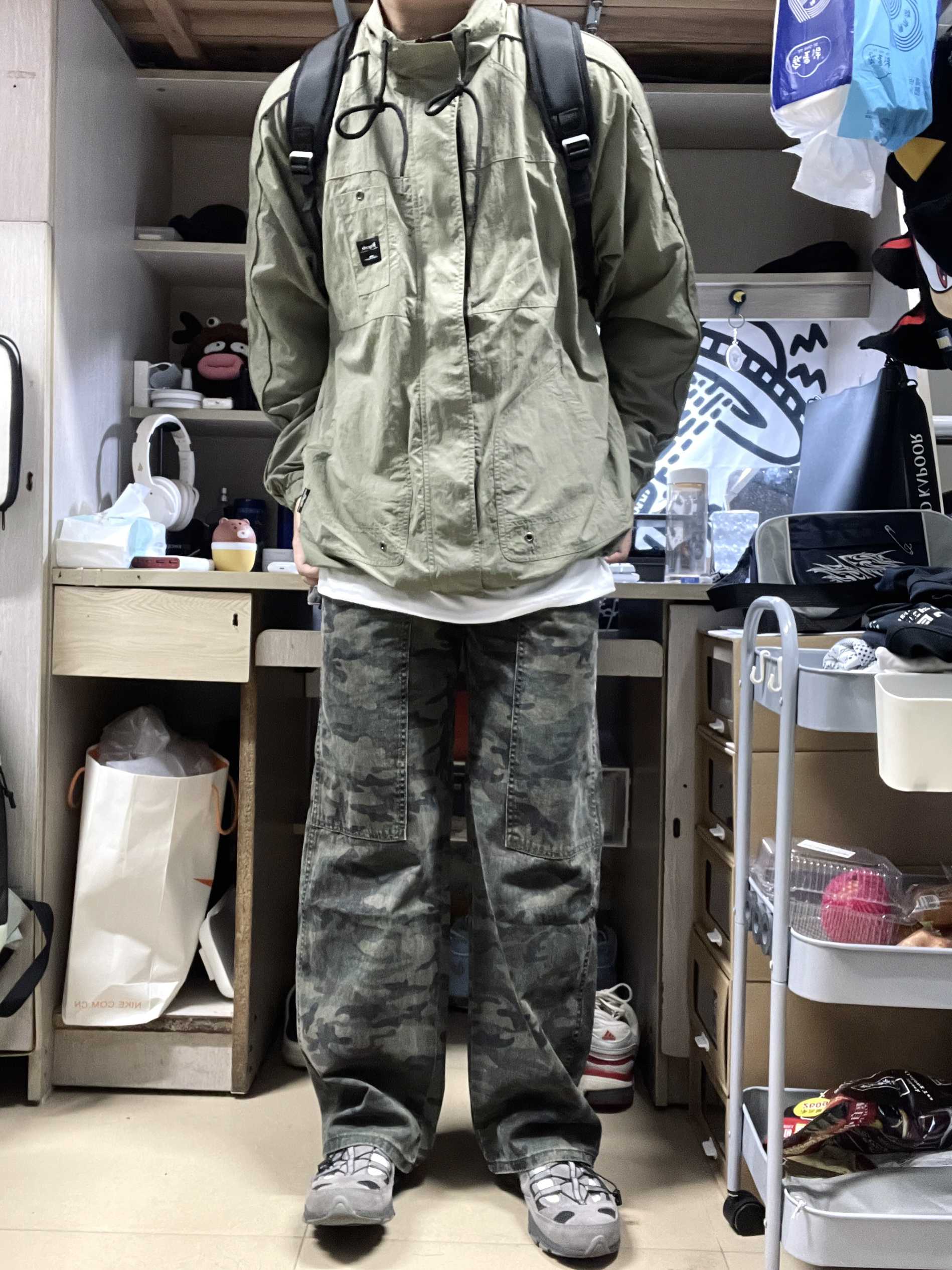 出去玩当然要穿轻薄有型的冲锋衣啦⭐️ 军绿色冲锋衣版型真的很好!!因为不是亮绿色所以黄黑皮也可以驾驭的很帅‼️ 内搭白t可以丰富穿搭的层次感噢🤩 迷彩裤今年真的非常流行 这条料子很厚实 稍微水洗的迷彩更帅了🥵 来不及说了!穿上这套跟我去爬山🏃