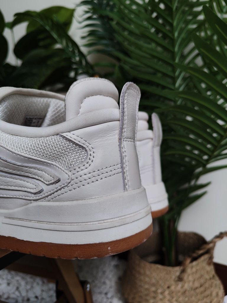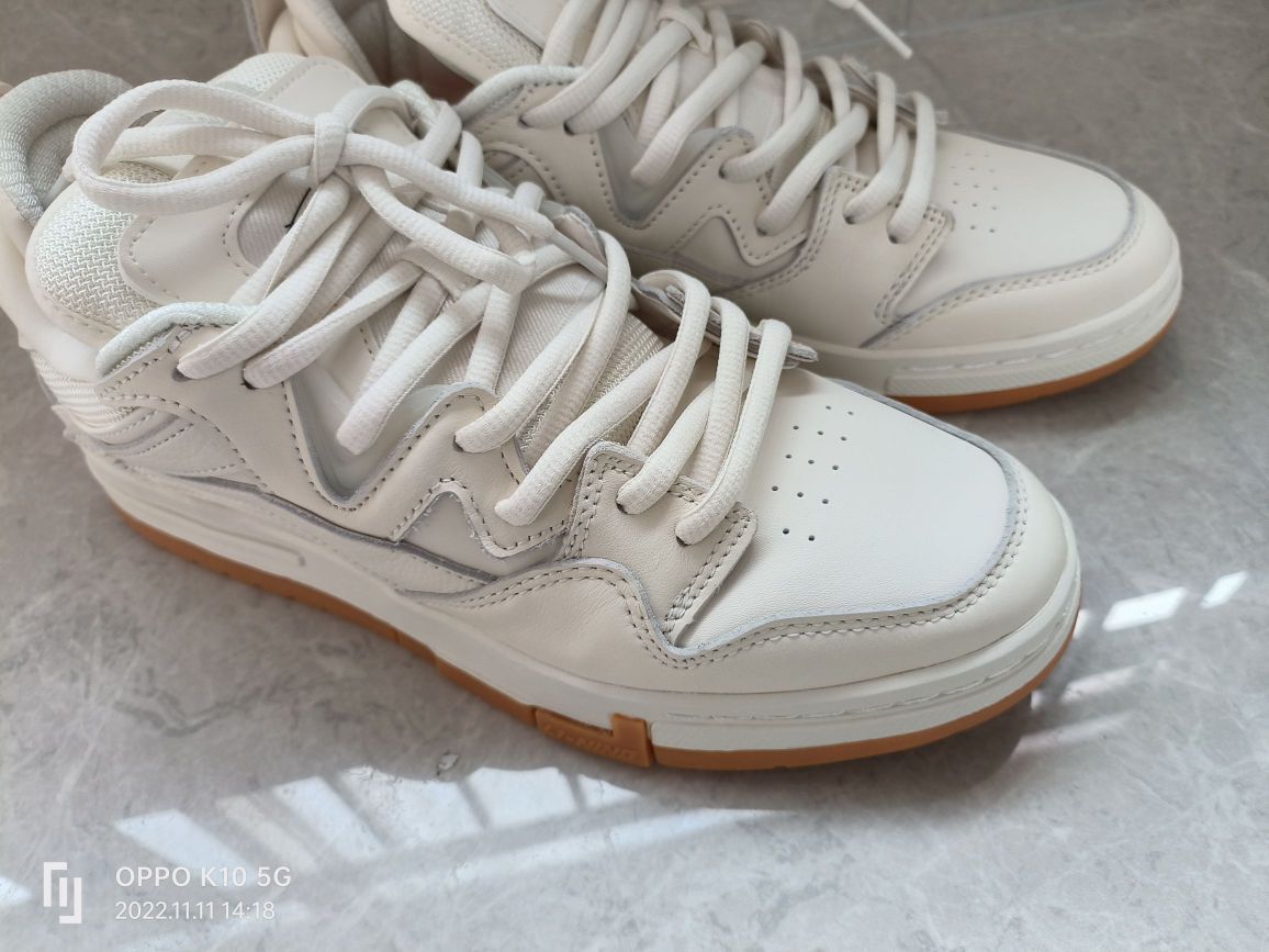 这双鞋整体采用的是米白皮质配色,搭配着生胶大底,米白色呢比纯白更柔和更百搭, 大底淡淡的生胶的黄色把整体点缀的不是过于单调,牛皮革与合成革混合而成的鞋身,非常有质感, 半圆形的鞋带具有一定厚度感,在俯视视角上的重要性还是比较高的。 双鞋舌便于隐藏鞋带,加厚版鞋舌饱满感十足,后跟加固片更是整双鞋的点睛之笔,相当百搭的一款好鞋,很适合vibe风和高...