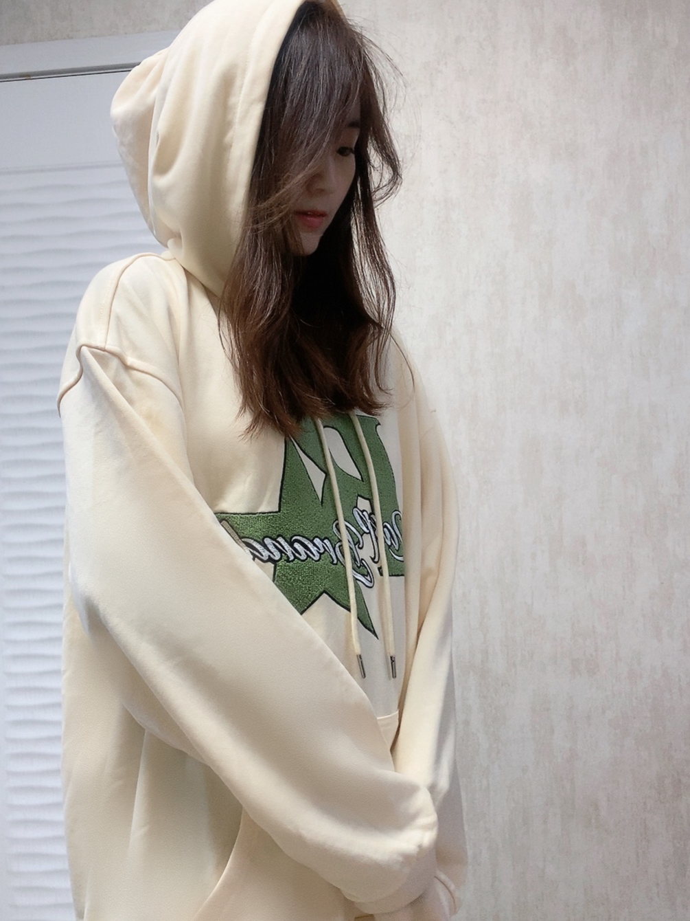 今年很爱的一个连帽卫衣,印花简单好看! 又舒服又好看,完全是我的菜! 版型很好不会软塌塌的,显得腿又细又直,我是梨形身材的,买的l码大一号,完全遮住了屁股!特别特别显瘦!真的显瘦top1 真的🉑️