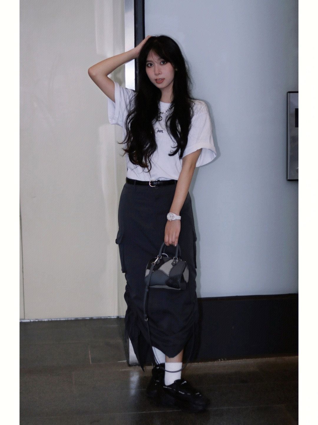 Hello~这里是梁梁! 放假当然怎么舒服怎么穿~ 还是照旧美式复古工装裙+T恤 衣/Coffee Dope 鞋/黛西法罗 包/Shapeshiftland #美式复古 #Ootd #夏日穿搭 #belle #T恤 #显瘦 #Remake