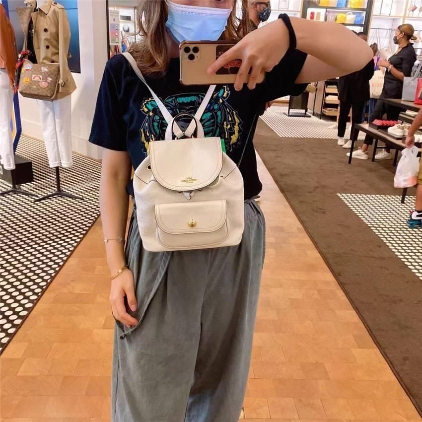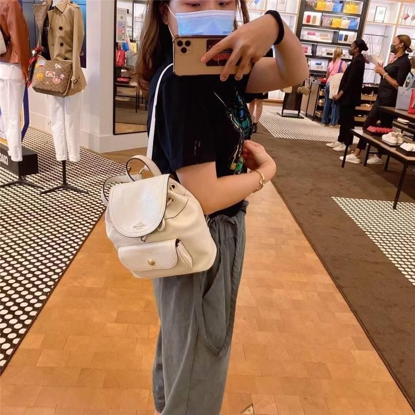 🌙Coach这个系列我可以吹爆,尺寸:21*11cm,自重很轻,我的身高是164cm,背着很🉑️,容量也不错,放下一把小阳伞都没问题 🌙真的很久都没见他们家这么好看的双肩包了,配色是纯白,真的有够经典的,母女包都可以诶 🌙细节的表现也很优秀,抽绳搭配磁扣的开口,又安全又方便,长肩带是有孔位,可以调节长短的