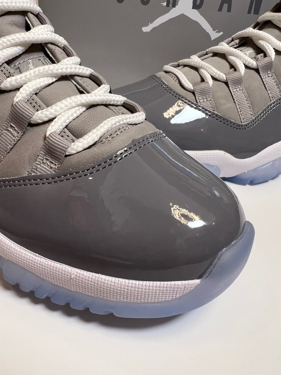 每年的11月都会出一双Aj11,这双酷灰就回来了,早几年前也是出了一双low 的aj11,也是相当的百搭。 作为曾经的实战鞋,中底也是采用了全掌Air sole 气垫缓震脚感也是相当的舒适,中底大碳板带来的抗扭也是非常的不错,大底依旧是水晶底,也是带来了不错的抓地力,鞋面灰色部分采用的是麂皮与漆皮相接。 论配色自穿是相当够用了,如果是拿来实战?啊这?