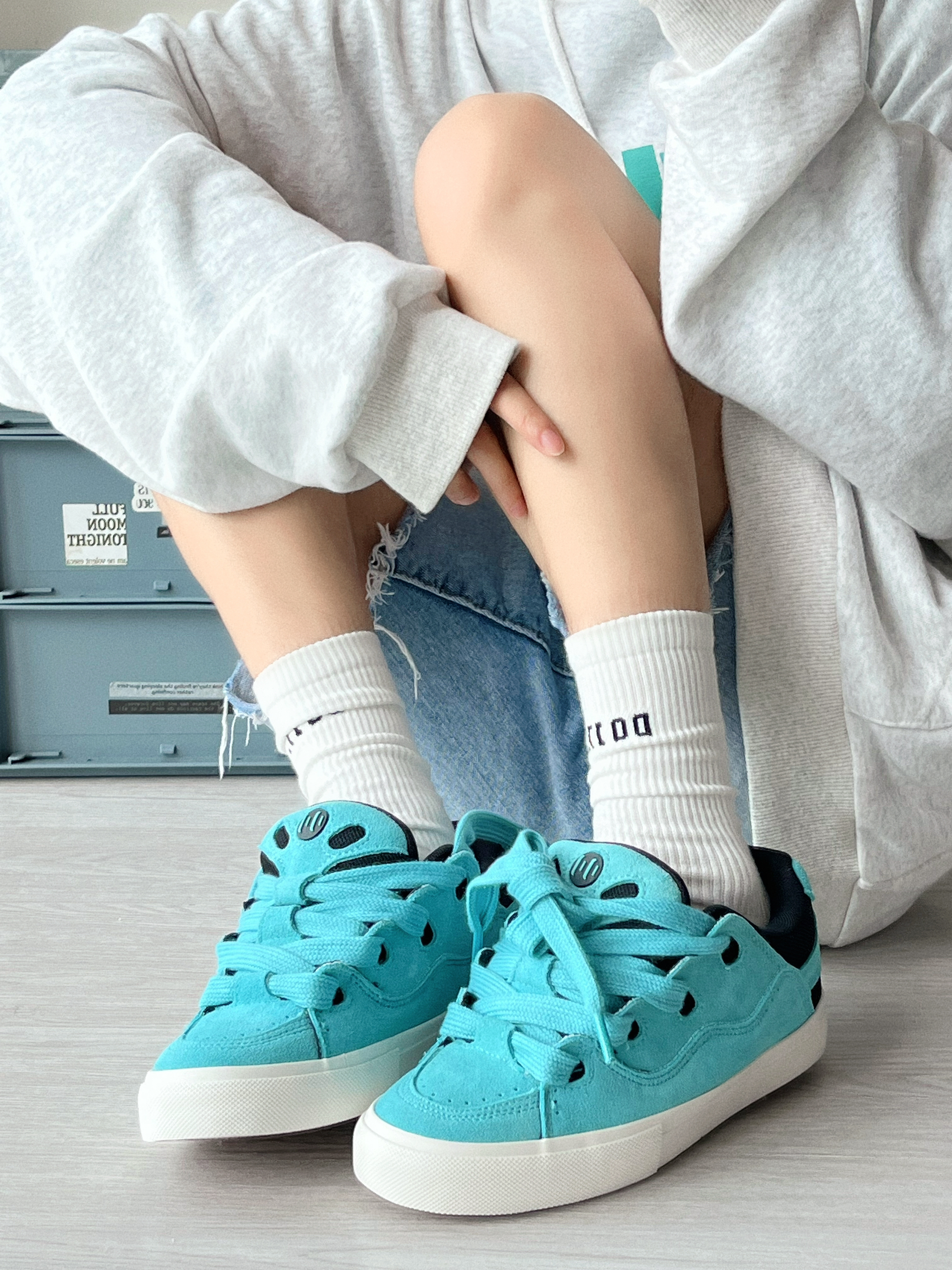 面包鞋我真的会买上瘾! 本来不想买的,但是这个湖水蓝真好看! 是我鞋柜里没有的配色! 上脚有点胖呼呼的可爱有型 才100多的价格做到这种质感挺🐂的 国产鞋也是越做越好啦!